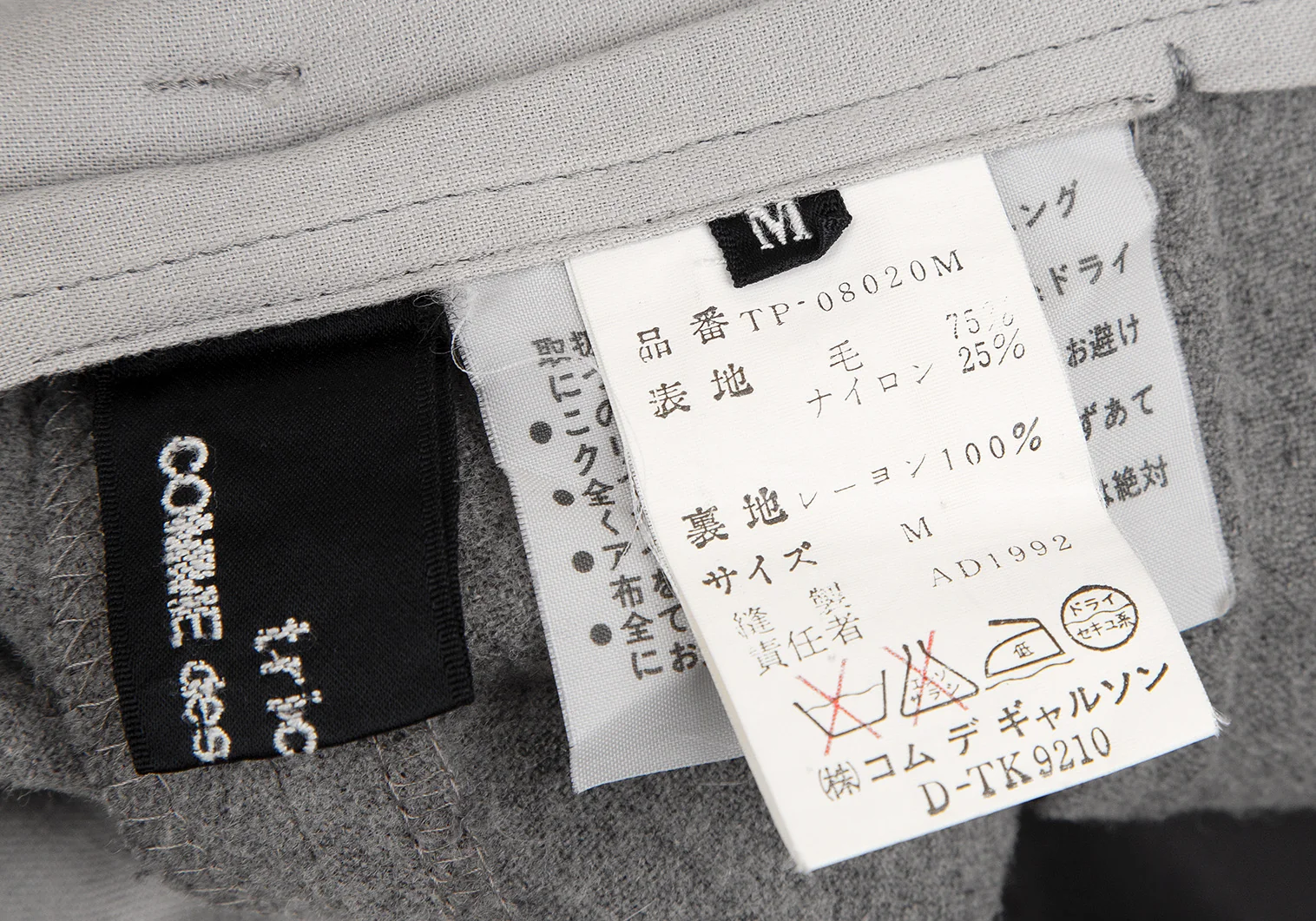 トリココムデギャルソンtricot COMME des GARCONSウールナイロンサイドジップワイドパンツ グレーM