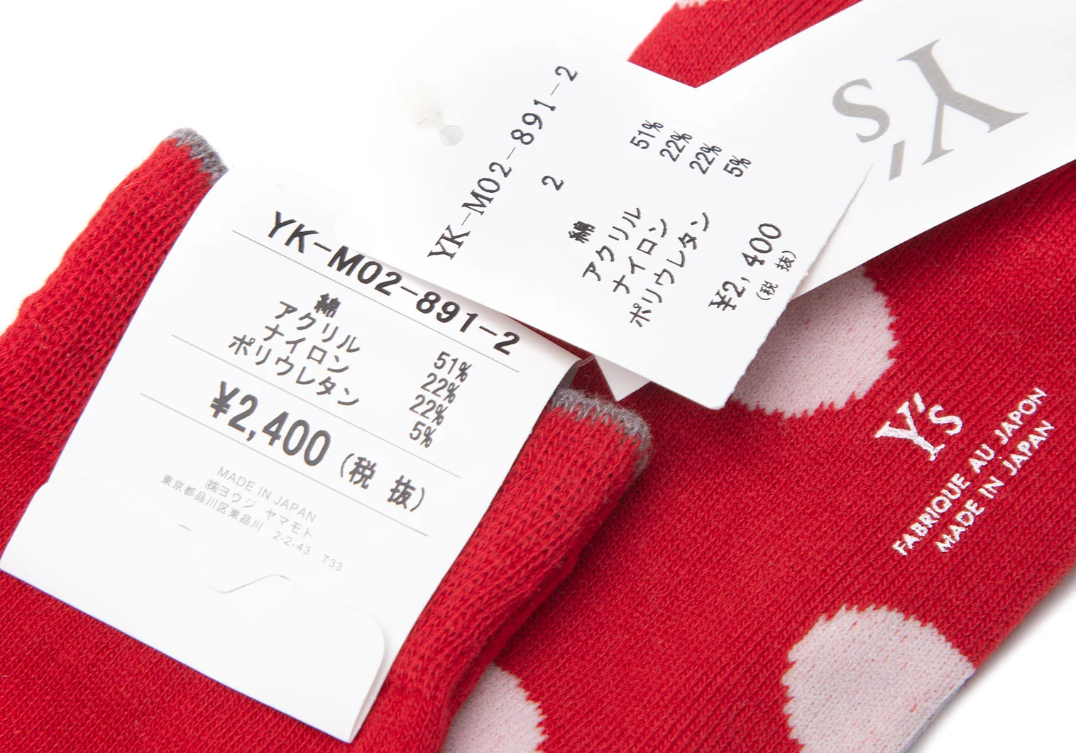 新品!ワイズY's ドットジャガードソックス 赤2(23cm~24.5cm位)