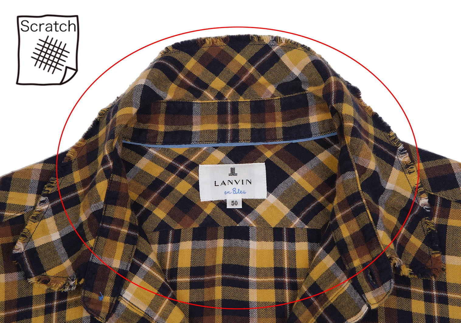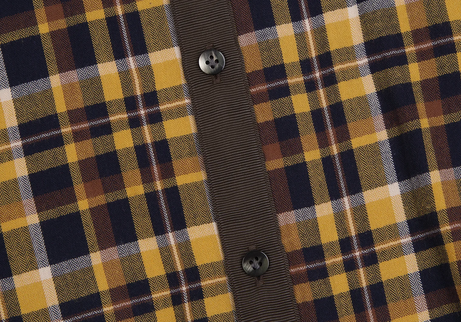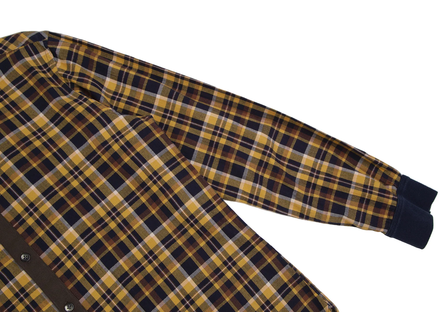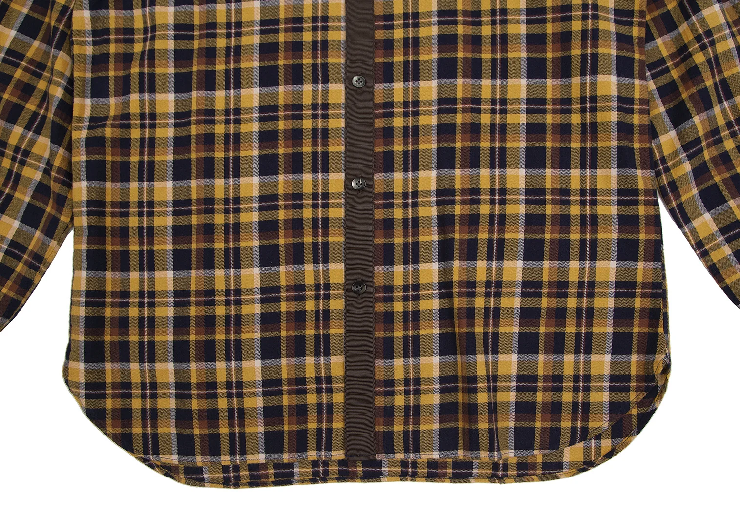 ランバンオンブルーLANVIN en Bleu コットン袖切替チェックシャツ 黄茶紺50