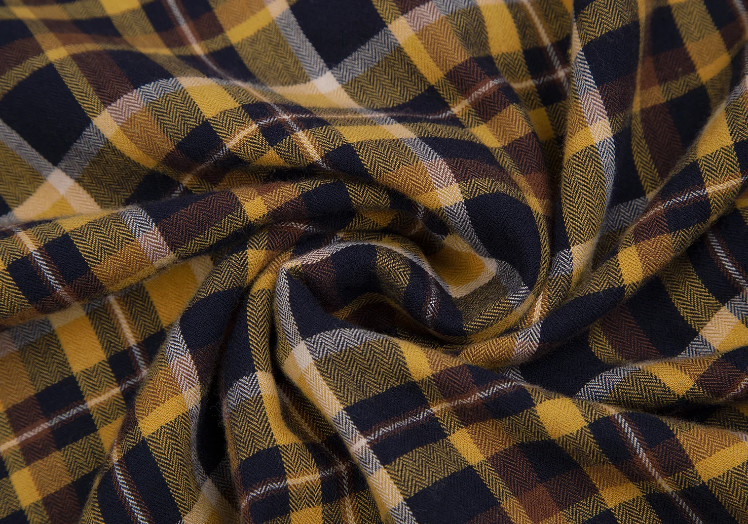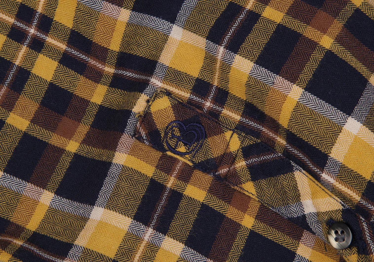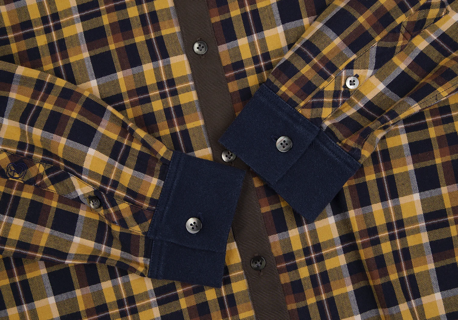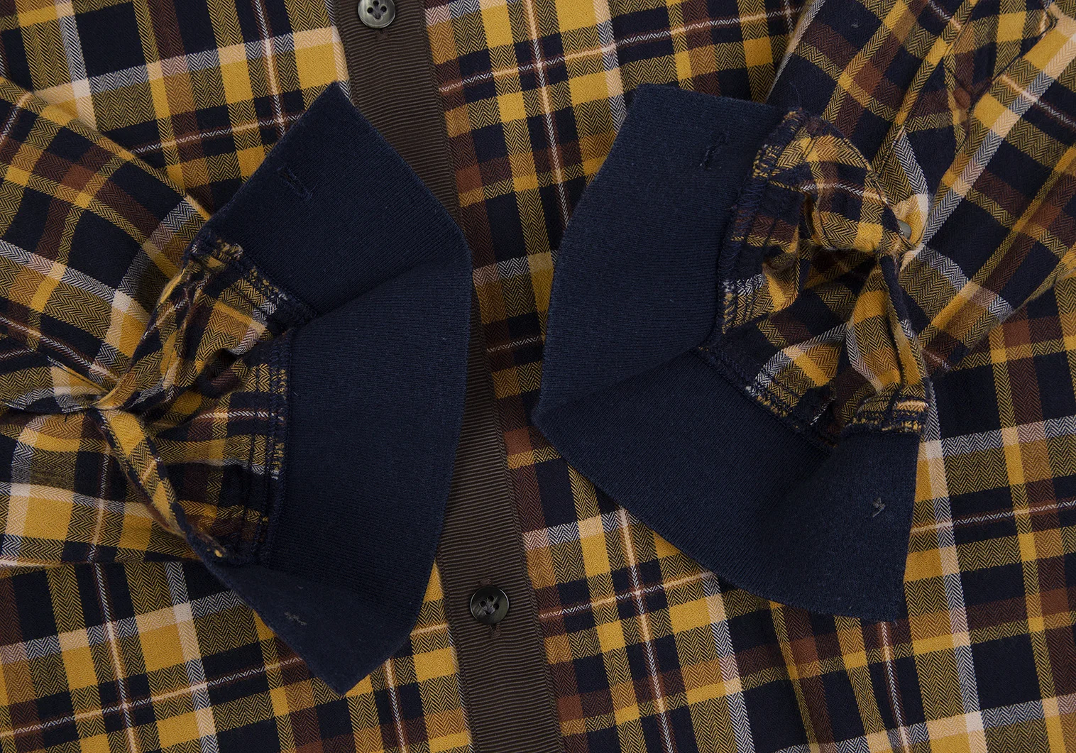 ランバンオンブルーLANVIN en Bleu コットン袖切替チェックシャツ 黄茶紺50
