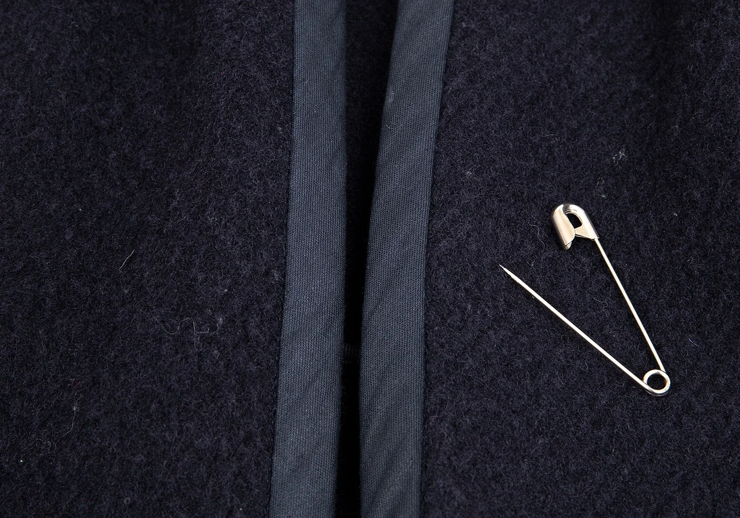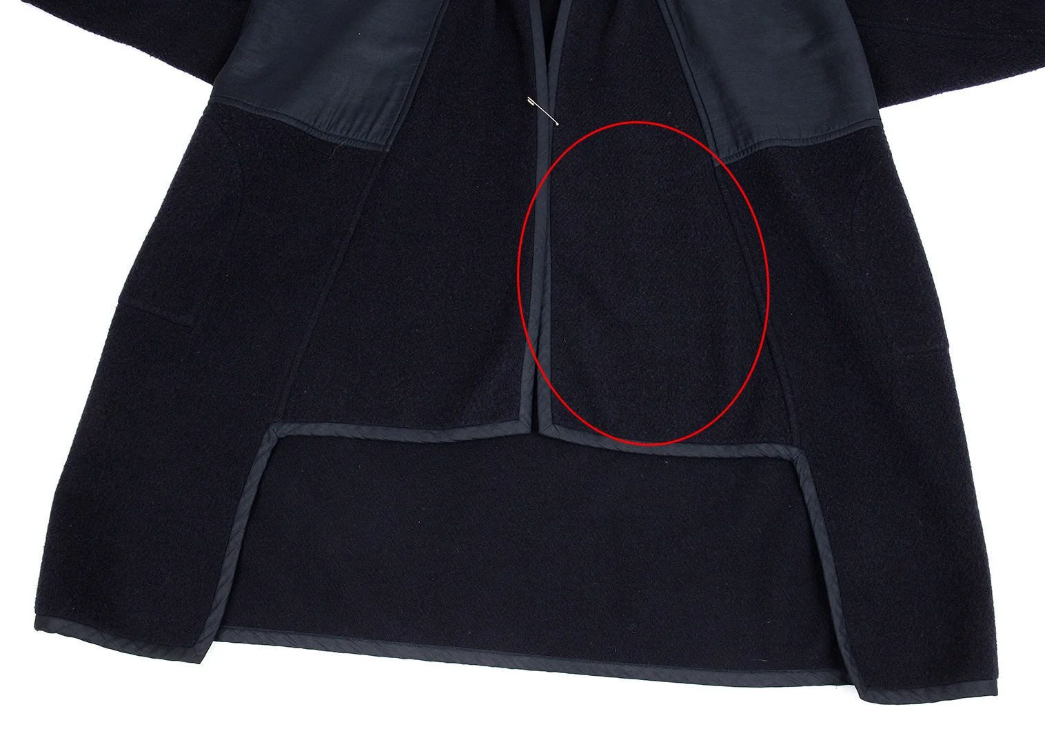 ピンが付属します。前裾に小穴が数カ所あります(画像参照)。その他目立ったシミ、汚れ、ほつれ等ありません。クリーニング済み