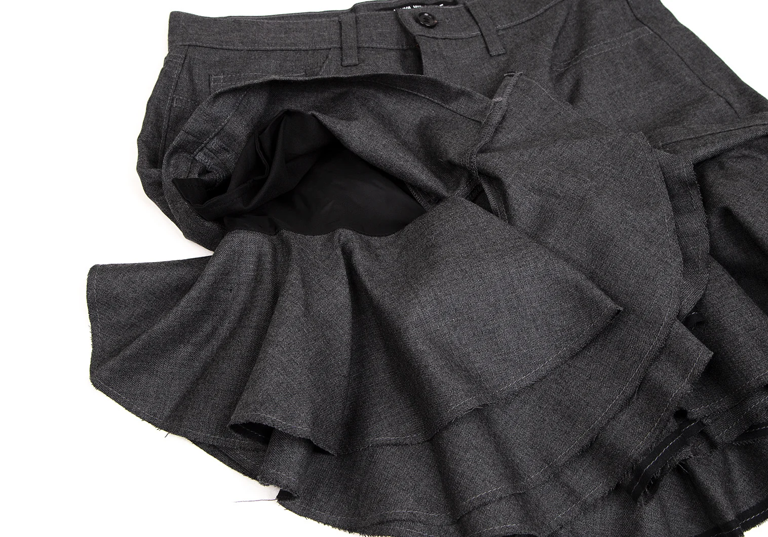 ジュンヤワタナベ コムデギャルソンJUNYA WATANABE COMME des GARCONSウールフリル切替レイヤーショートパンツ グレーM