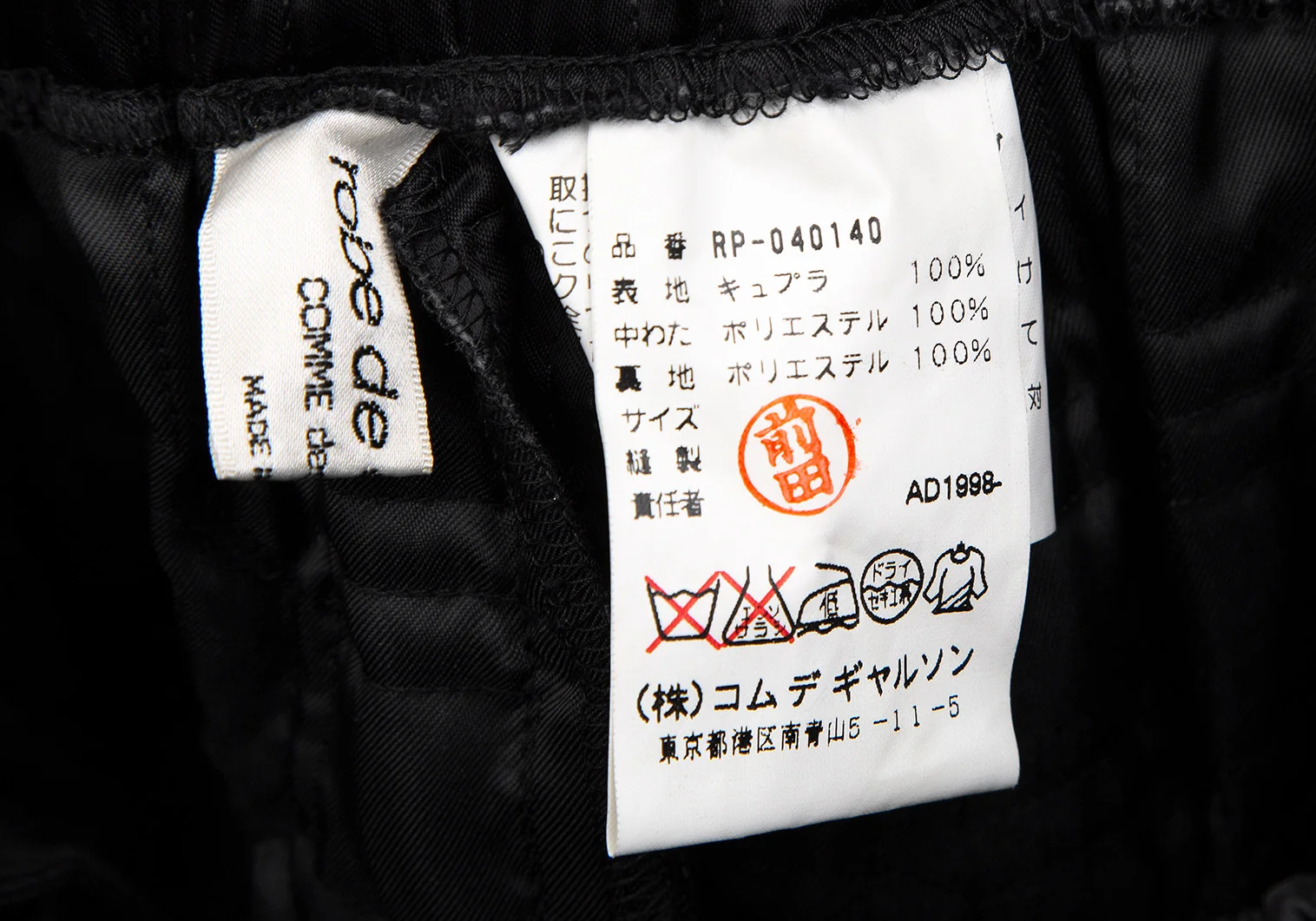 ローブドシャンブル コムデギャルソンrobe de chambre COMME des GARCONS スクエアチェックキュプラキルティングパンツ 黒M位