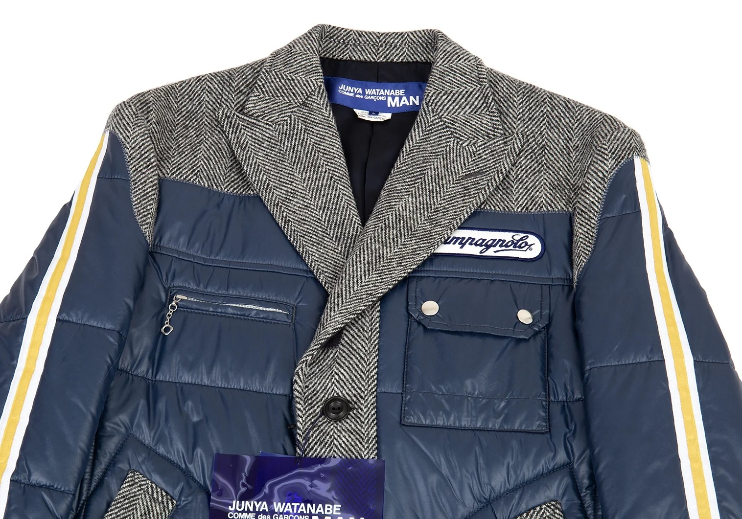 新品!ジュンヤワタナベマン コムデギャルソン×カンパニョーロ レーシングダウンドッキングヘリンボーンコート グレー紺他L