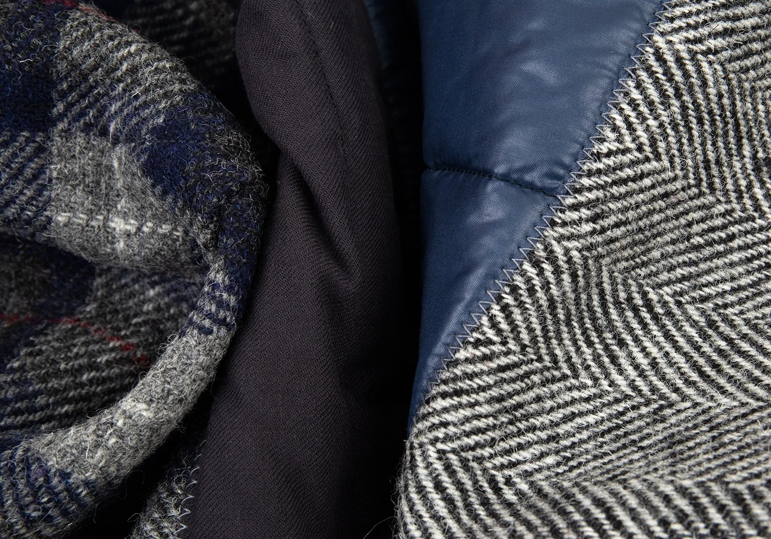 キルティング部分 ナイロン100% ツイード部分 毛100% 別布 綿100% 中わた ポリエステル100% 裏地 キュプラ100% 皮革部分 人工皮革 テープ部分 ポリエステル100%