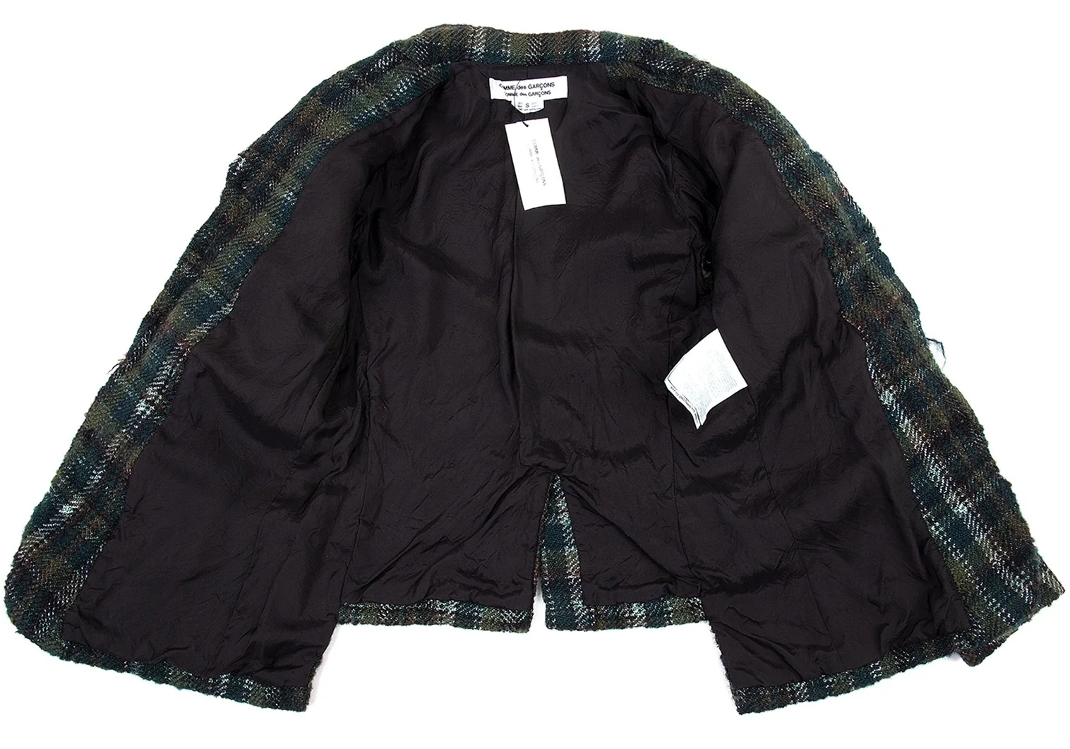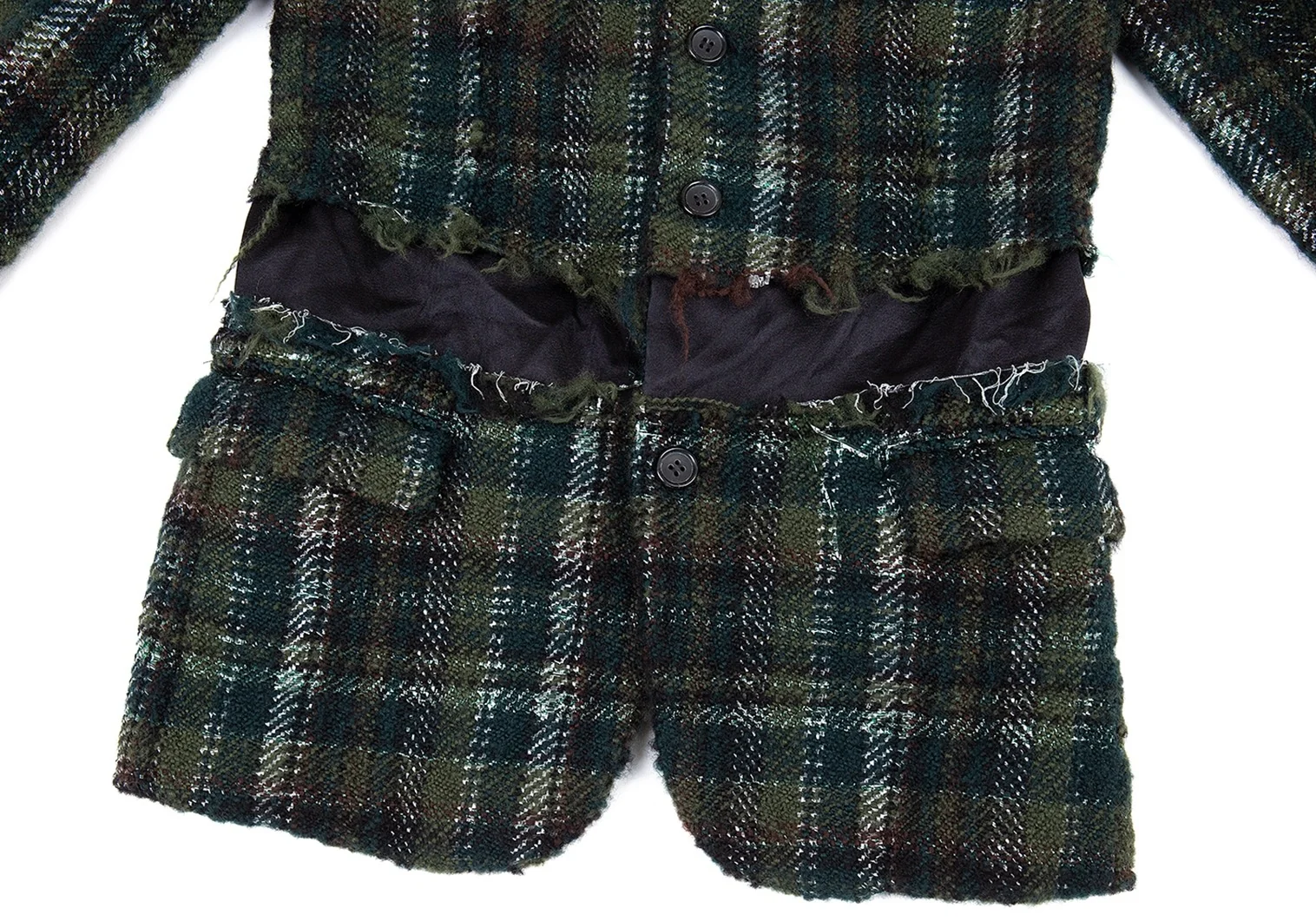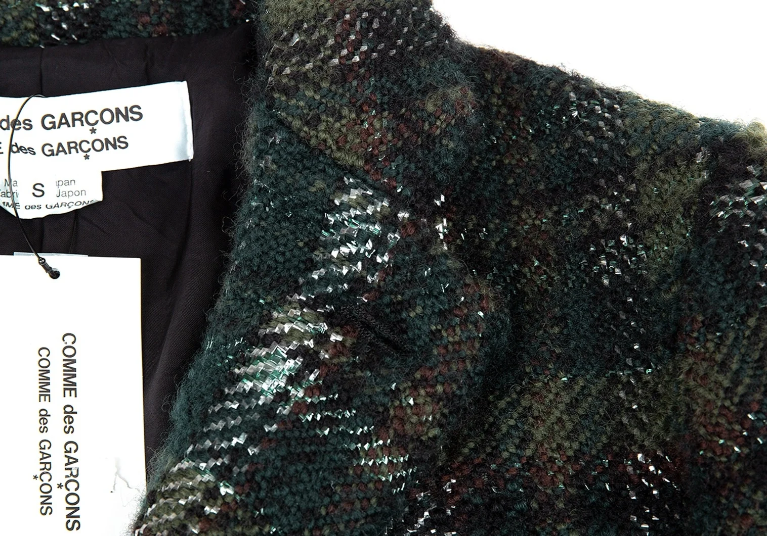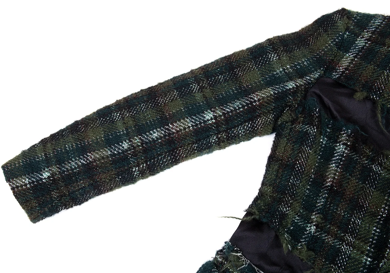 新品!コムコム コムデギャルソンCOMME des GARCONS カットオフ切替チェックツイードジャケット 緑黒S