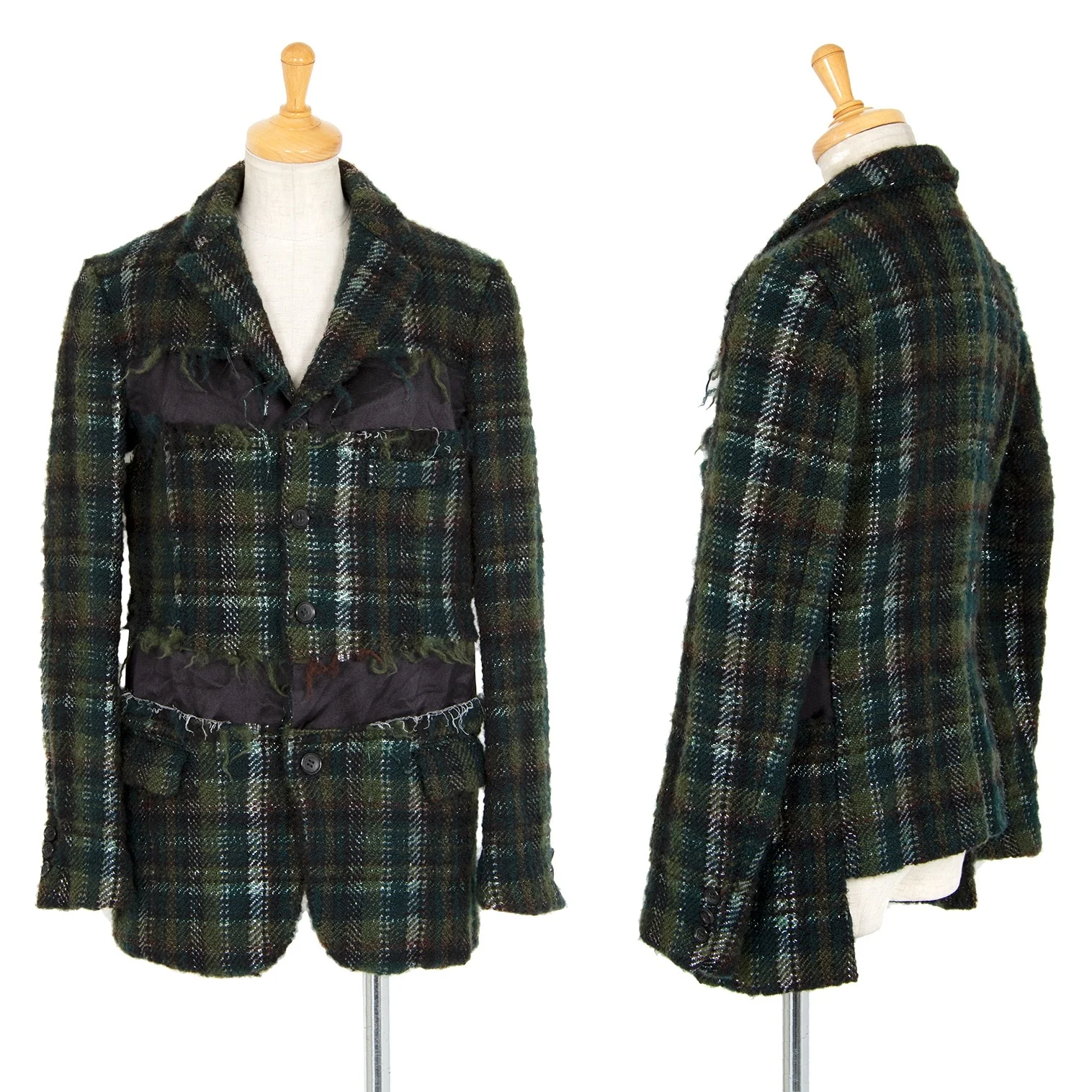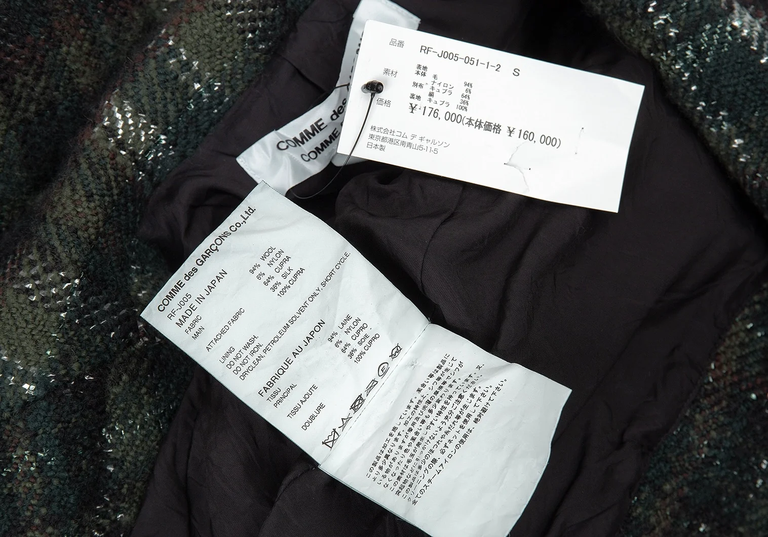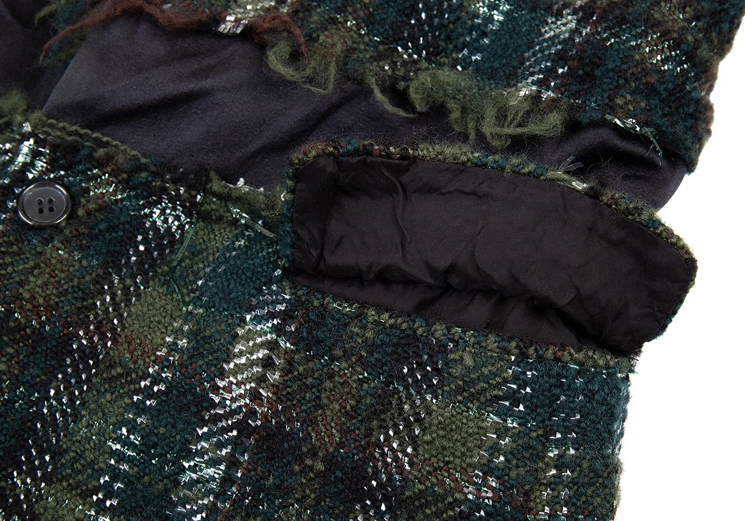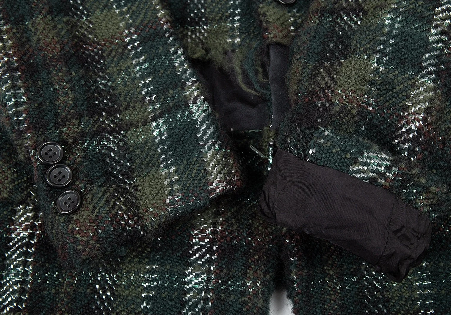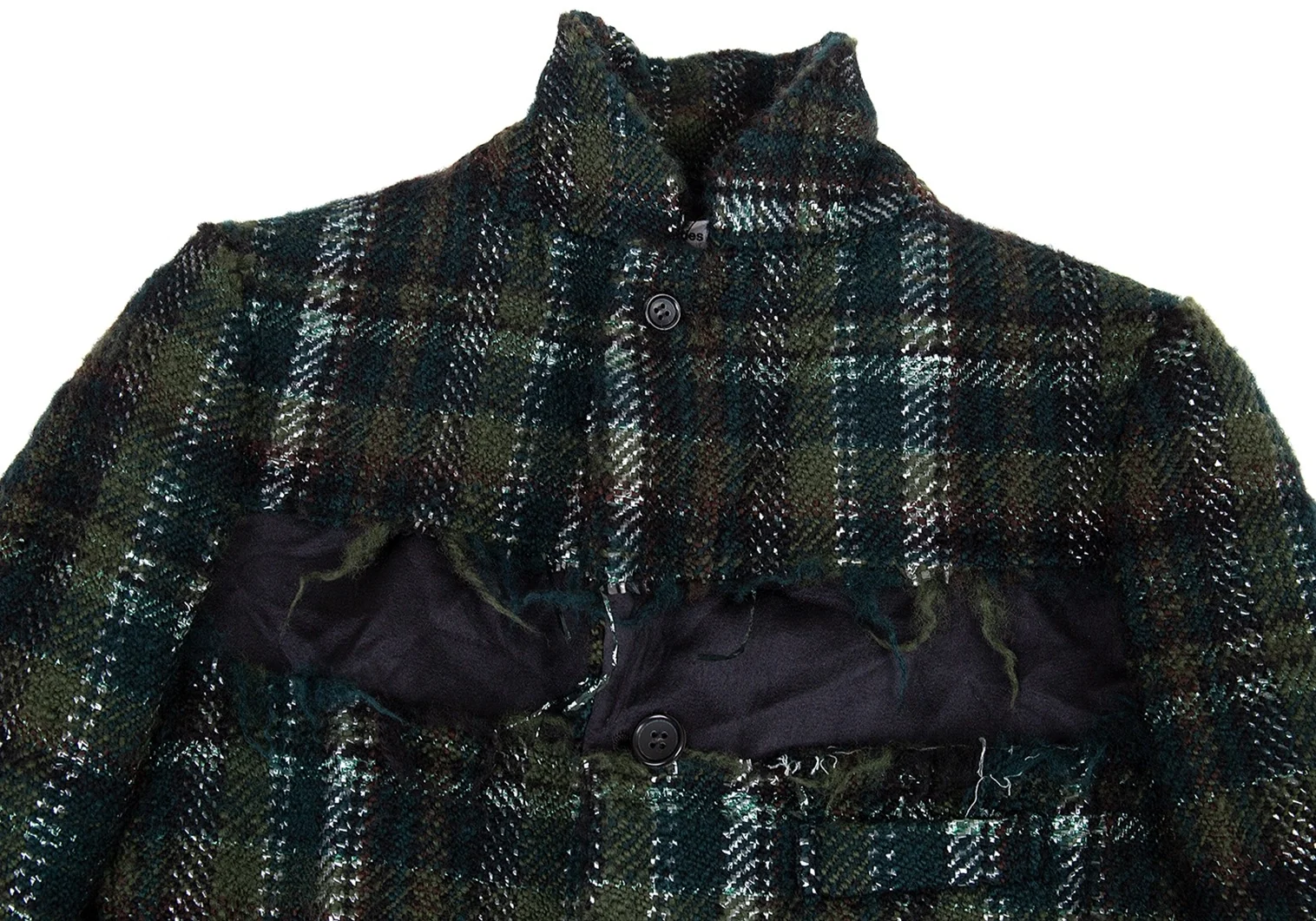 新品!コムコム コムデギャルソンCOMME des GARCONS カットオフ切替チェックツイードジャケット 緑黒S