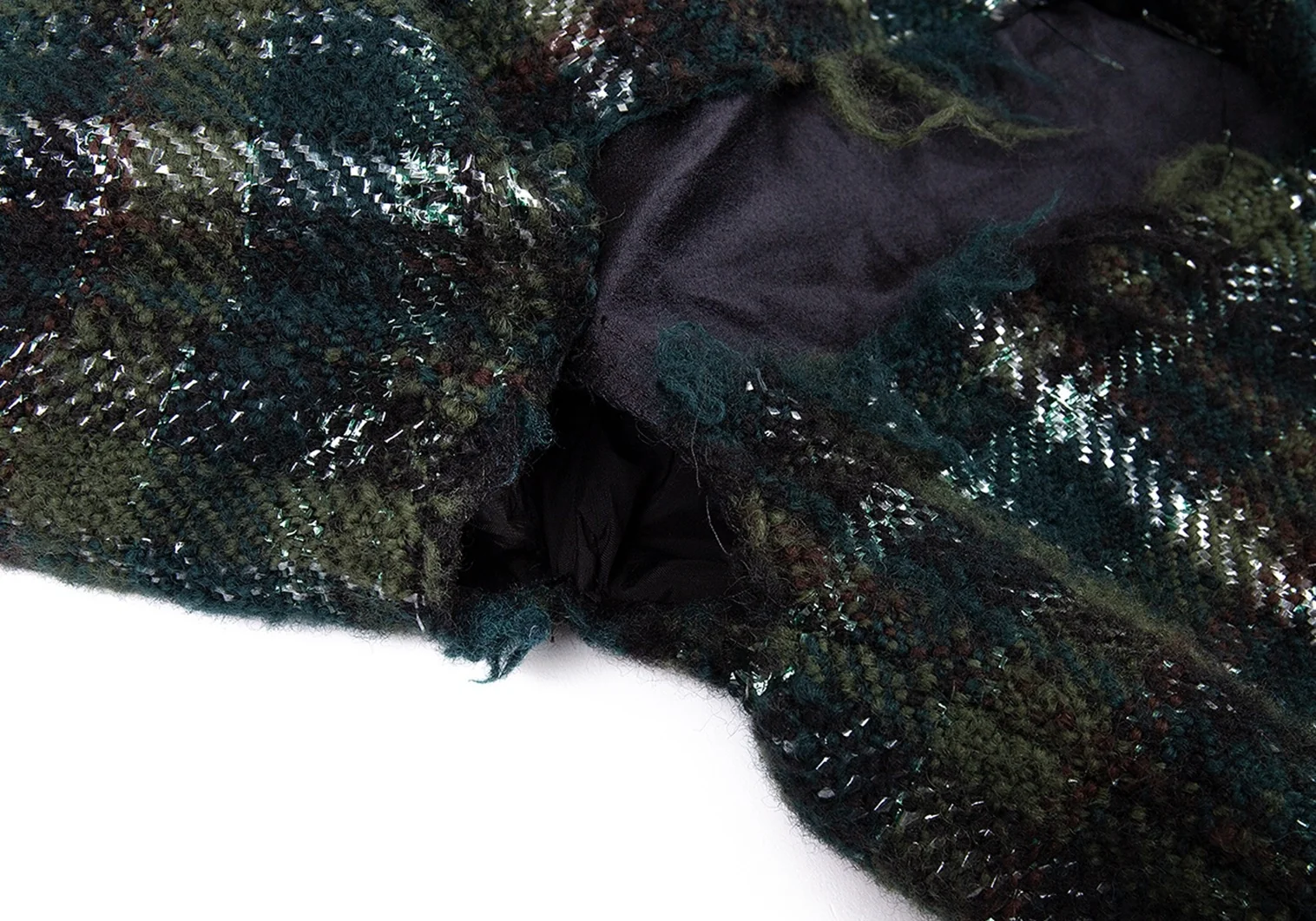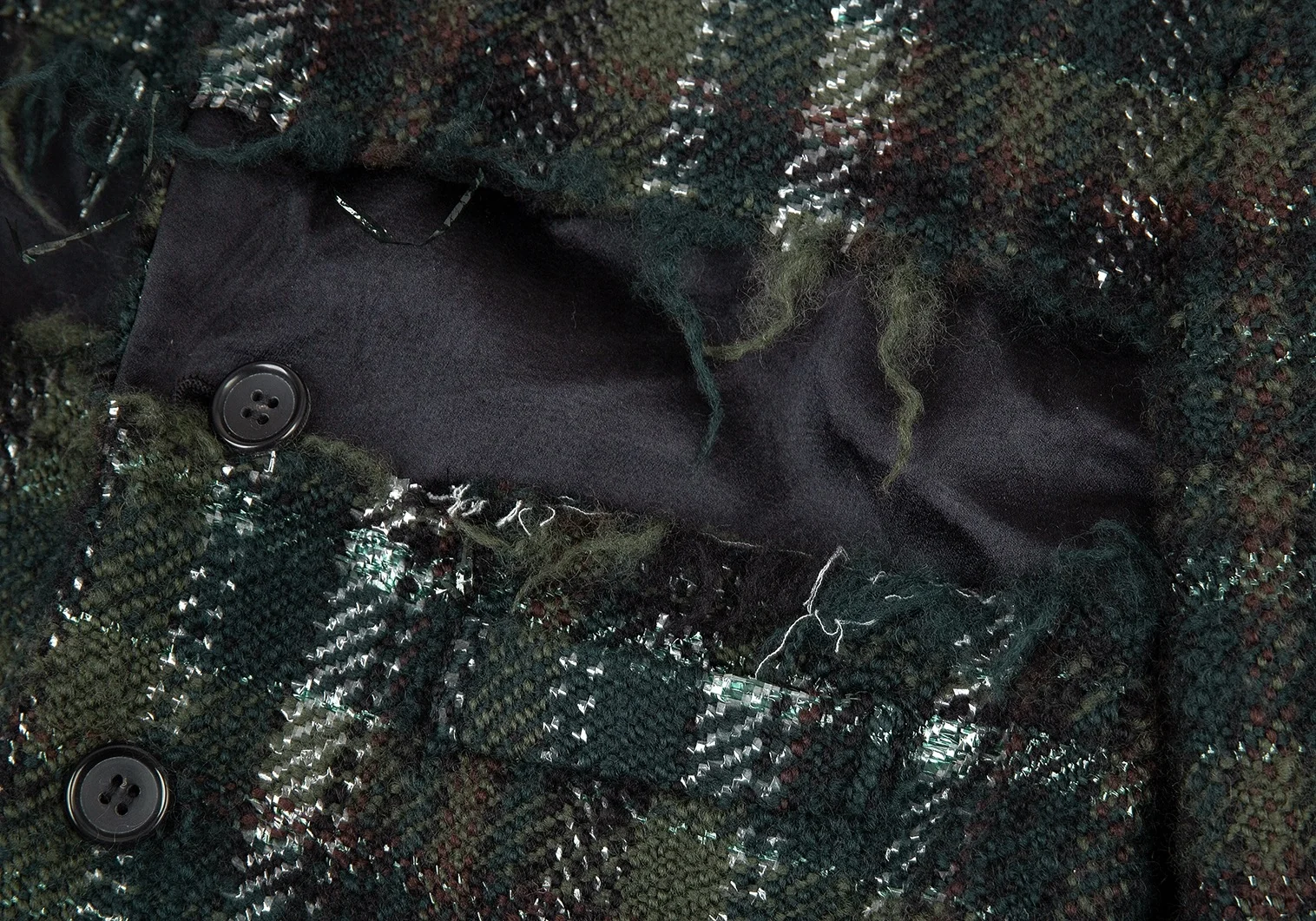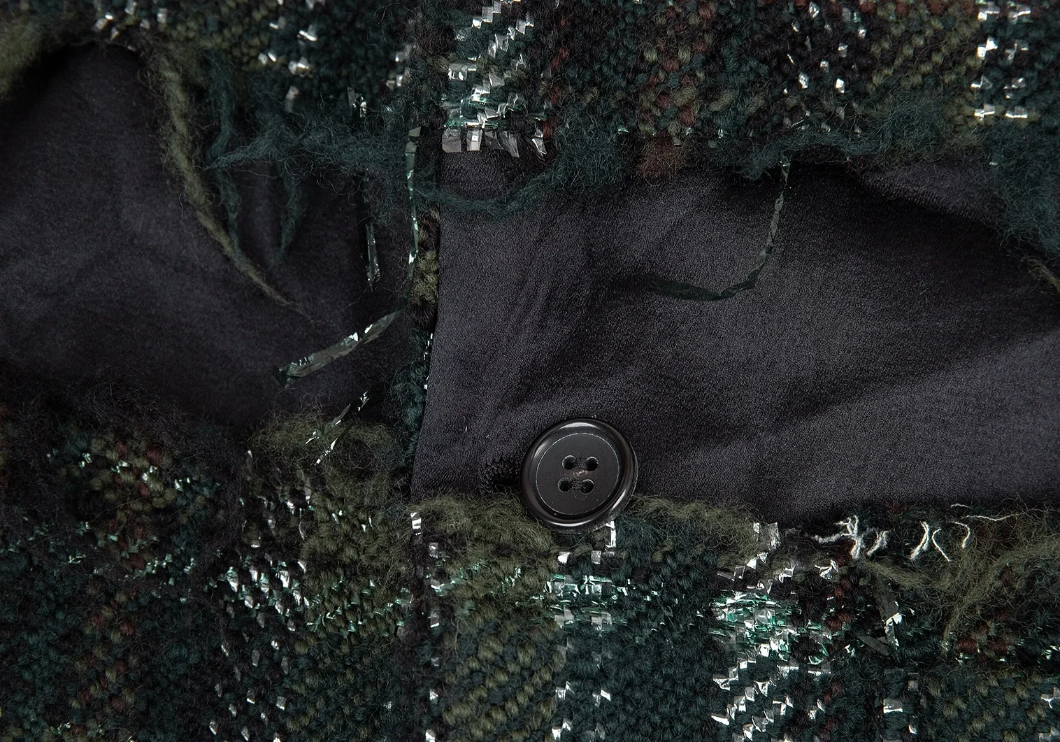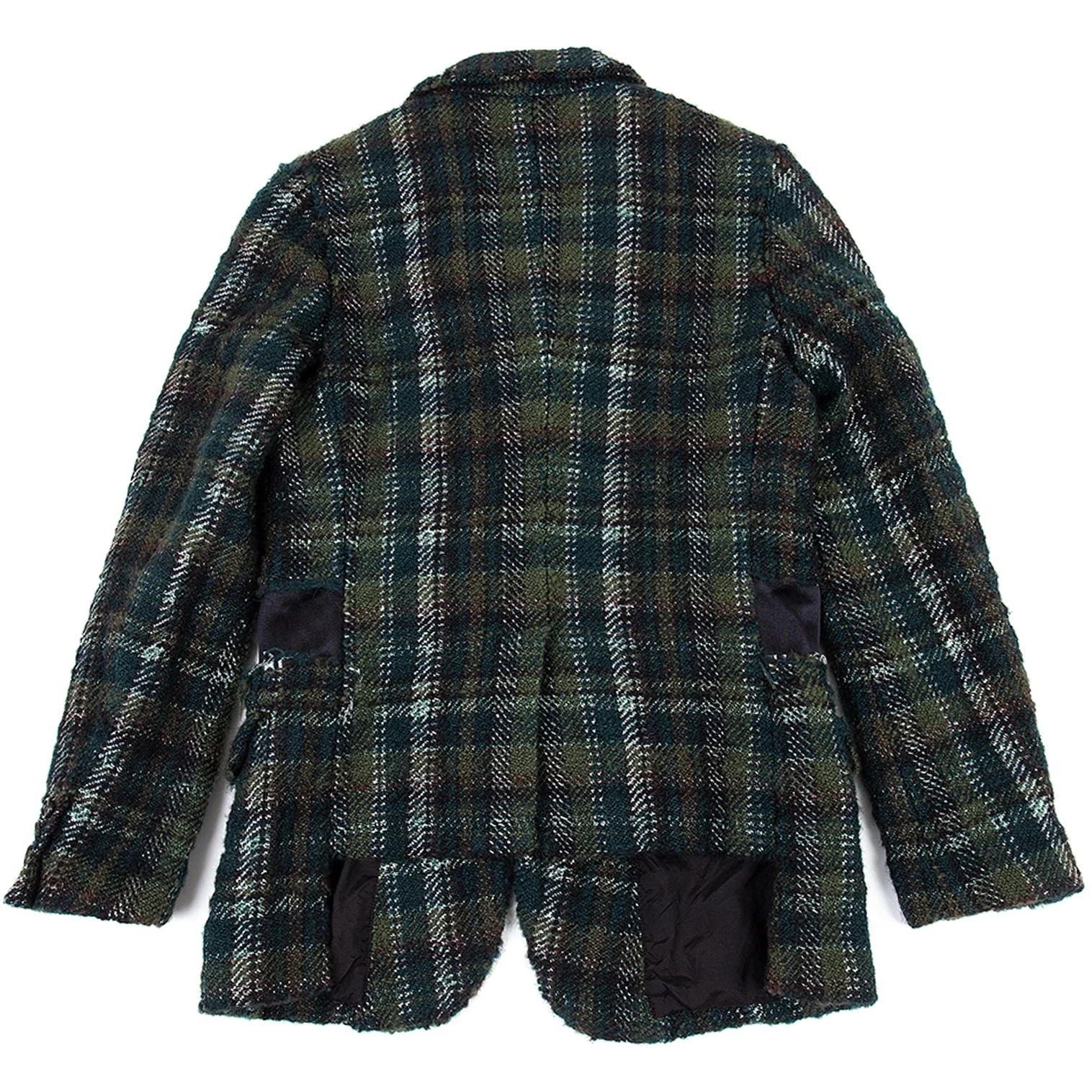 新品!コムコム コムデギャルソンCOMME des GARCONS カットオフ切替チェックツイードジャケット 緑黒S