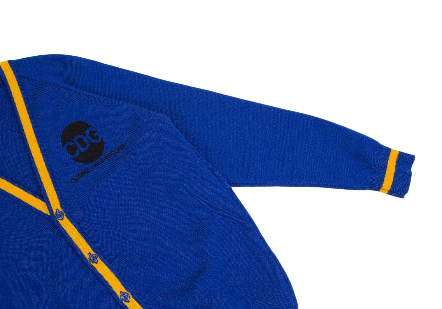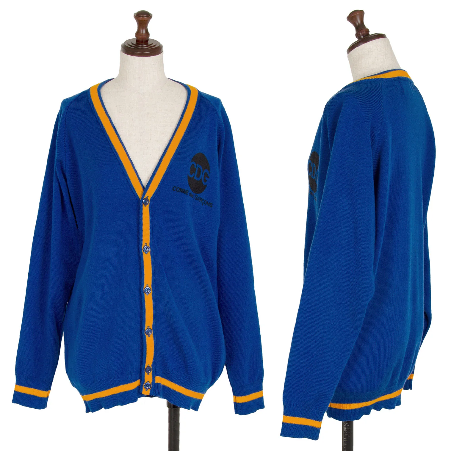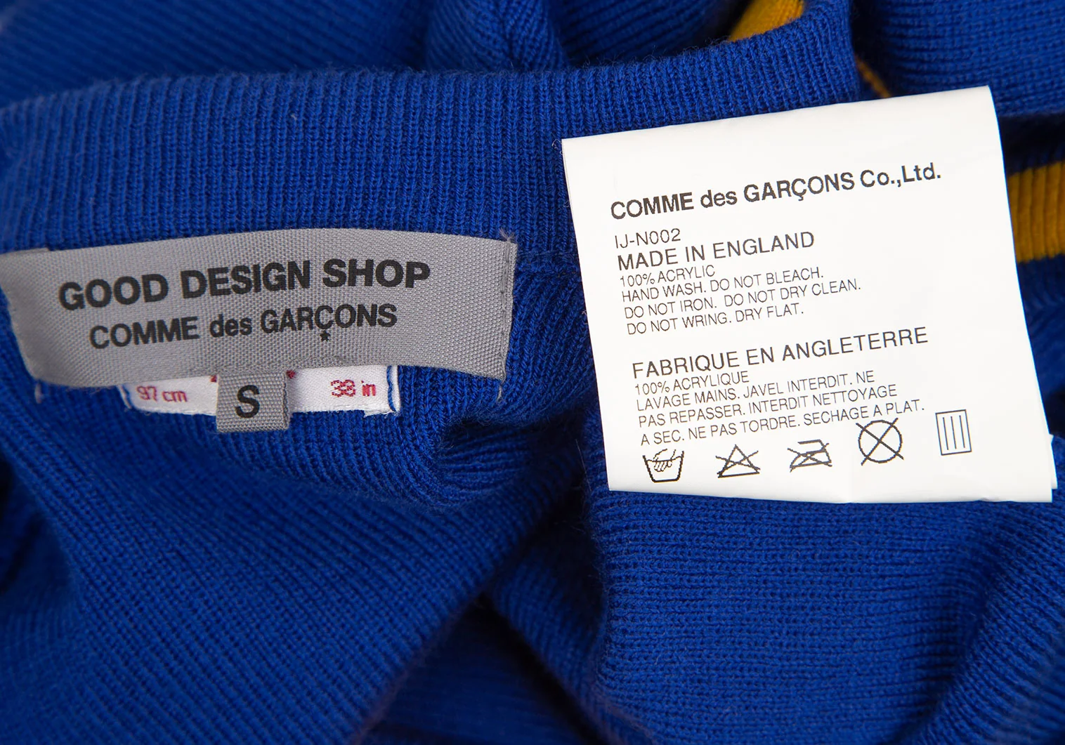 グッドデザインショップ コムデギャルソンGOOD DESIGN SHOP COMME des GARCONS アクリルゴロプリントラインニットカーディガン 青S