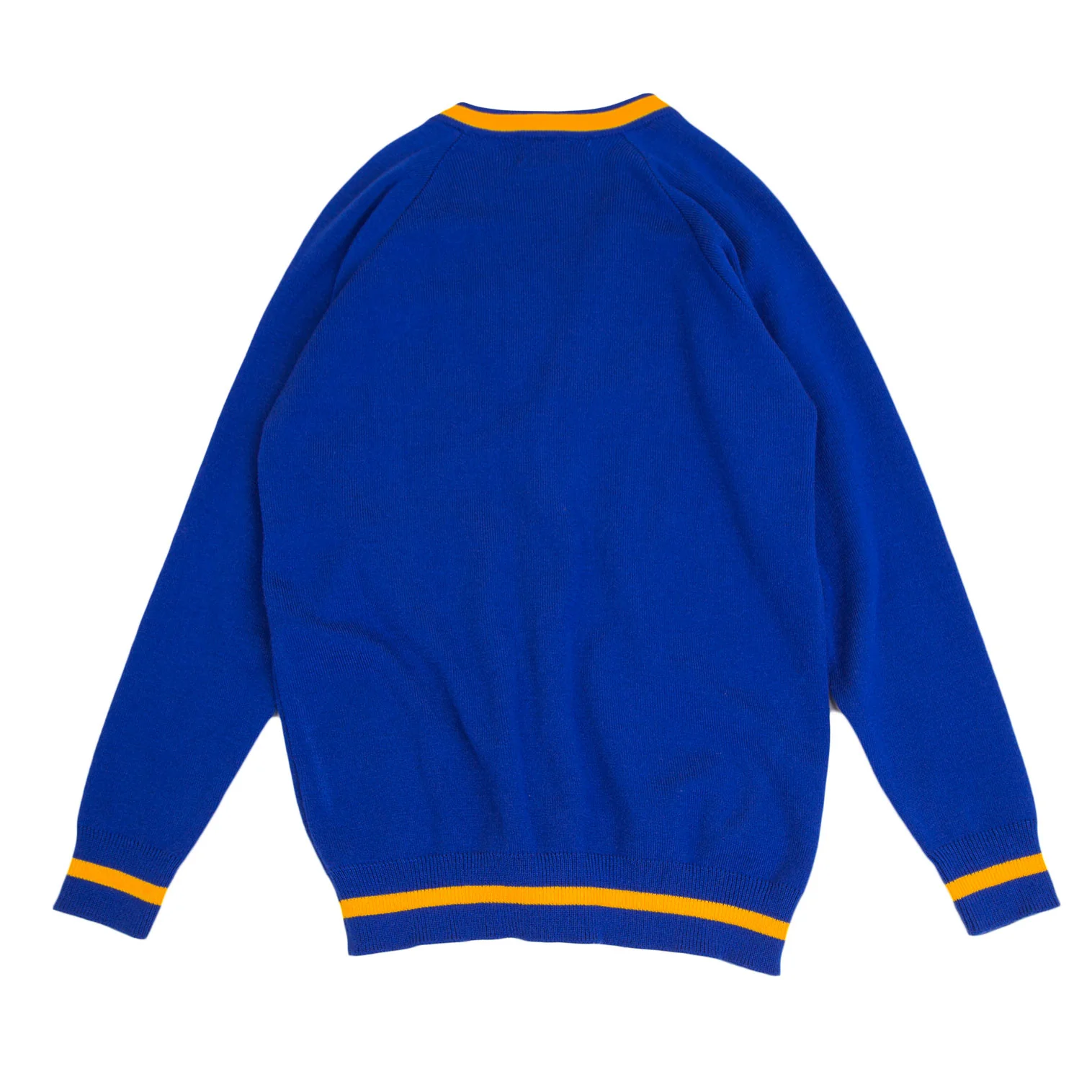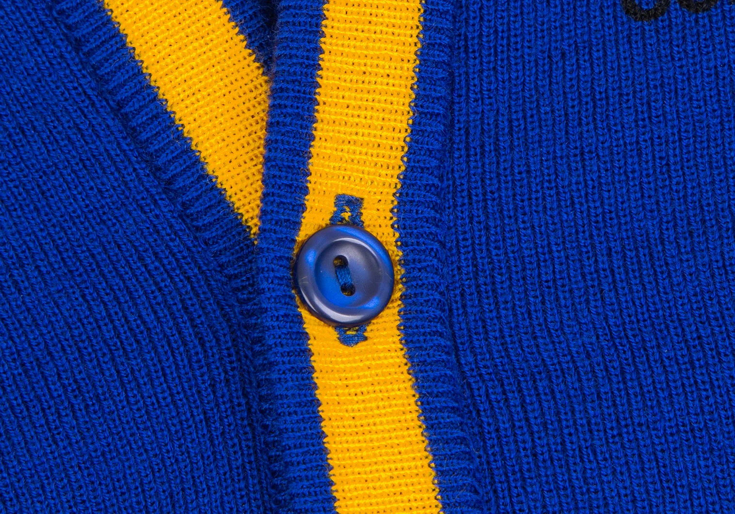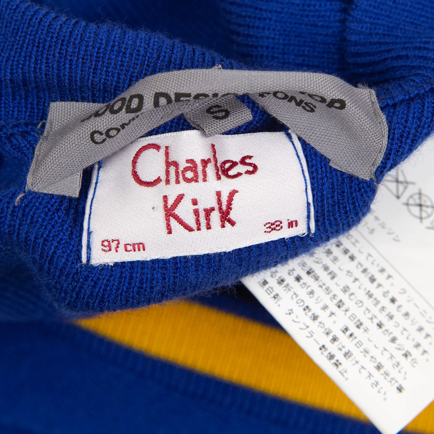 グッドデザインショップ コムデギャルソンGOOD DESIGN SHOP COMME des GARCONS アクリルゴロプリントラインニットカーディガン 青S