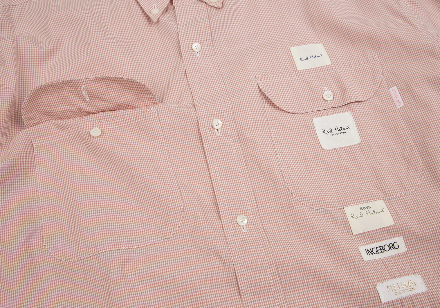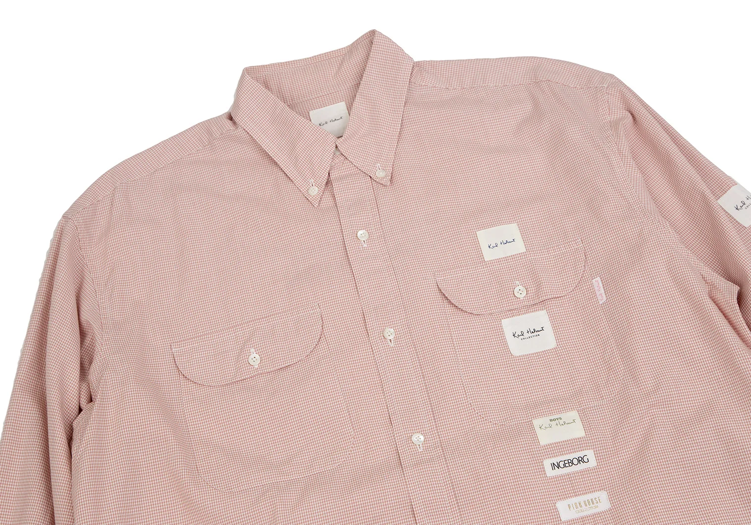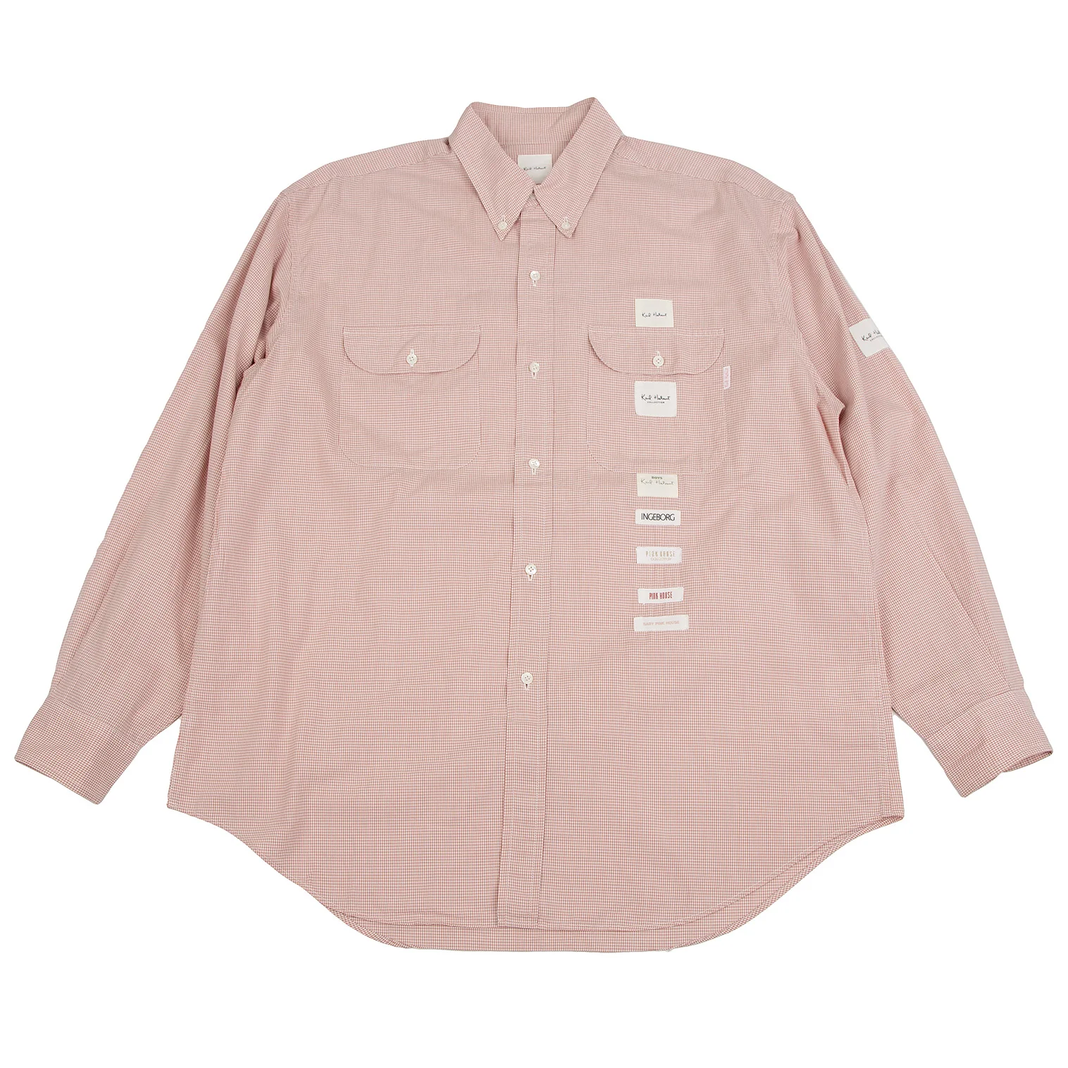 カールヘルムKarl Helmut ロゴパッチ貼り付けチェックボタンダウンシャツ ピンクL位