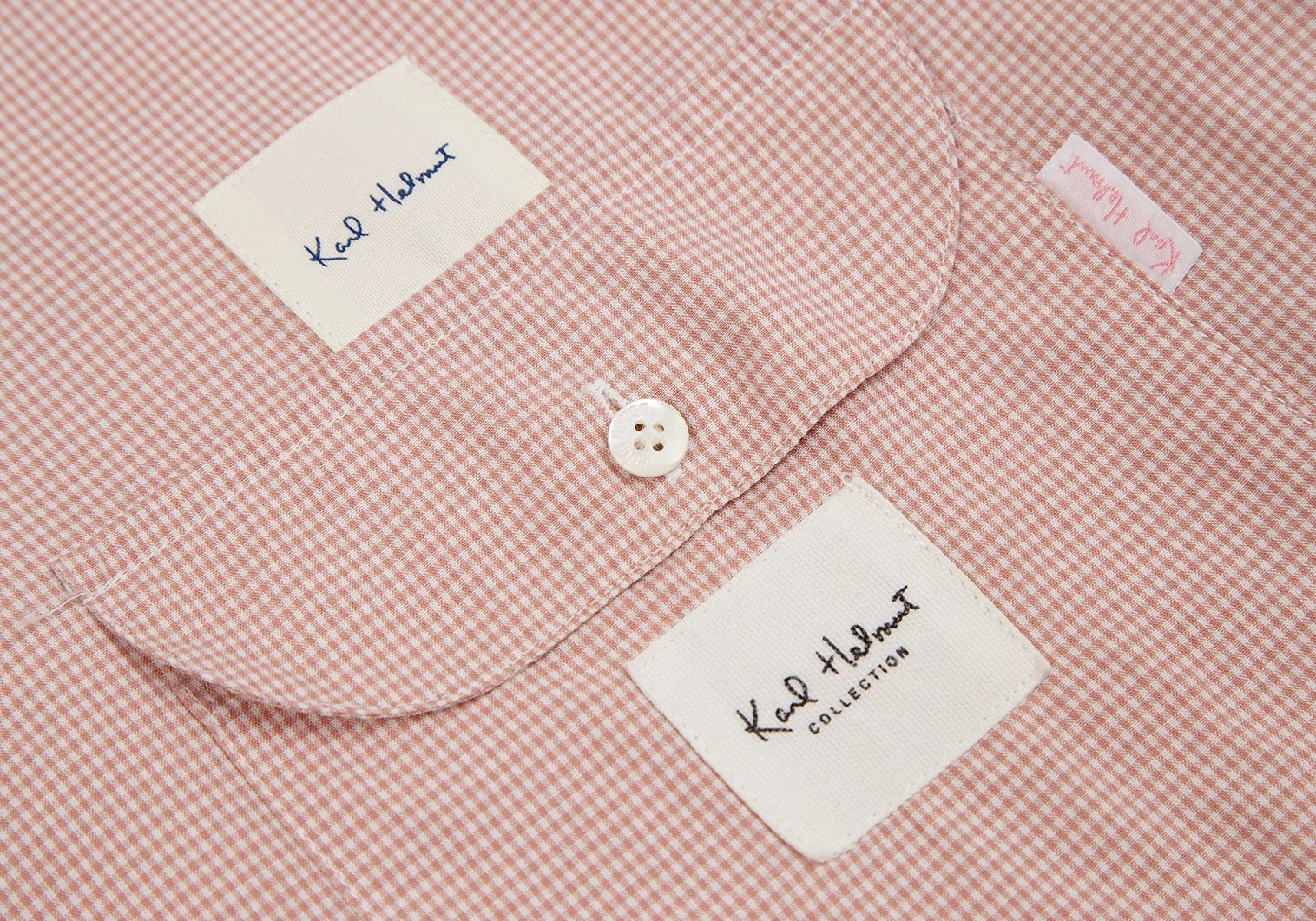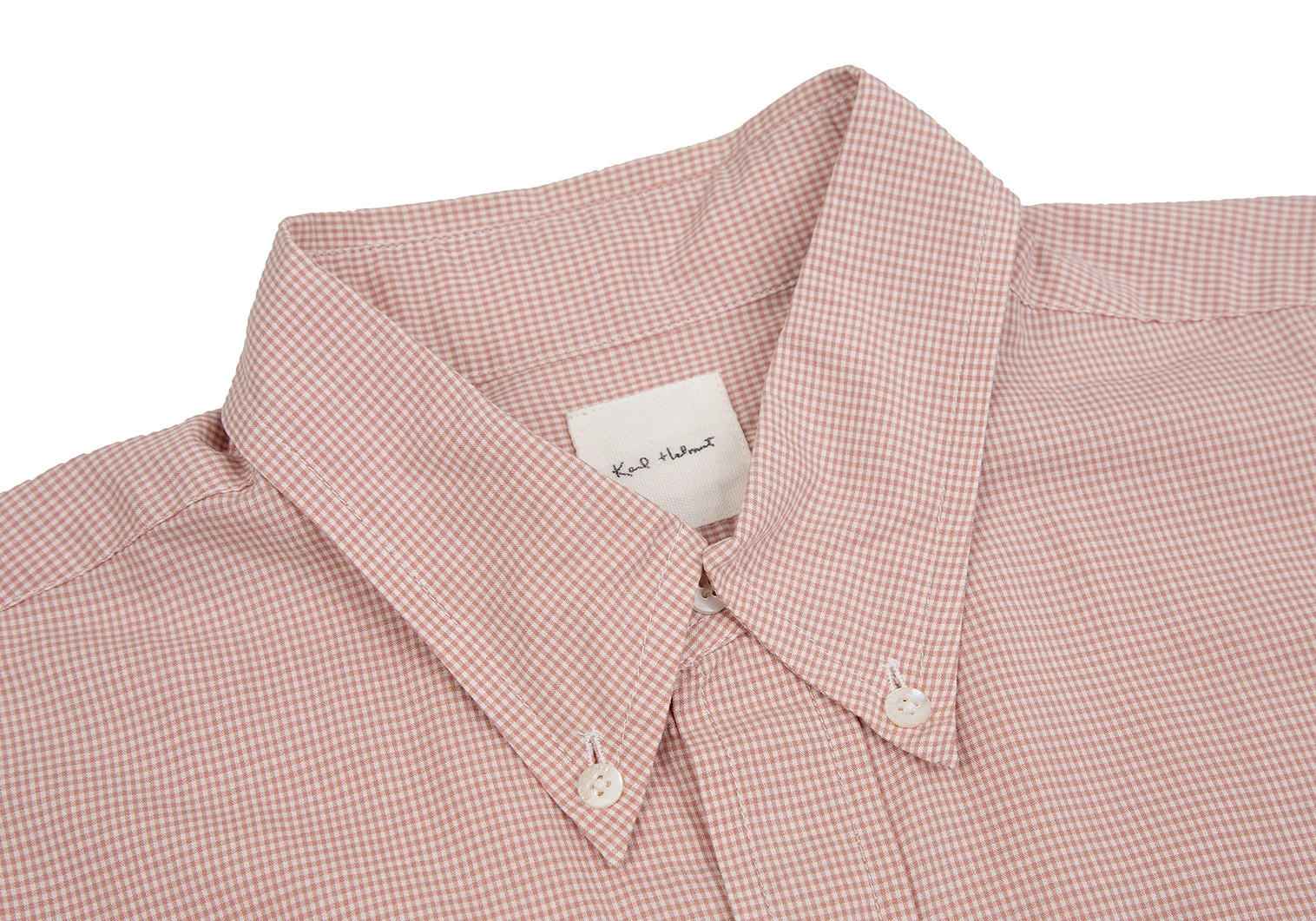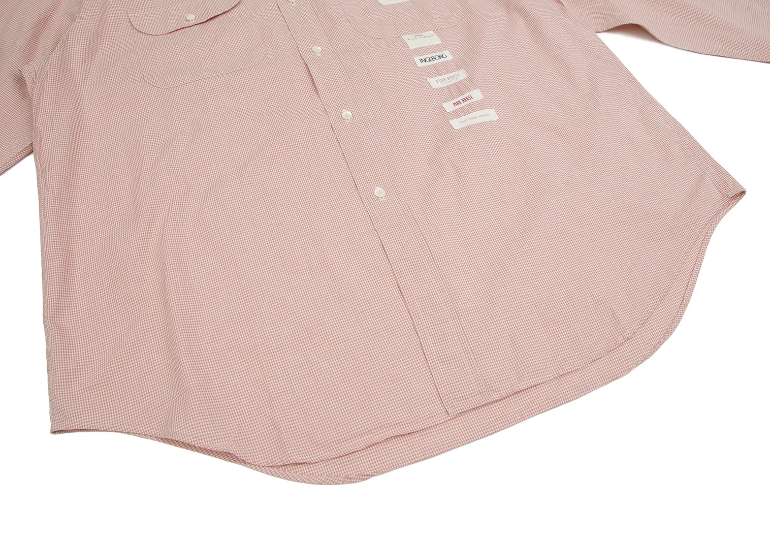 カールヘルムKarl Helmut ロゴパッチ貼り付けチェックボタンダウンシャツ ピンクL位