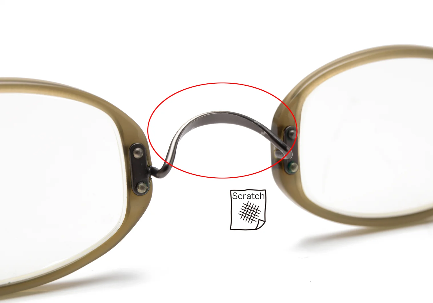 度付きレンズです。ブリッジ、モダン部に多少キズがあります(写真参照)お客様一人一人の視力、骨格、鼻幅、耳の高さが違います。このような理由からオンラインショップでの度付きレンズ販売はしておりません。 お手数をおかけしますが、度入りレンズはお近くの眼鏡店等でお買い求めください。 他眼鏡店にてレンズの入れ替え、調整等に生じた不具合、破損については一切の責任を負いかねますので予めご了承下さい。