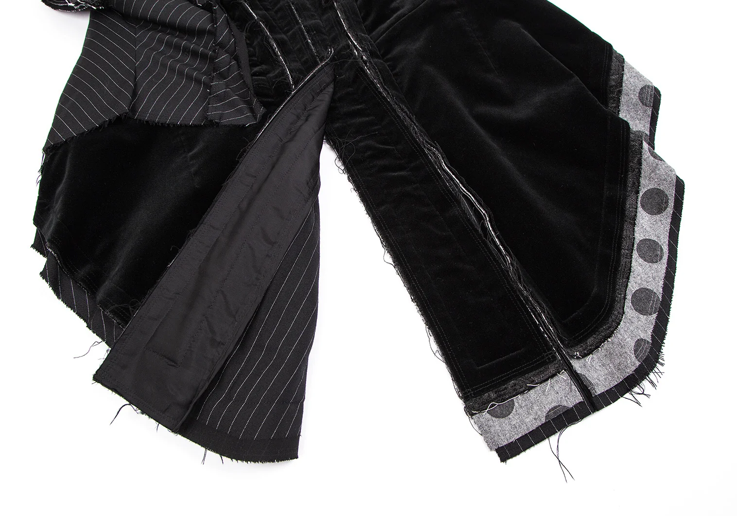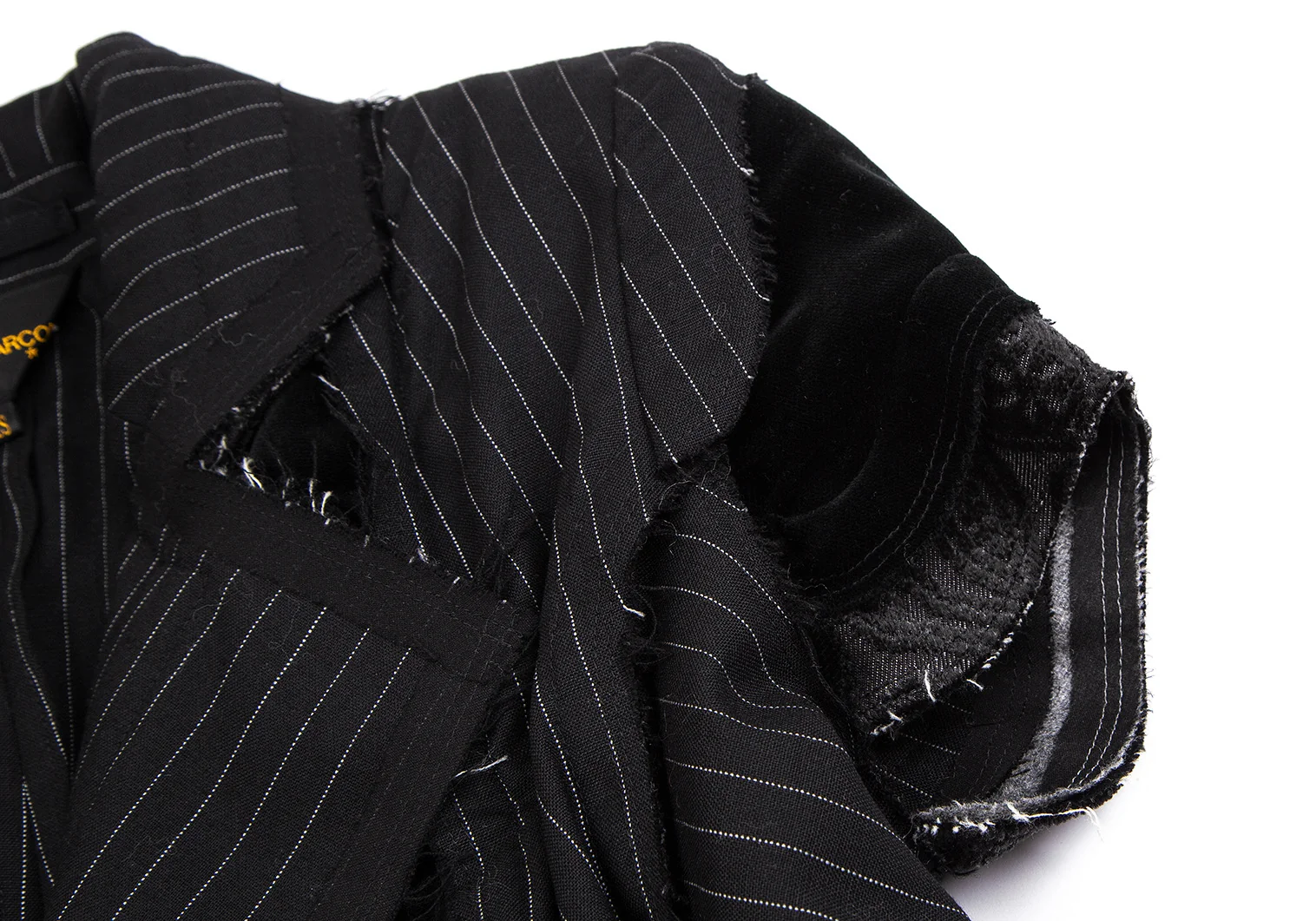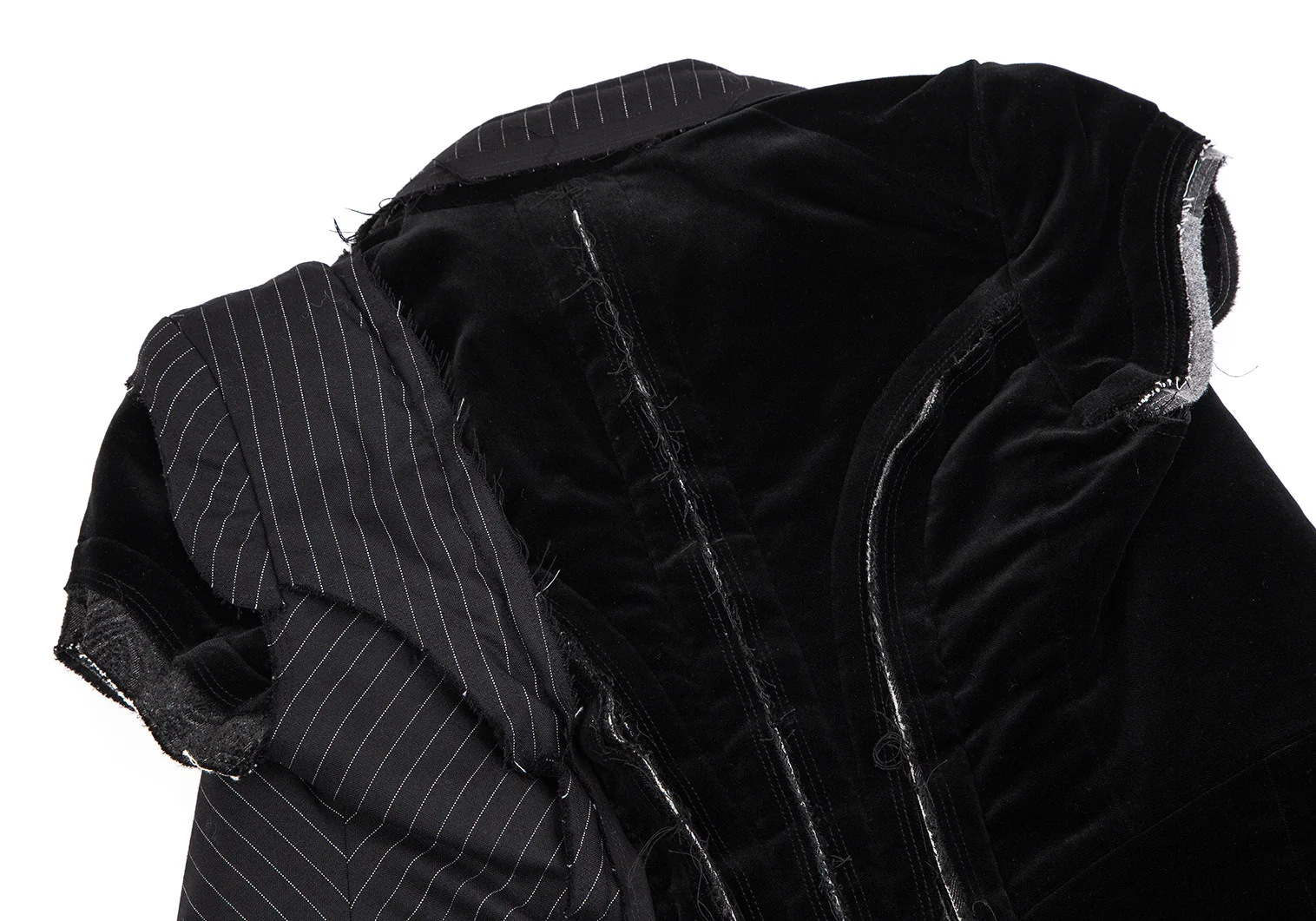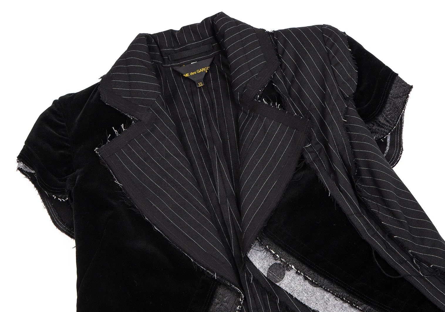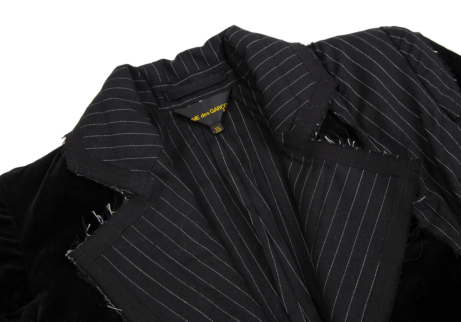 コムデギャルソンCOMME des GARCONS ベロアインサイドアウト切替ストライプ半袖ジャケット 黒XS