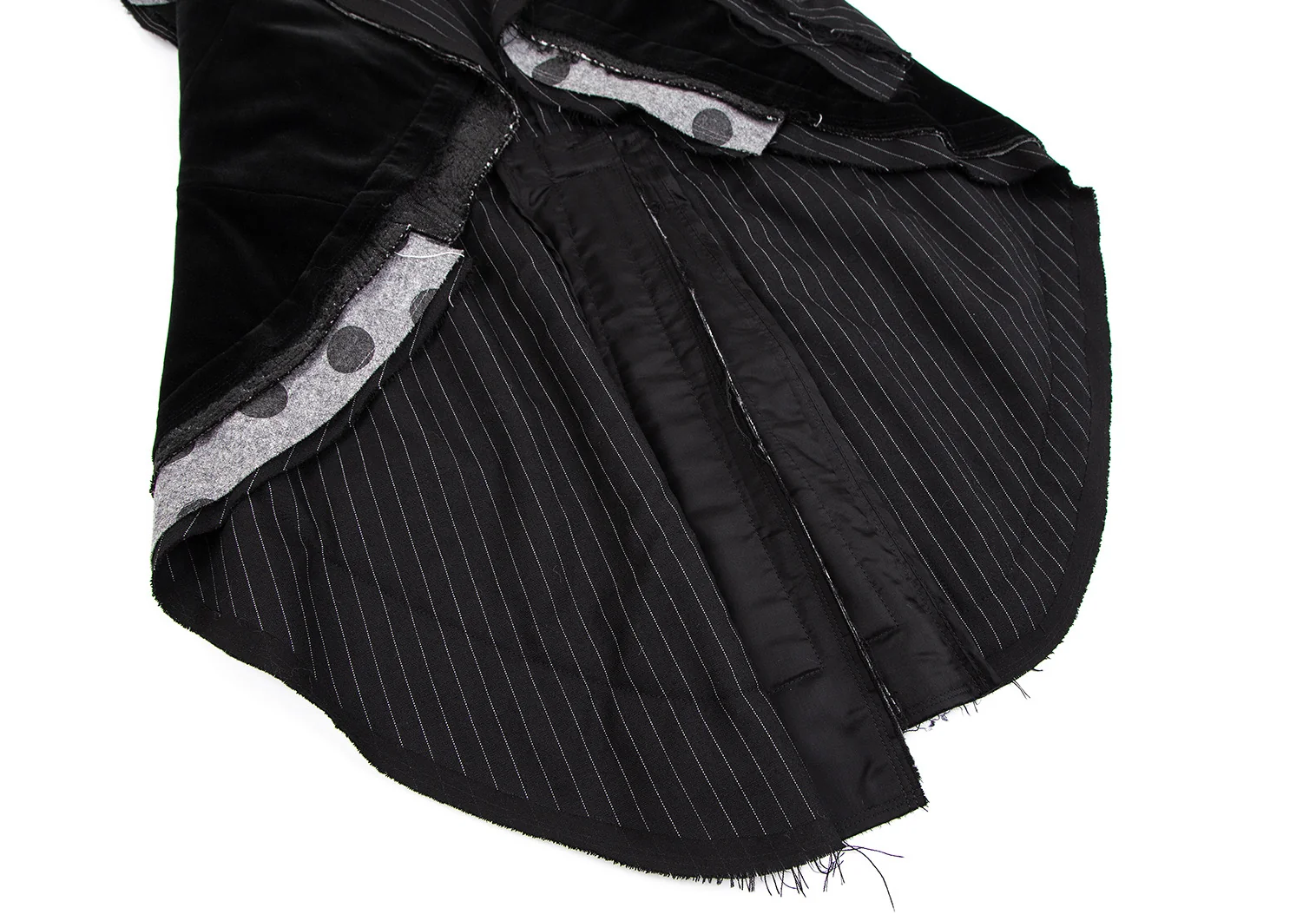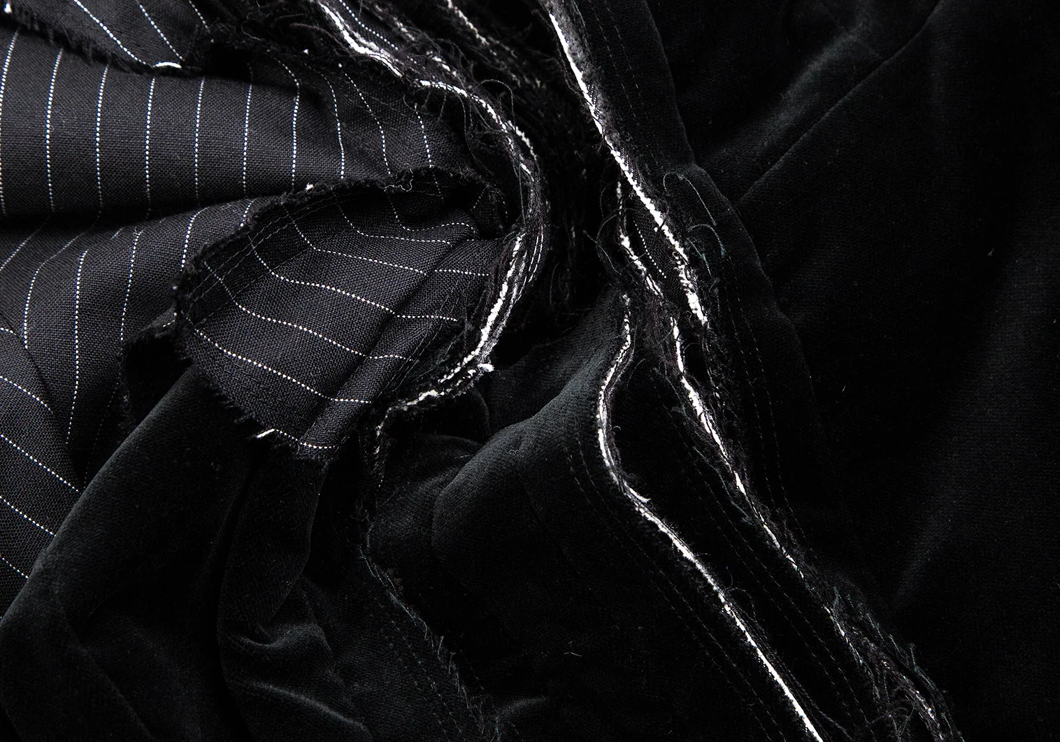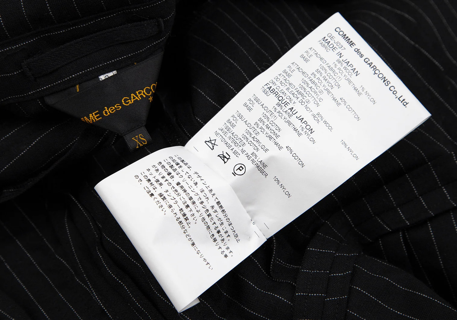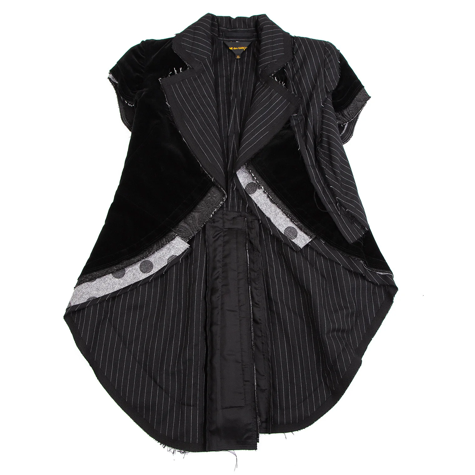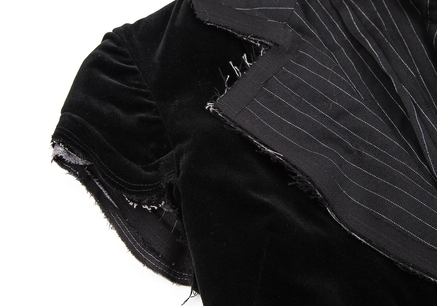 コムデギャルソンCOMME des GARCONS ベロアインサイドアウト切替ストライプ半袖ジャケット 黒XS