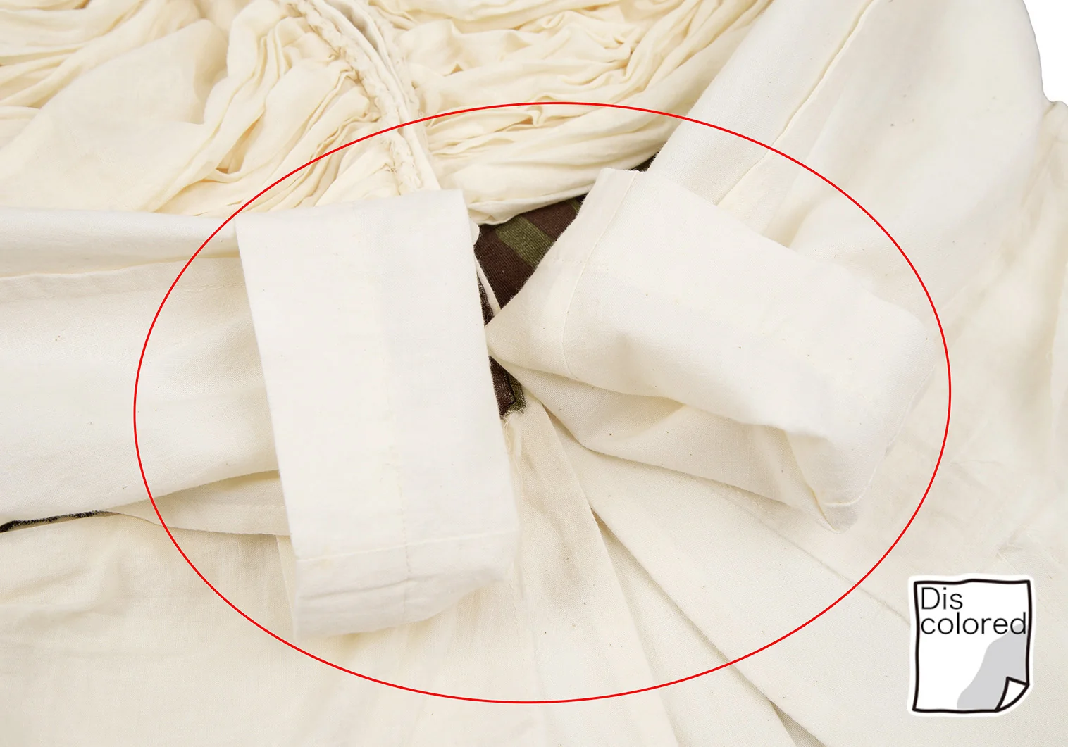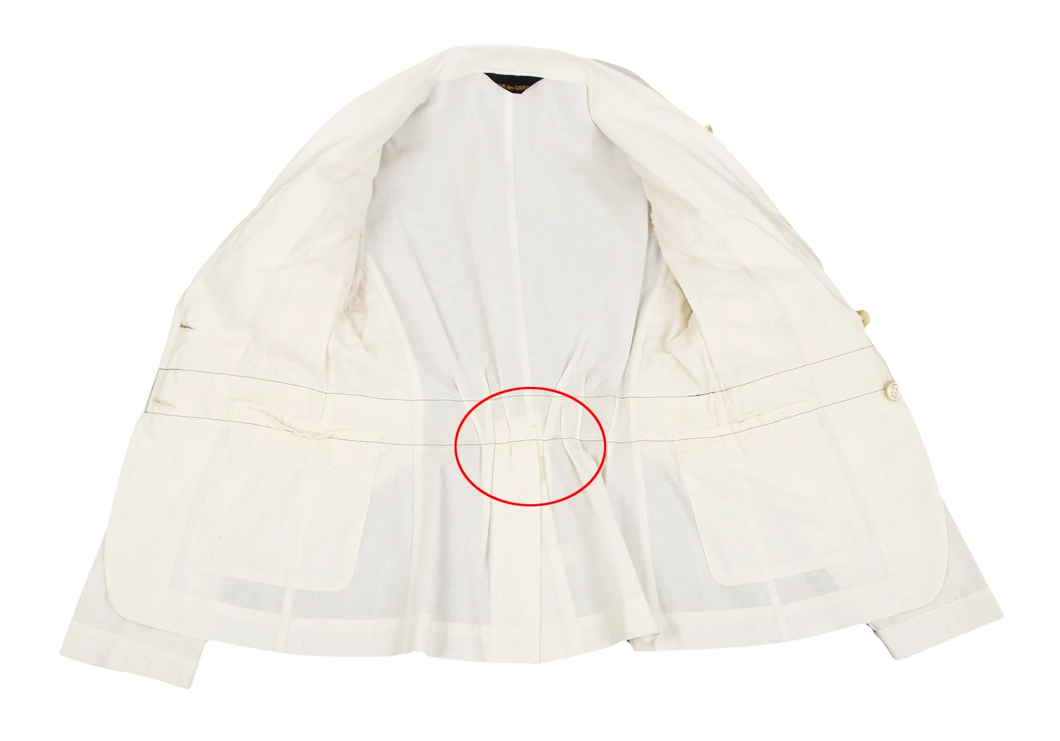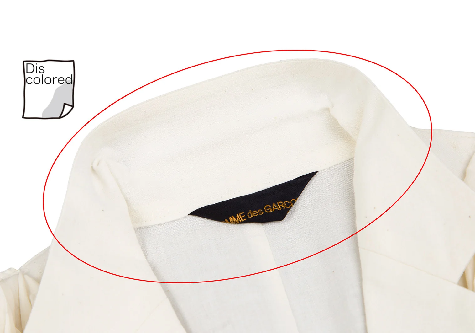 2001S/Sコレクション着用アイテムです。品質タグがありません。全体にシミがあります。襟裏・袖裏・右袖・裏地に色抜けがあります(写真参照)。クリーニング済み