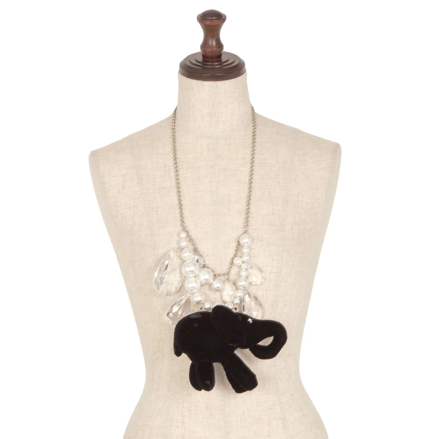 コムデギャルソンCOMME des GARCONS ビジュー装飾ベロアエレファントソフトトイネックレス 黒