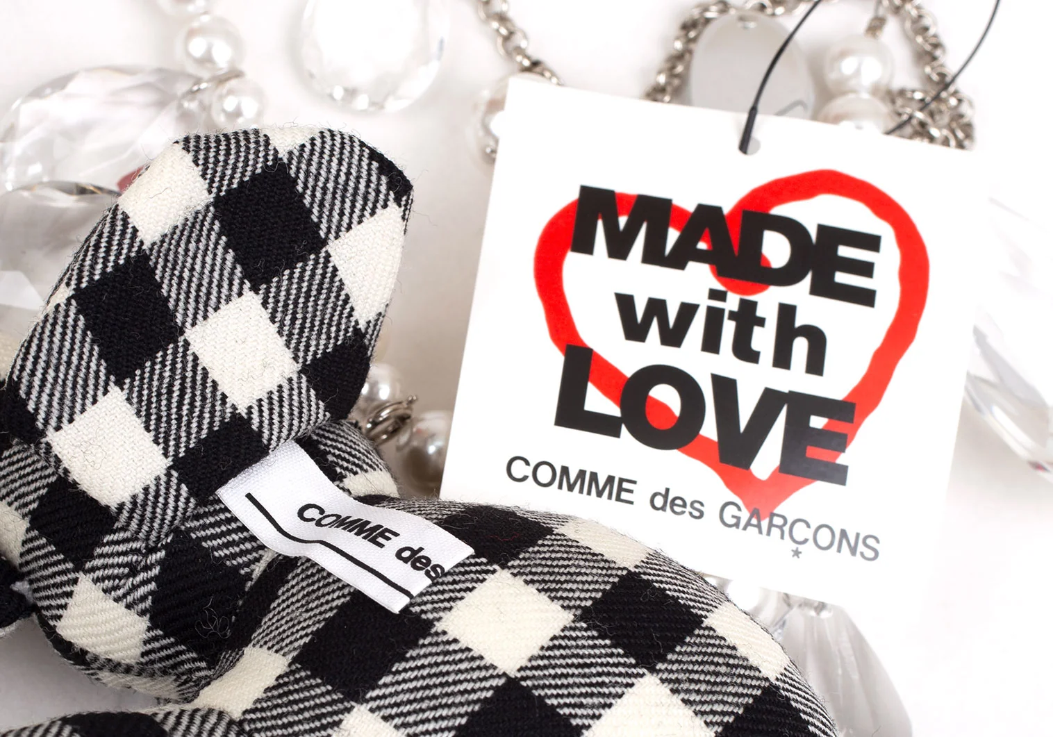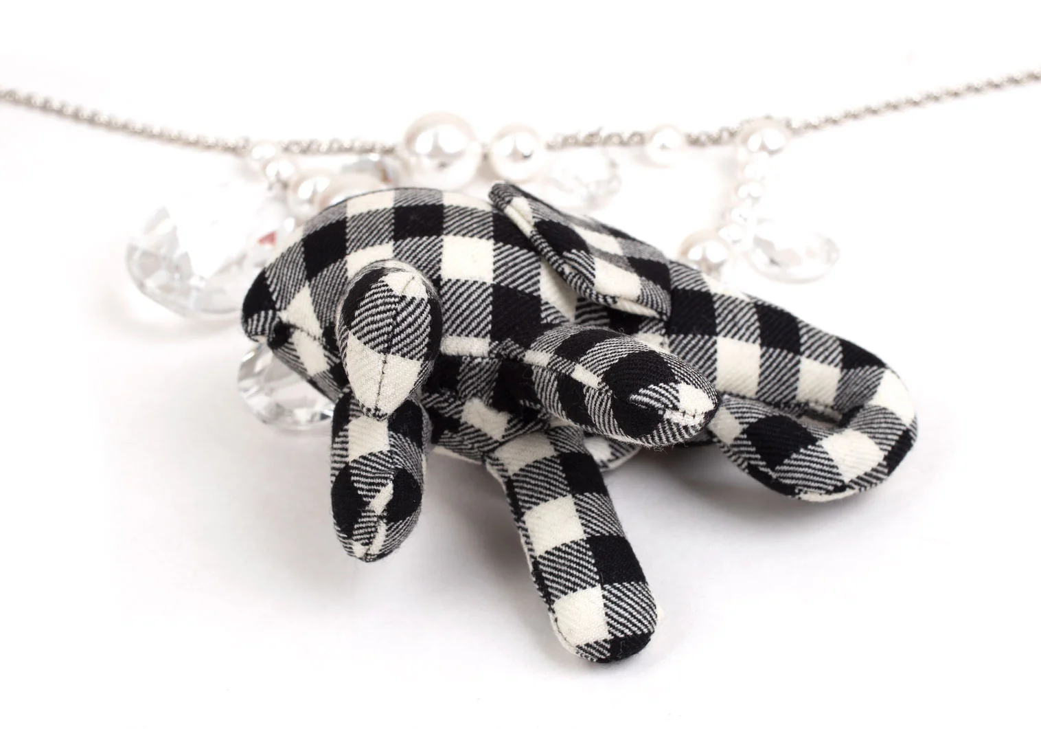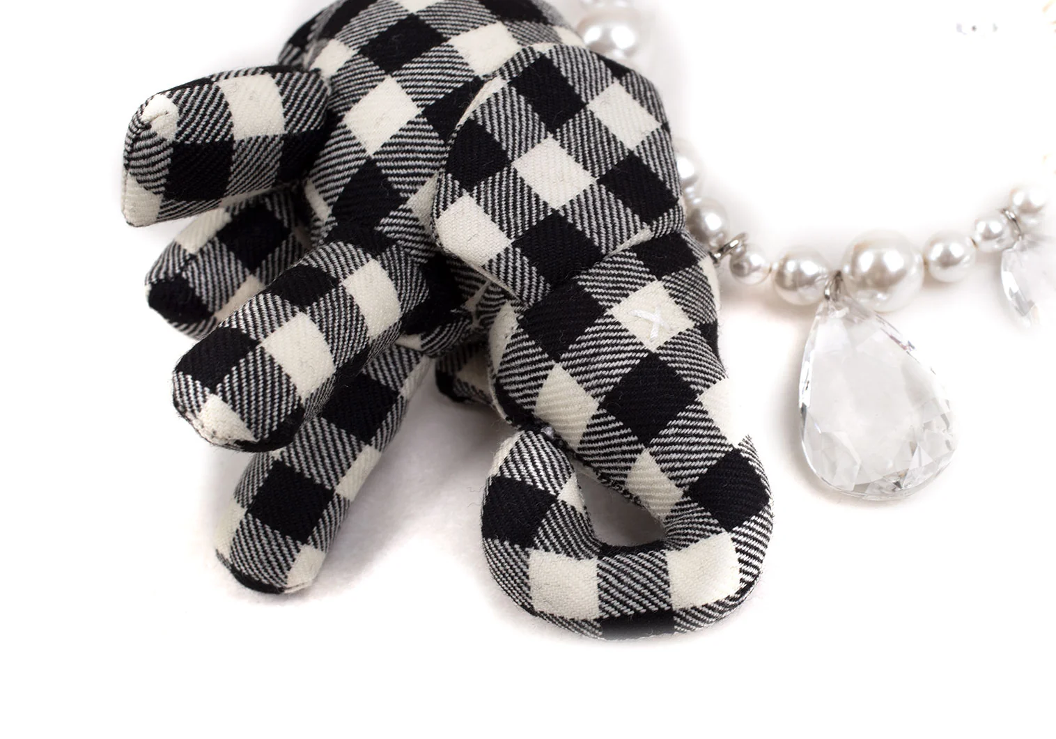 新品!コムデギャルソンCOMME des GARCONS ビジュー装飾ギンガムチェックエレファントソフトトイネックレス 黒オフ