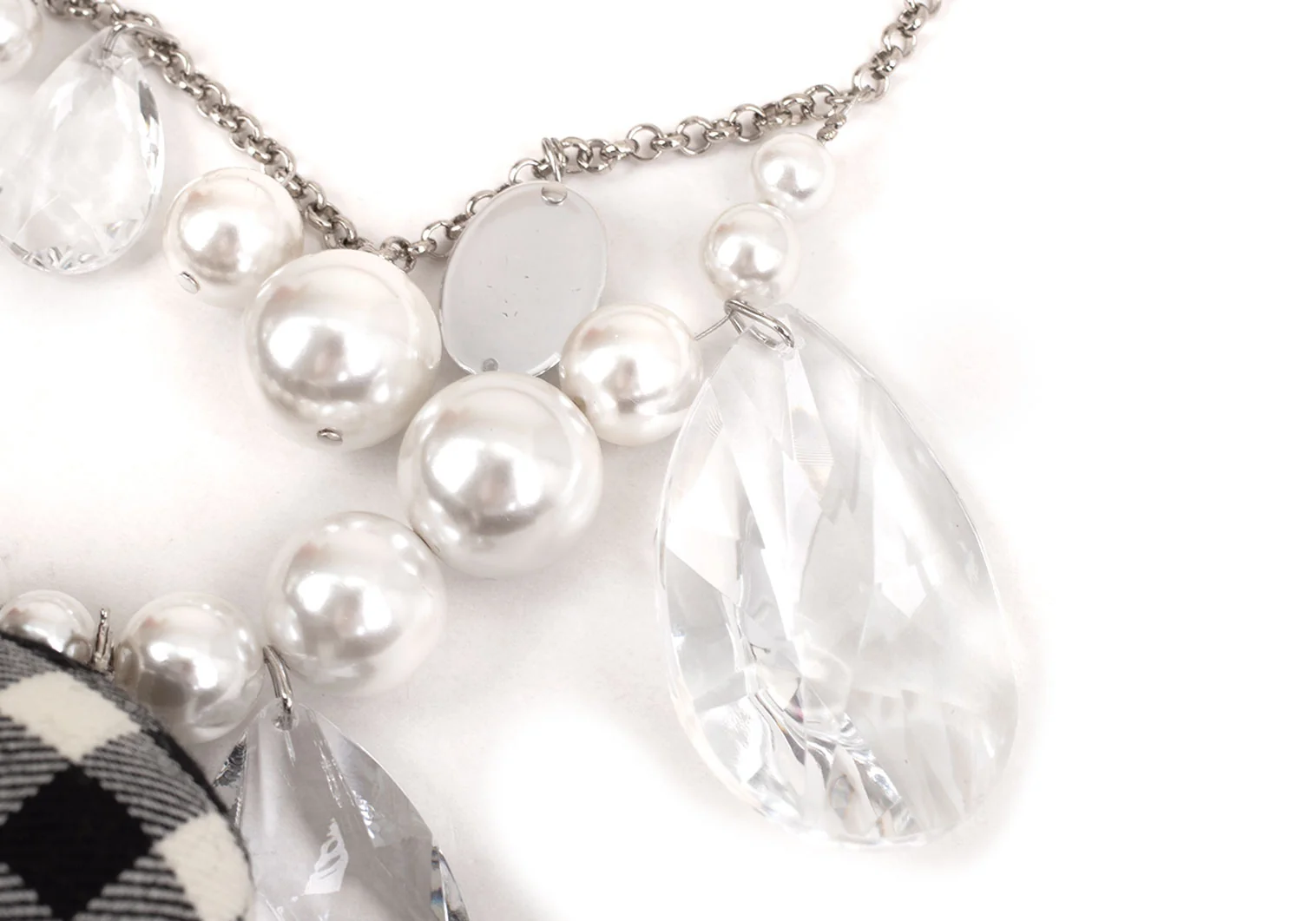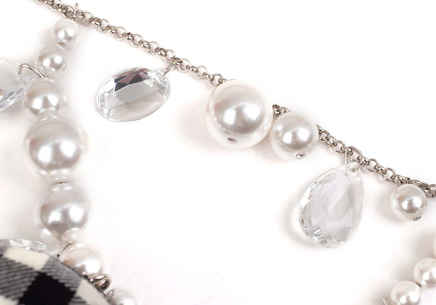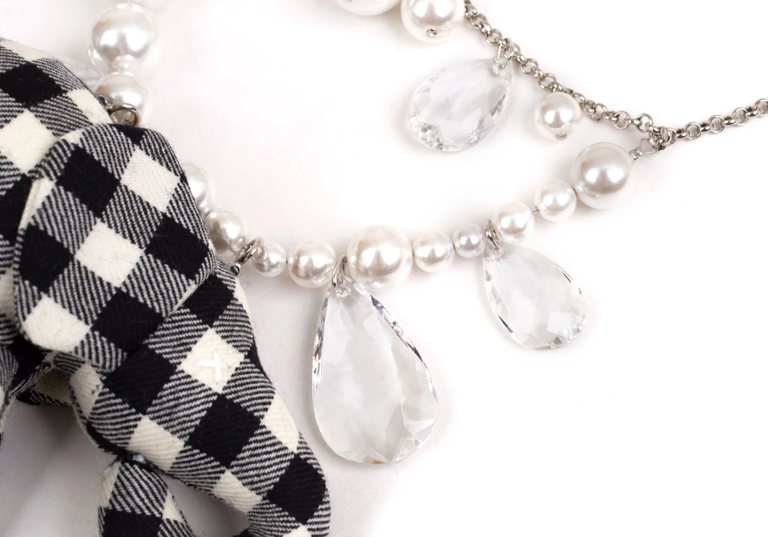新品!コムデギャルソンCOMME des GARCONS ビジュー装飾ギンガムチェックエレファントソフトトイネックレス 黒オフ