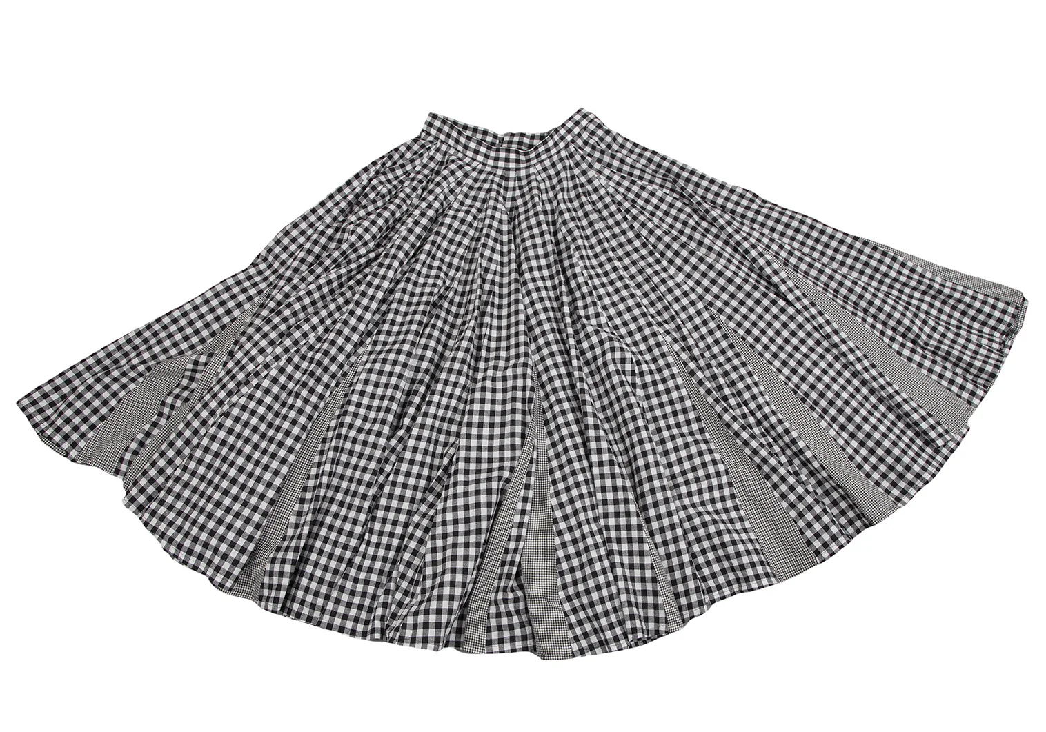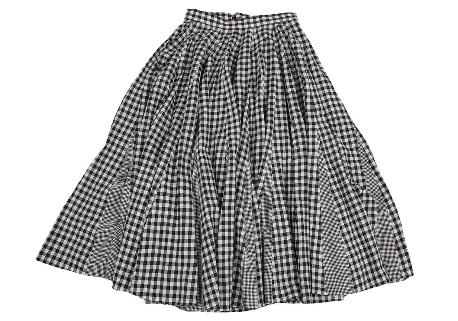 トリココムデギャルソンtricot COMME des GARCONS ギンガムチェック切替フレアスカート 白黒S
