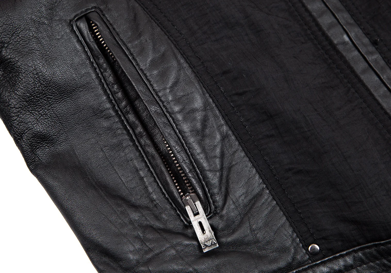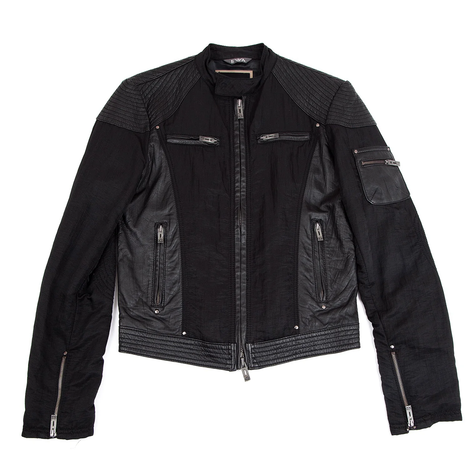 エンポリオアルマーニEMPORIO ARMANI レザー切替バイカージャケット 黒M