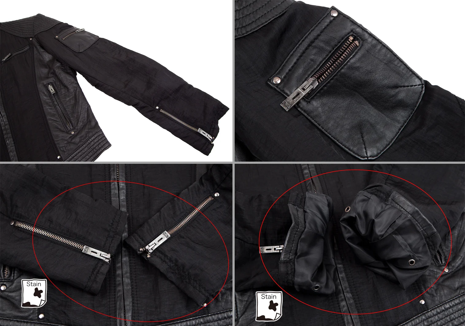 首元・袖先・袖裏・前裾に汚れ、裾に擦れがあります(画像参照)。その他目立ったシミ、汚れ、ほつれ等なくいい状態です。クリーニング済み