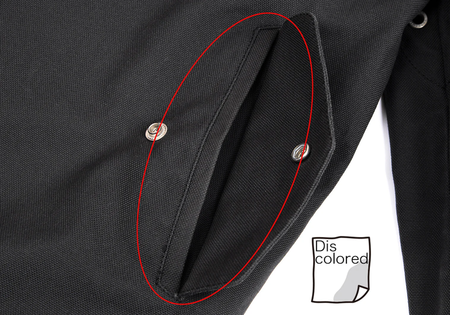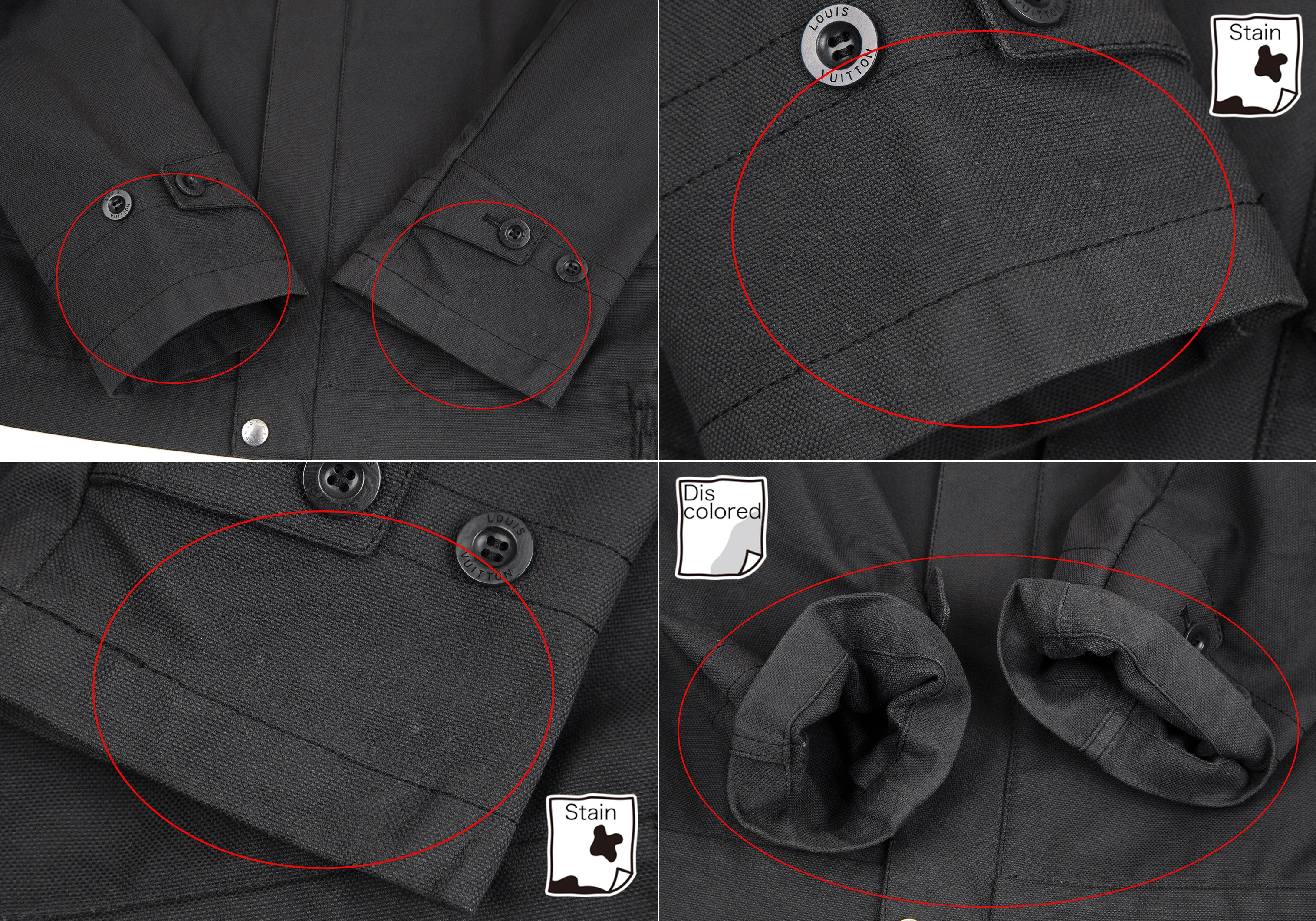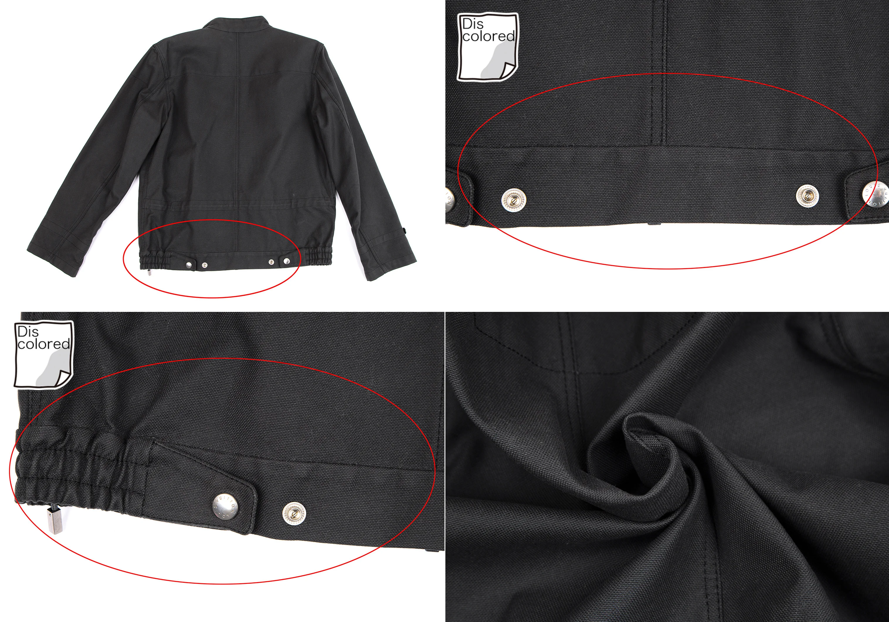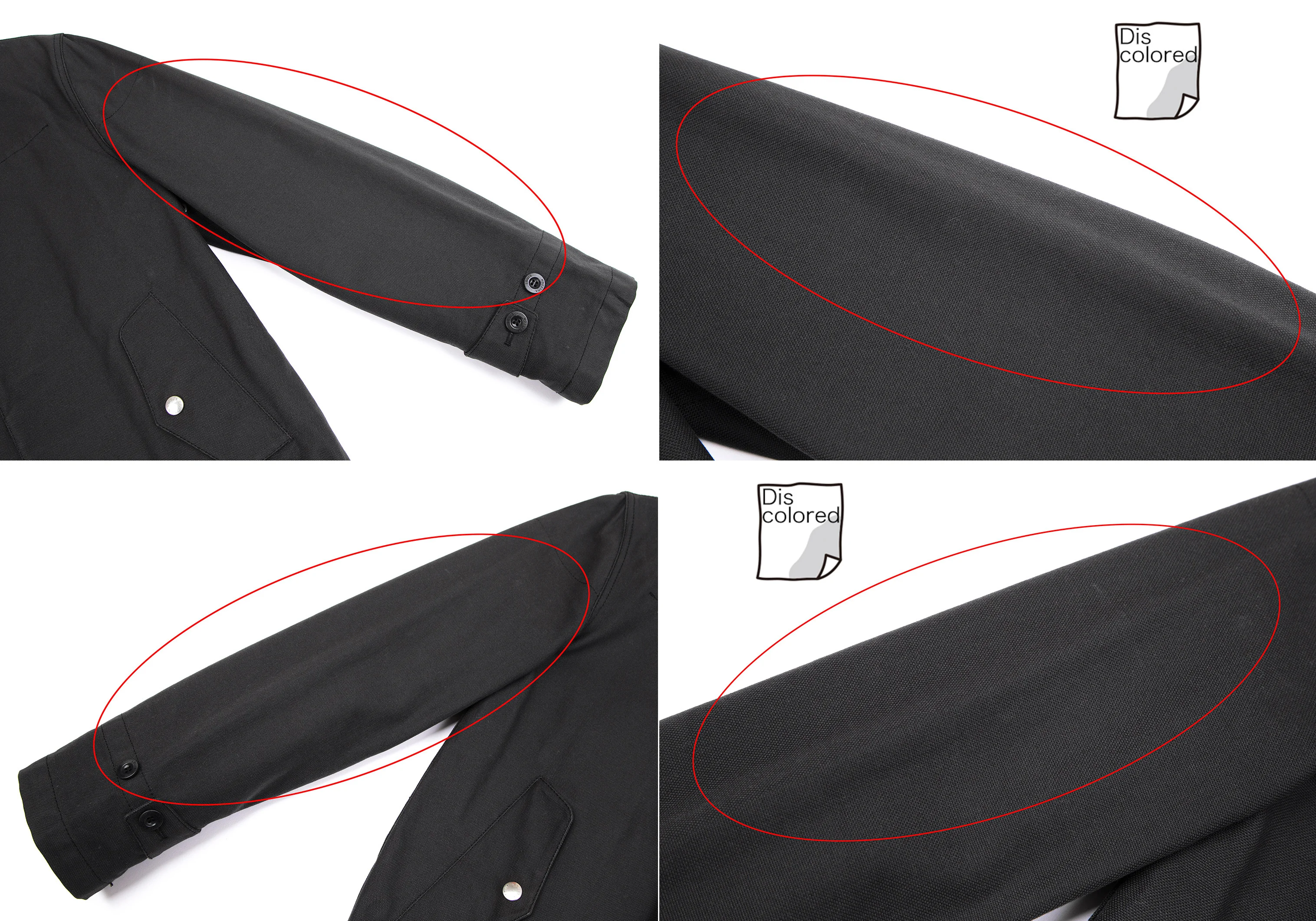 袖先に汚れ、肩・袖にヤケ、首元・袖裏・ポケット口・前ジップ・裾に変色があります。(画像参照)クリーニング済み