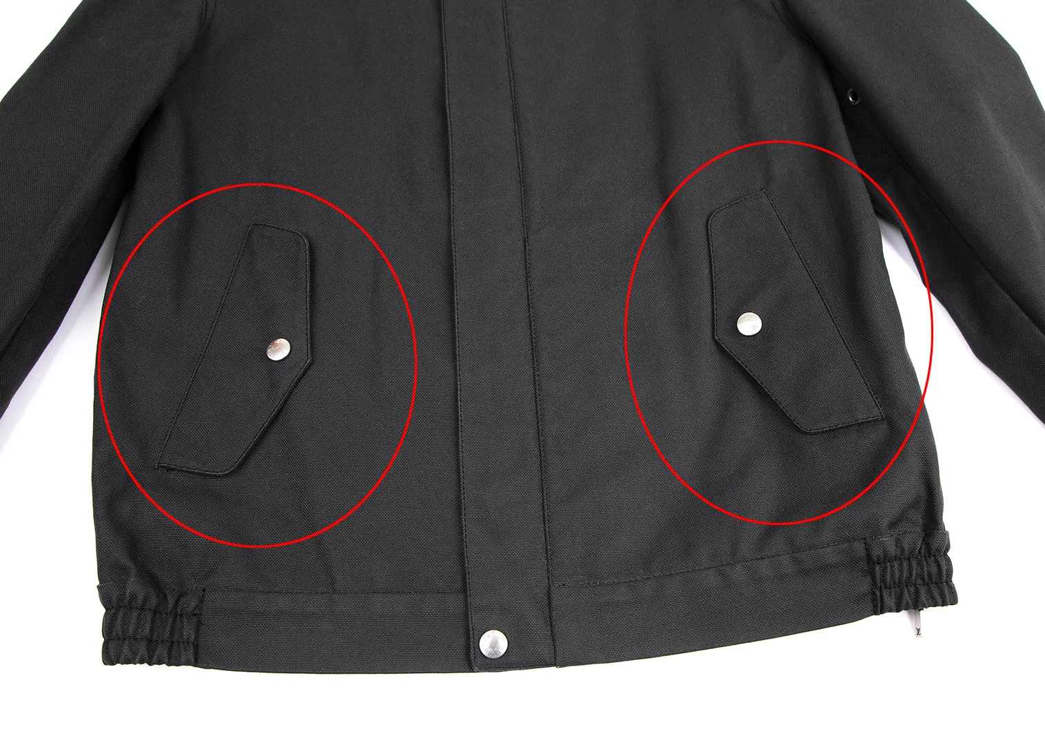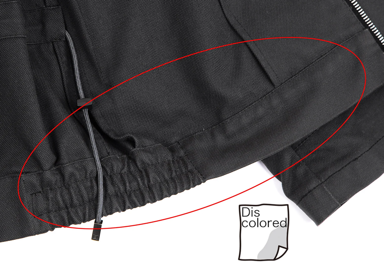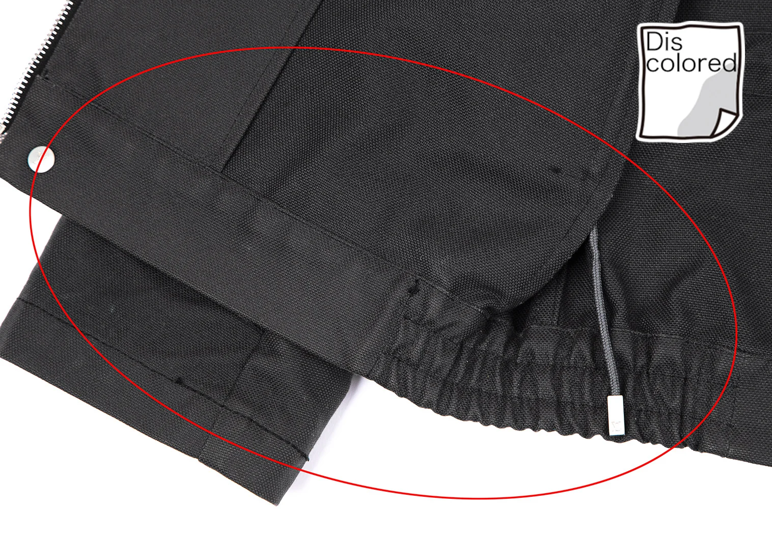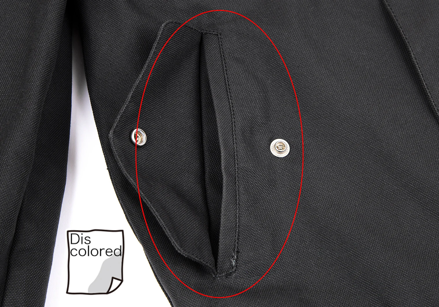 袖先に汚れ、肩・袖にヤケ、首元・袖裏・ポケット口・前ジップ・裾に変色があります。(画像参照)クリーニング済み