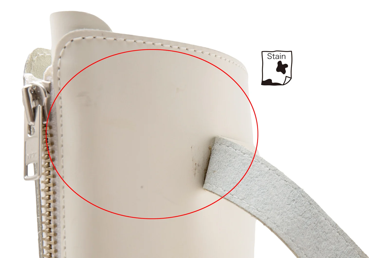 表面にシミ・汚れ、内側に薄汚れ、ベルト根本にシミ・多少ダメージがあります(写真参照)その他目立った傷や汚れなどなくいい状態です。