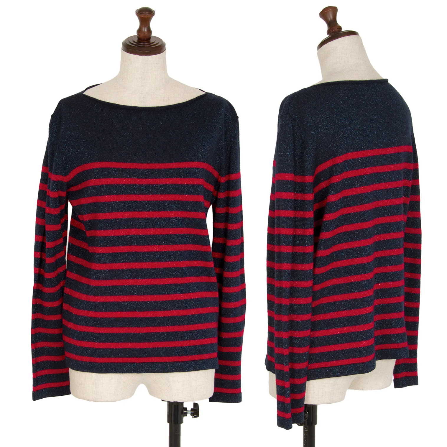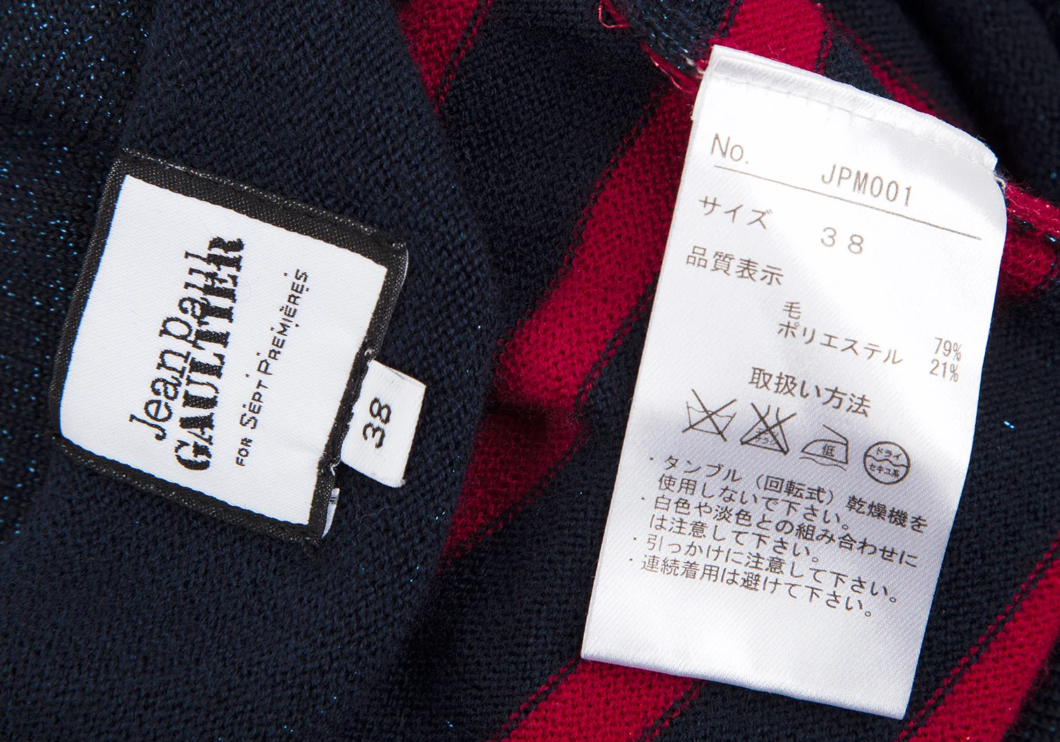 ジャンポールゴルチエ フォー セットプルミエJean Paul GAULTIER FOR SEPT PREMIERES グリッターマリンボーダーニットセーター 紺赤38