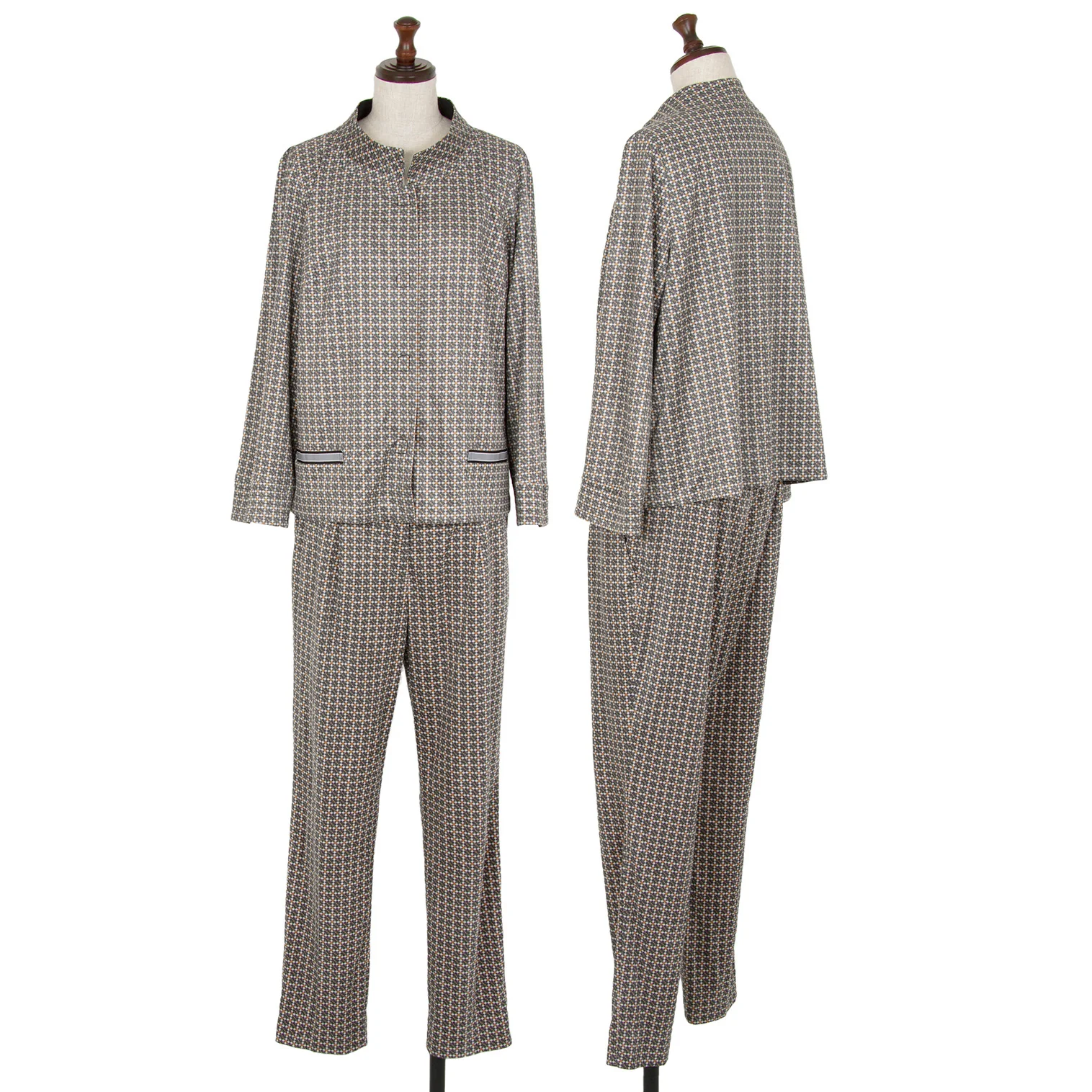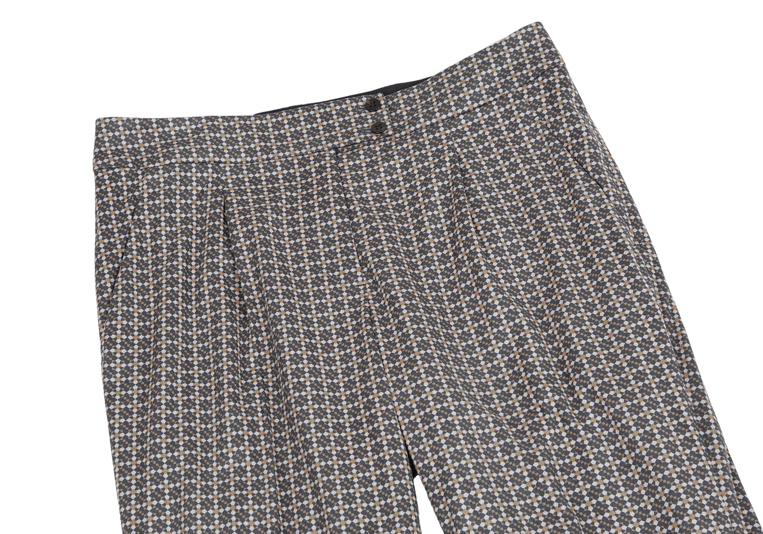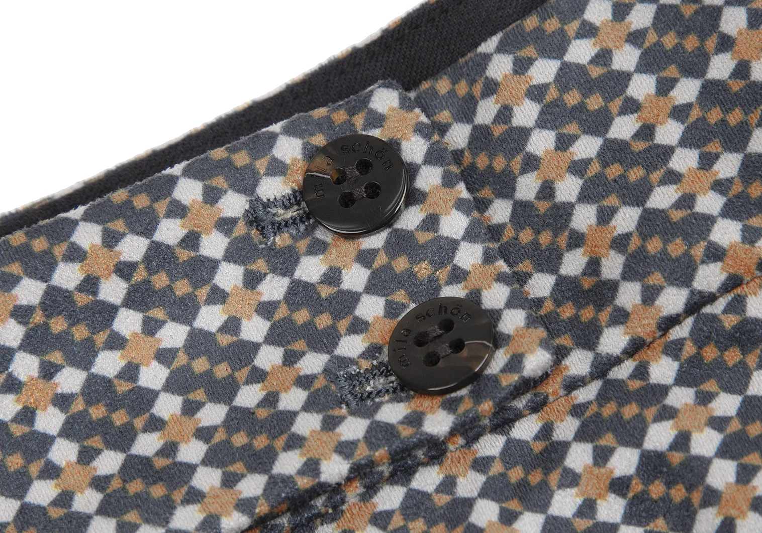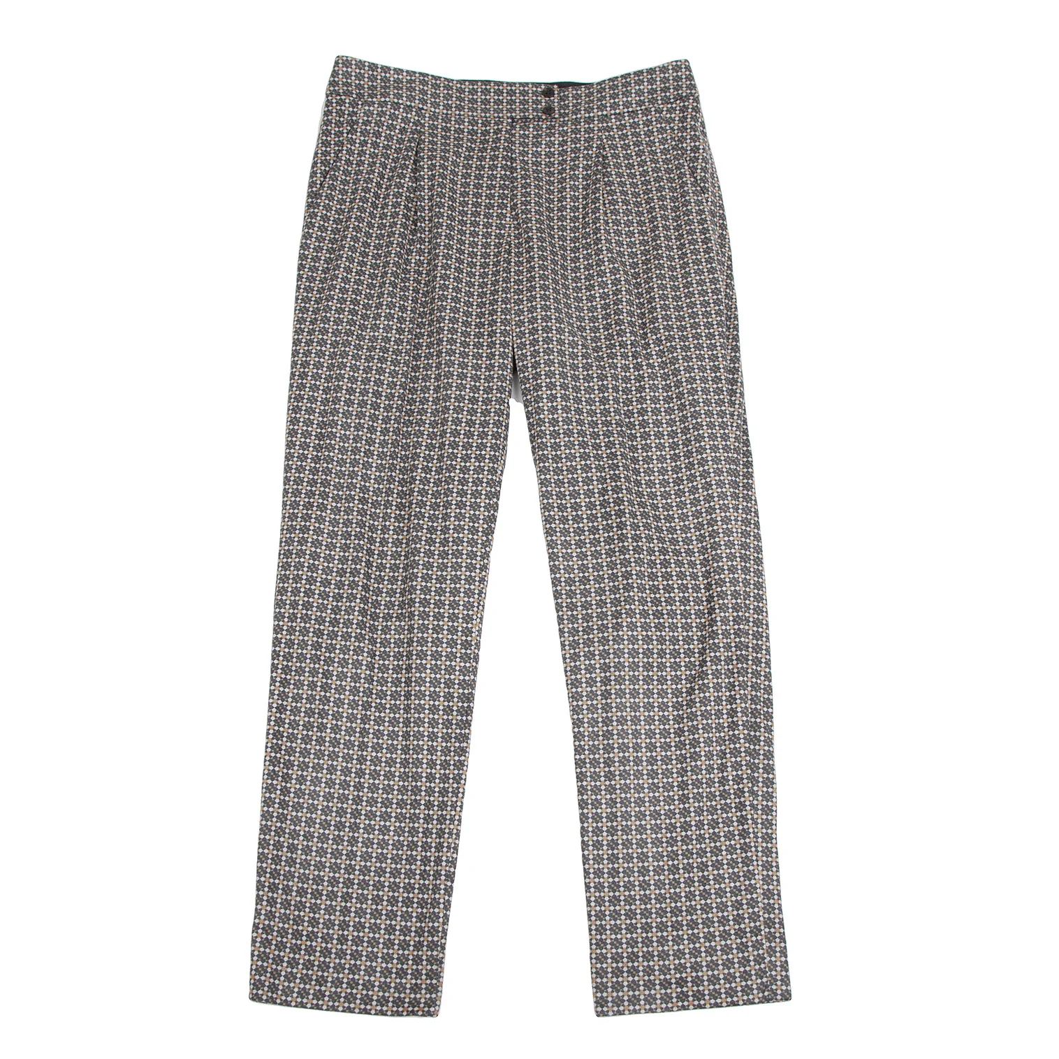 ミラショーンmila schon 幾何学プリントピーチスキンパンツ 緑マスタード白42