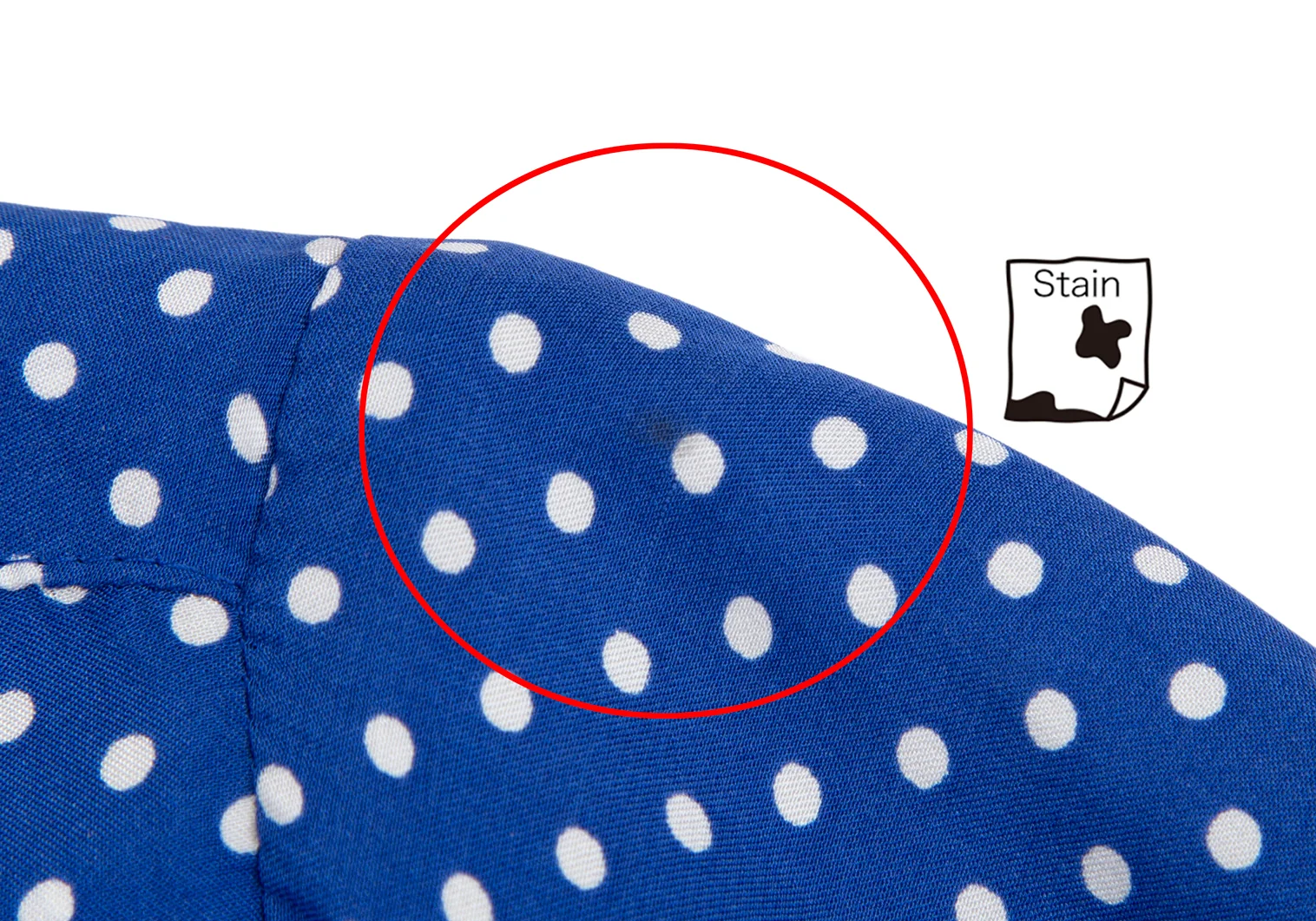 首裏・袖裏に薄汚れ、左肩にシミ、袖先生地の浮き、後ろ裾・後ろ右袖に糸引きがあります(画像参照)。その他目立ったシミ、汚れ、ほつれ等ありません。クリーニング済み