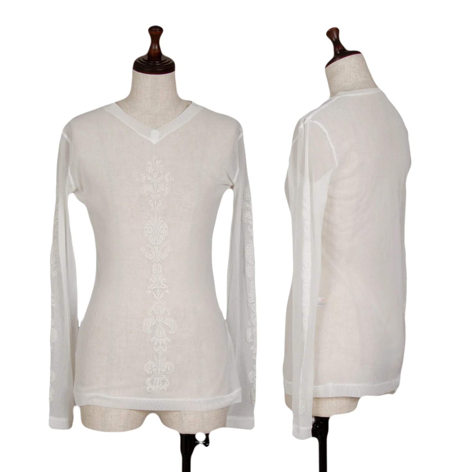 レキップ ヨシエイナバL'EQUIPE YOSHIE INABA ダマスクプリントパワーネットVネックカットソー 白M位