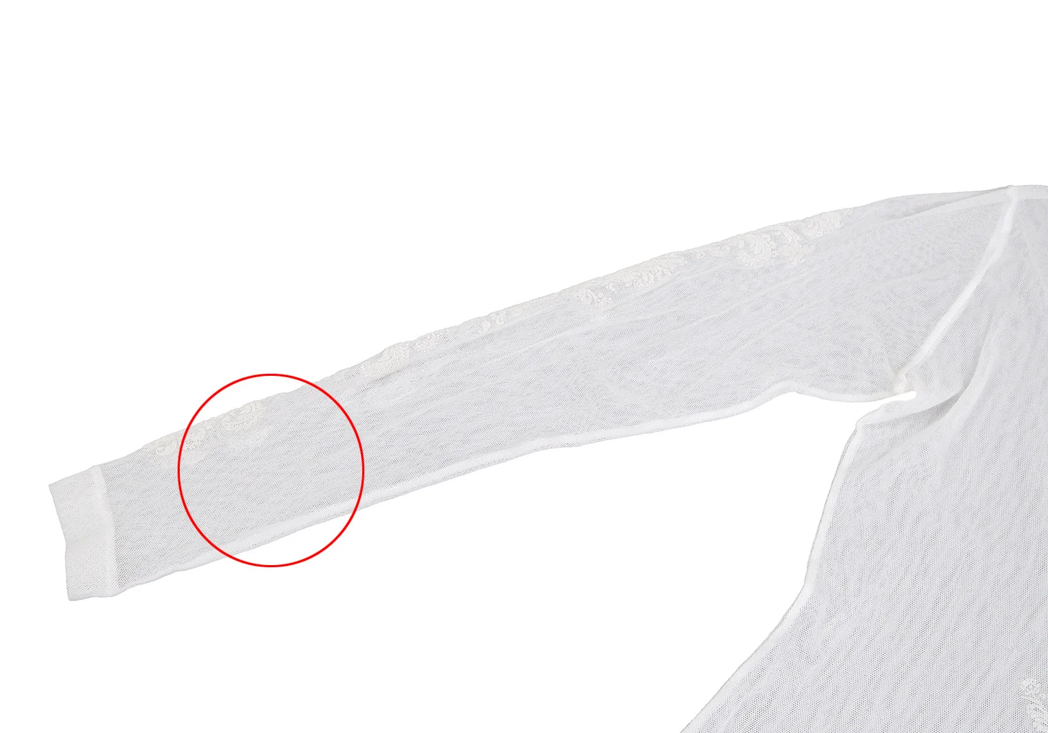 透け感があります。右袖に薄シミがあります。(写真参照)その他目立ったシミ、汚れ、ほつれ等なくいい状態です。クリーニング済み