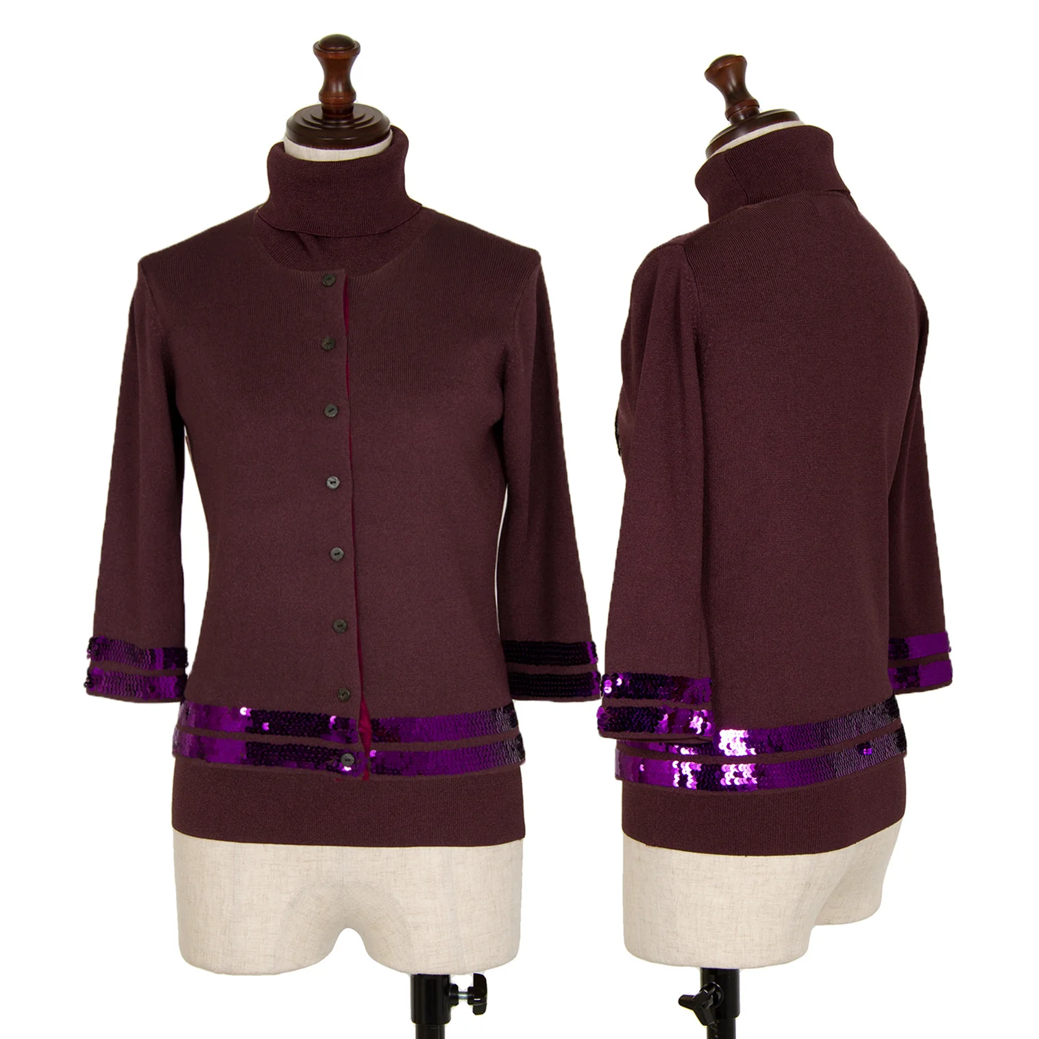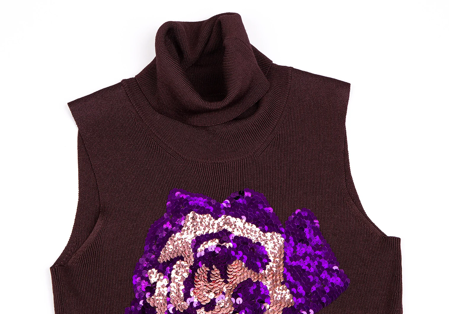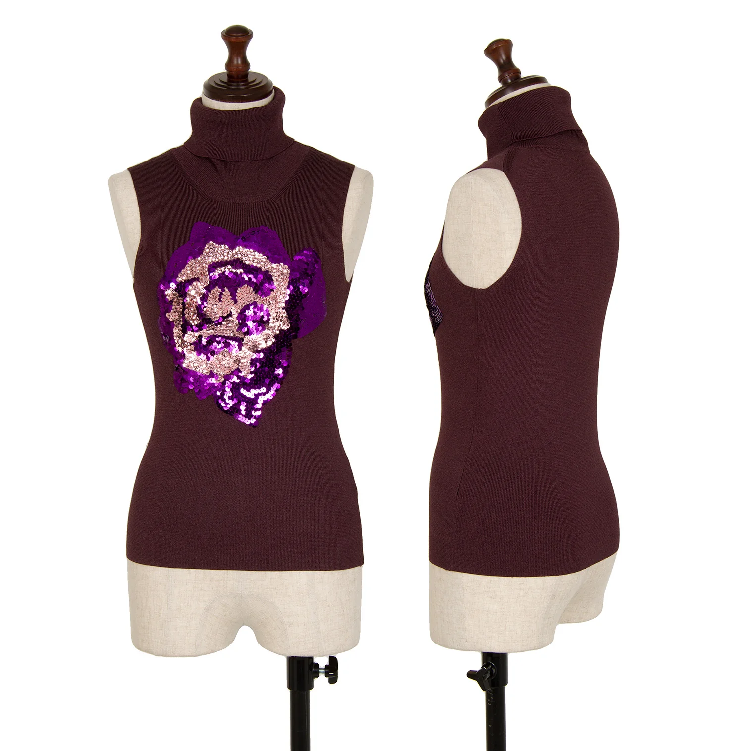 レキップ ヨシエイナバL'EQUIPE YOSHIE INABA ブルーローズスパンコールノースリーブハイネックニット ボルドーM位