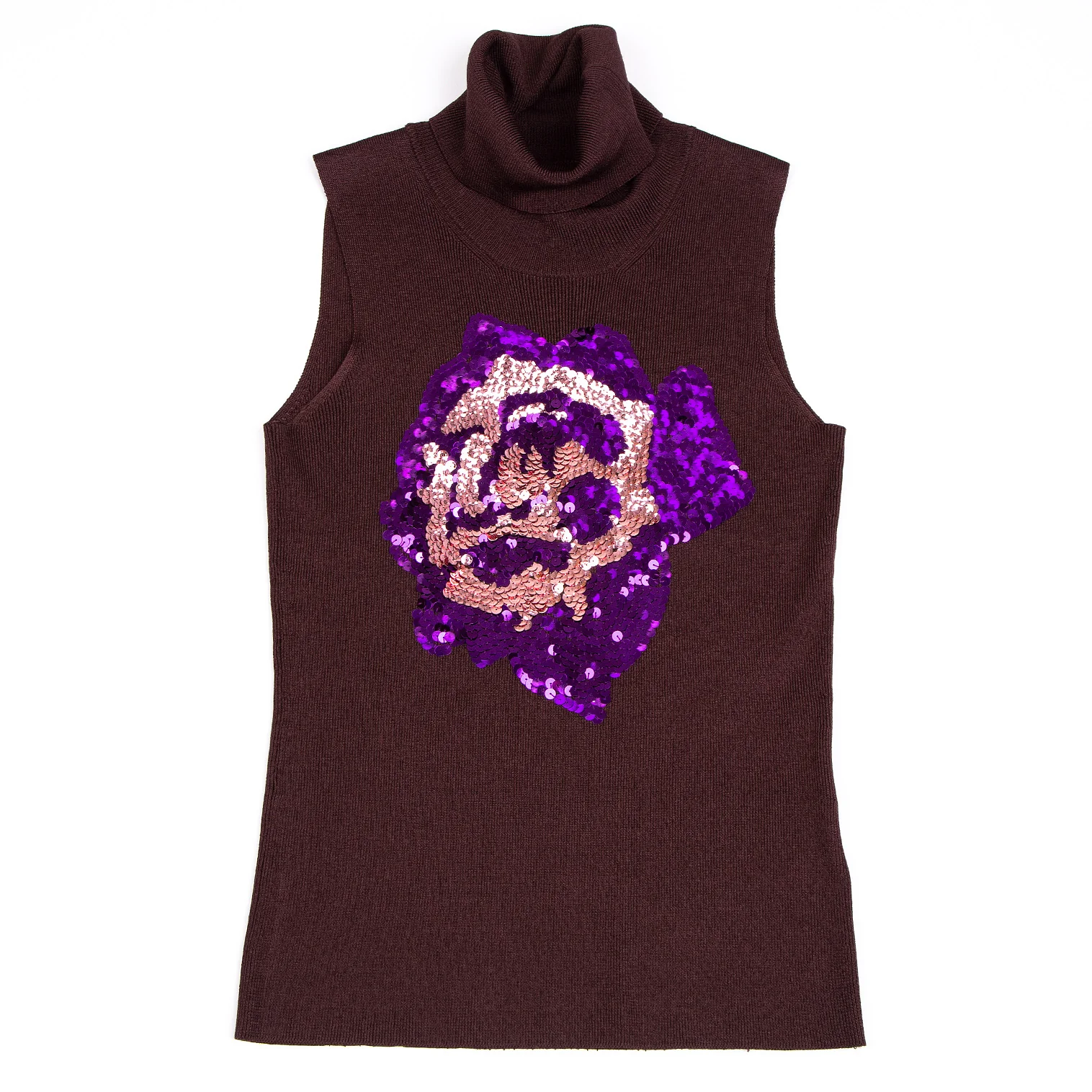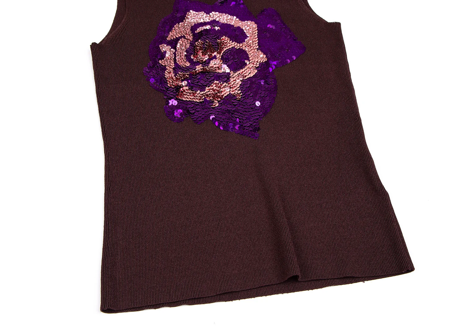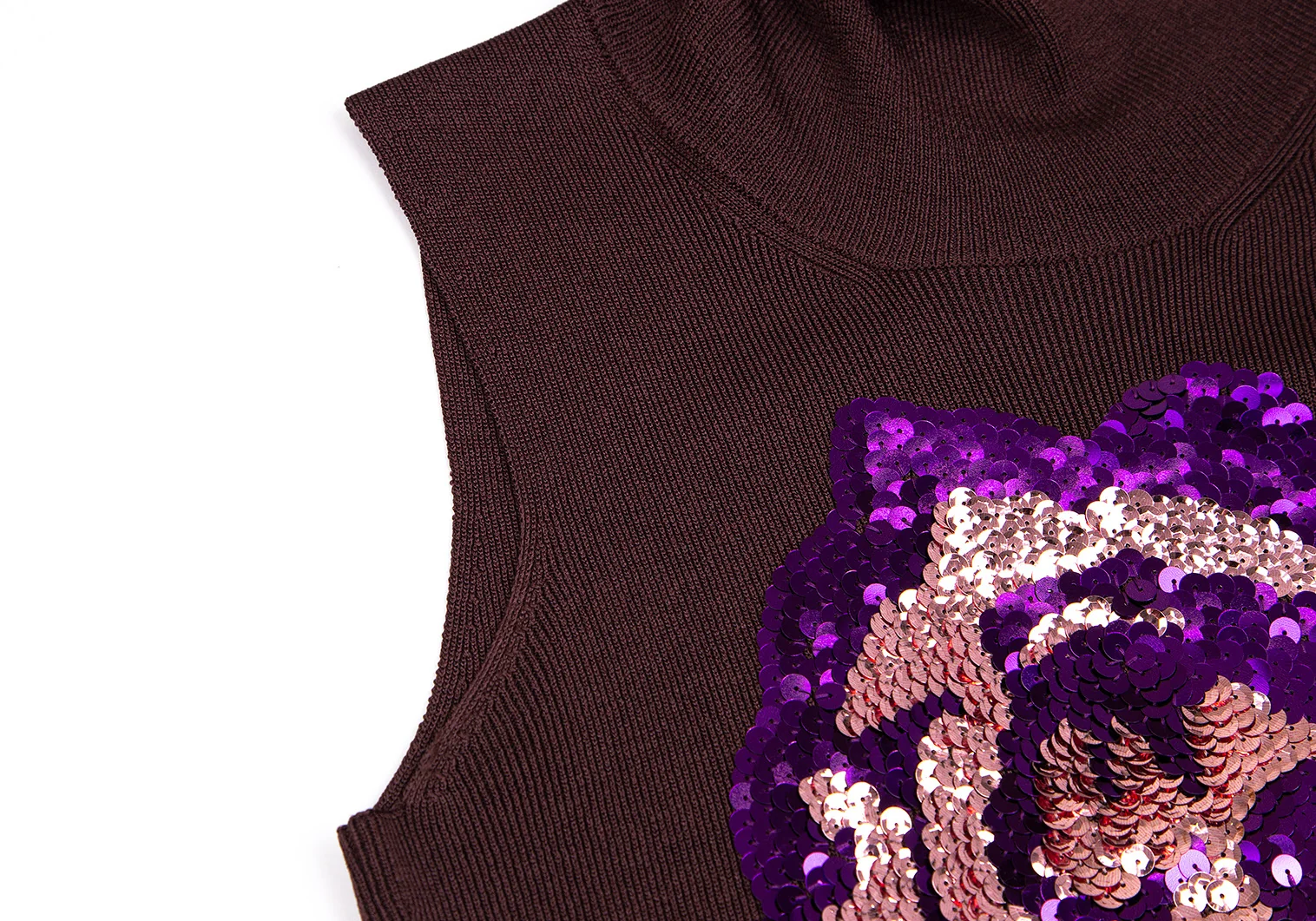 レキップ ヨシエイナバL'EQUIPE YOSHIE INABA ブルーローズスパンコールノースリーブハイネックニット ボルドーM位