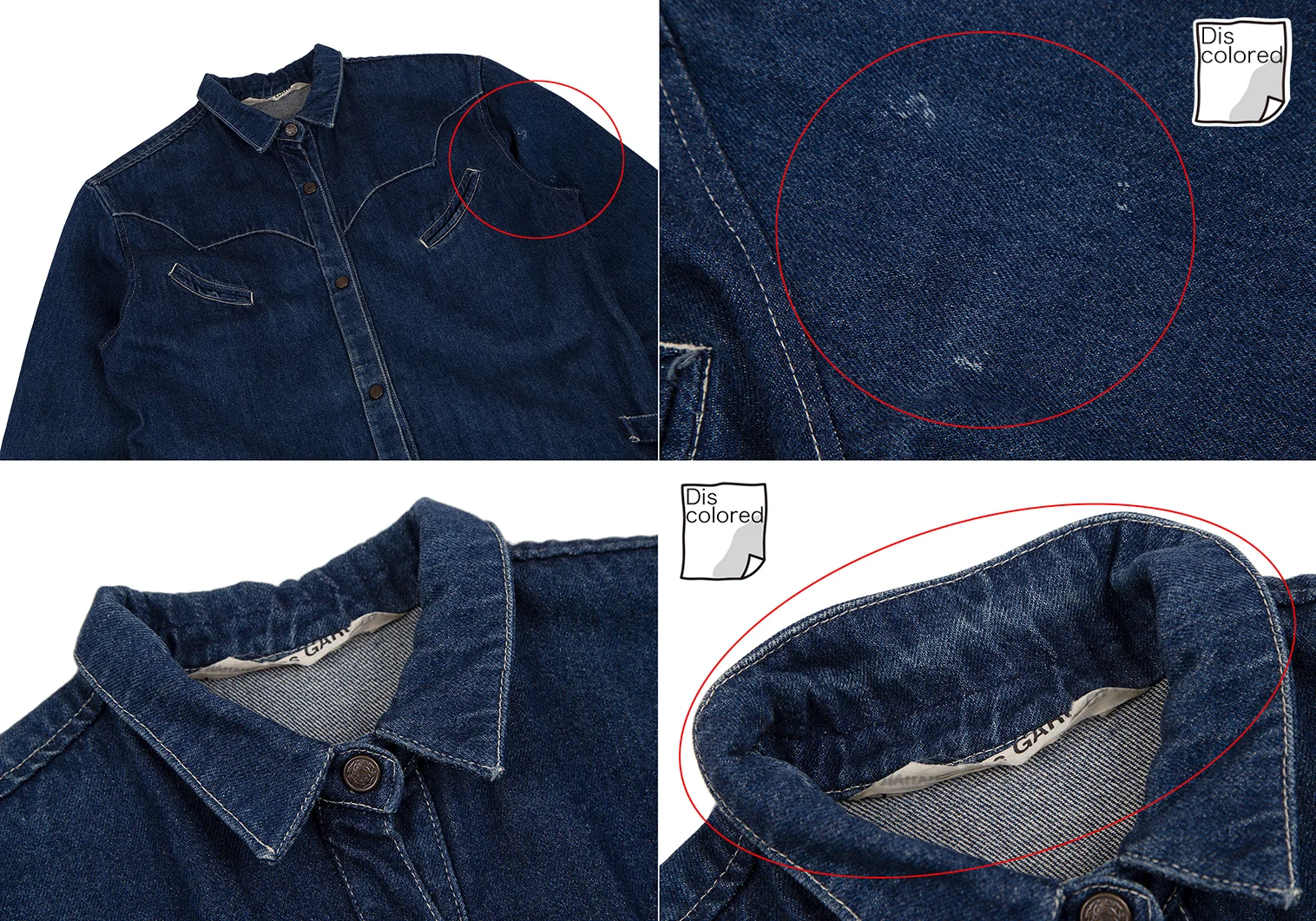 左袖・襟裏・袖裏に色褪せ、前身頃に引っかけがあります。(画像参照)その他目立ったシミ、汚れ、ほつれ等なくいい状態です。クリーニング済み