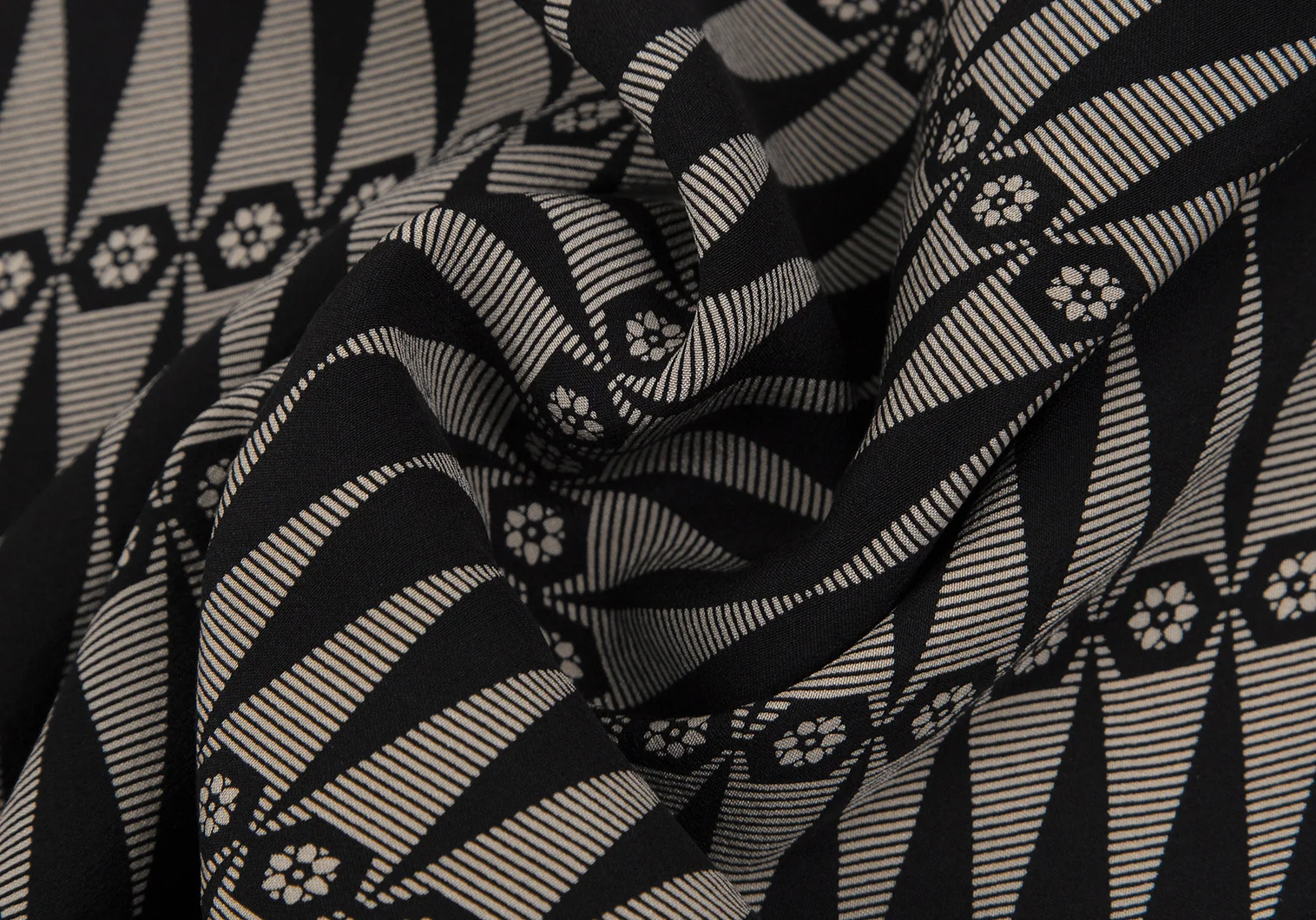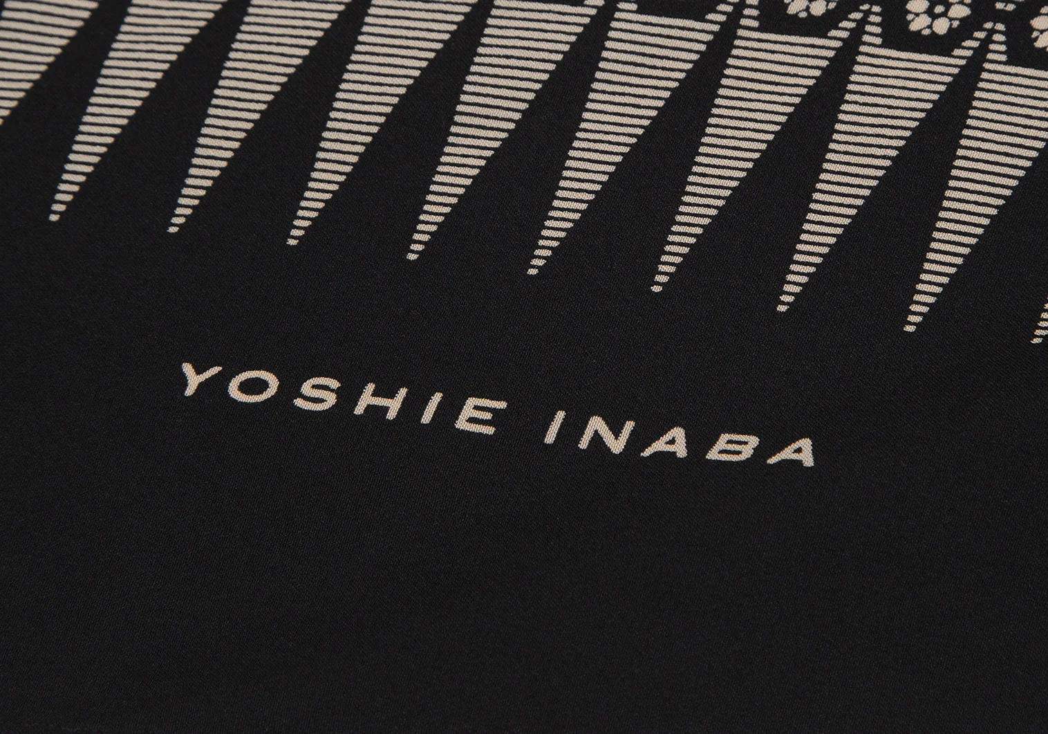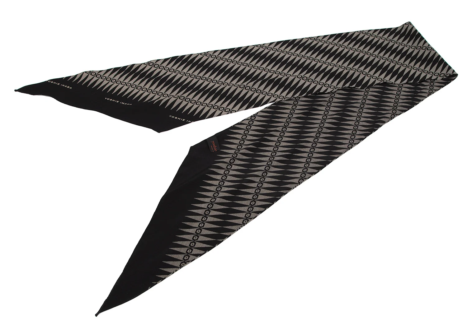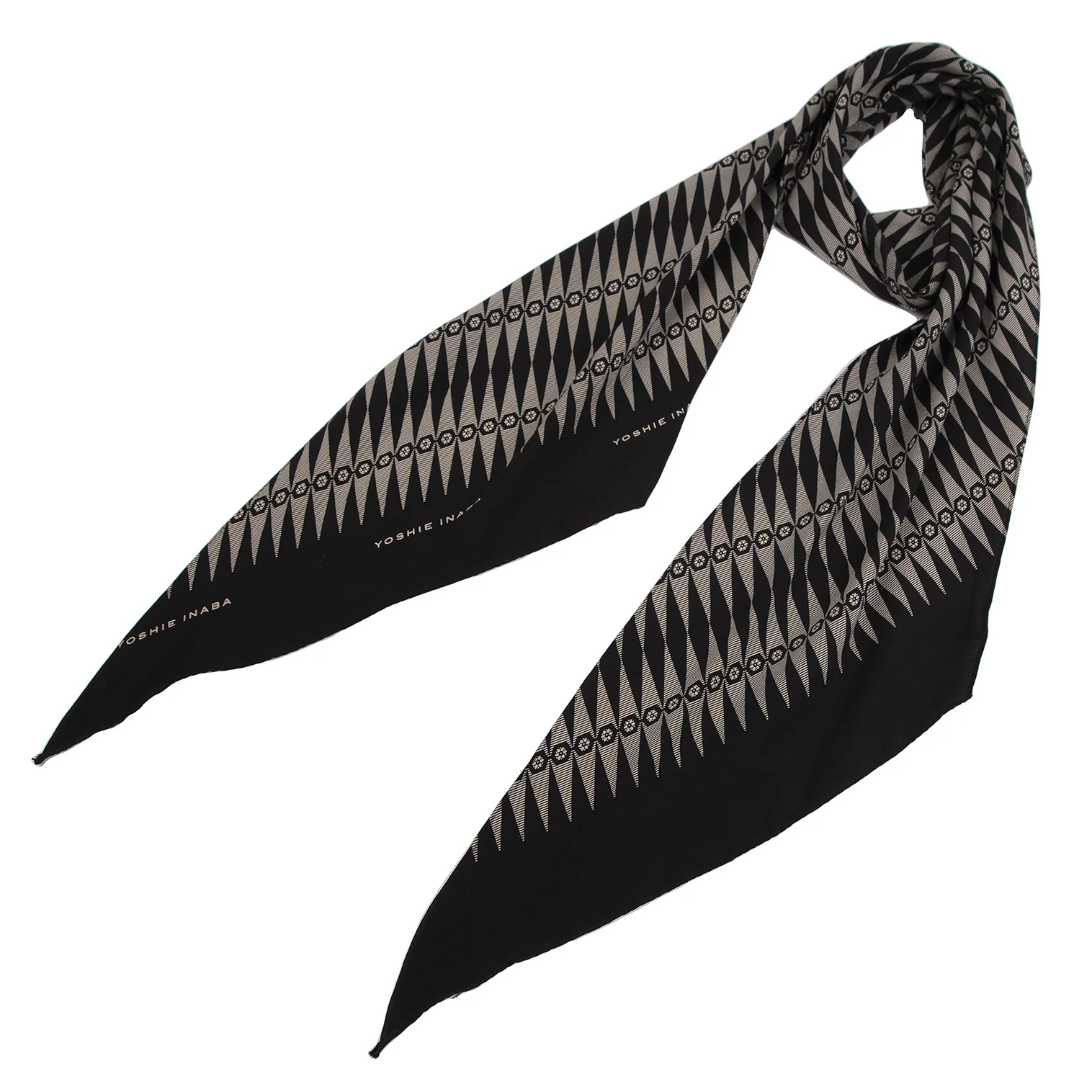 ヨシエイナバyoshie inaba ジオメトリックプリントスカーフ 黒ベージュ