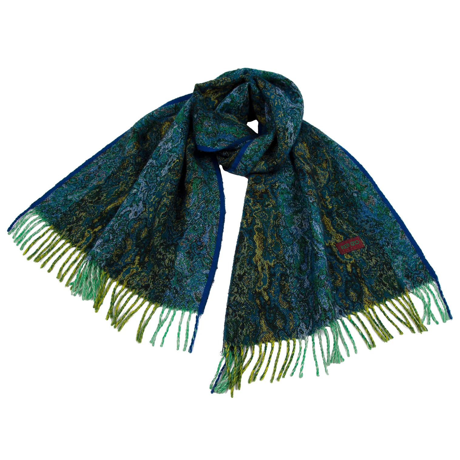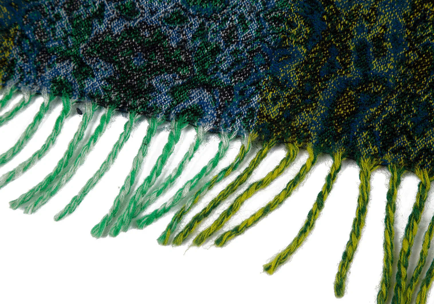 ケンゾーKENZO ジャガードフリンジストール 青黄他