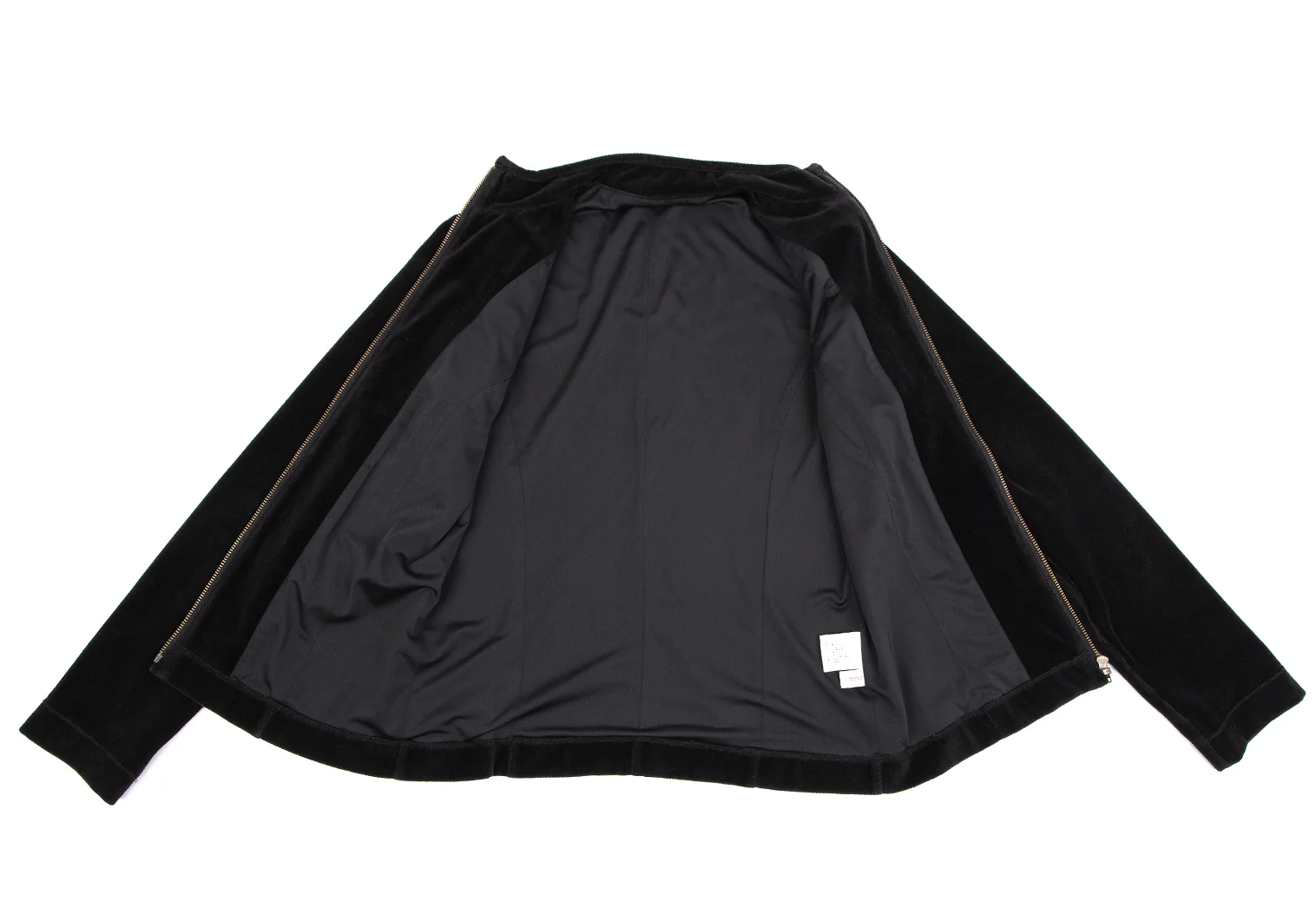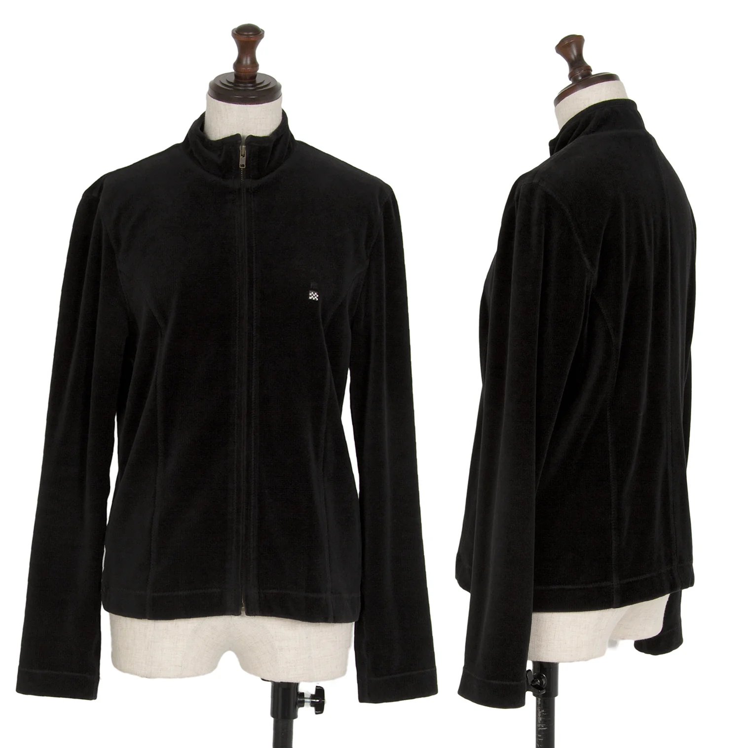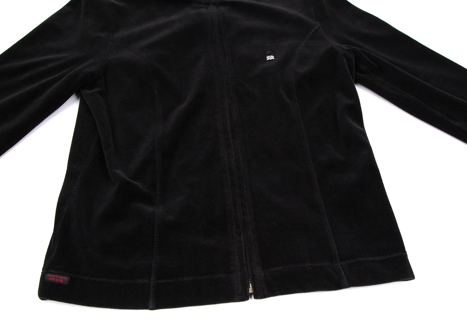 マドモアゼルノンノンMademoiselle NON NON ワンポイント刺繍ベロアトラックジャケット 黒38M