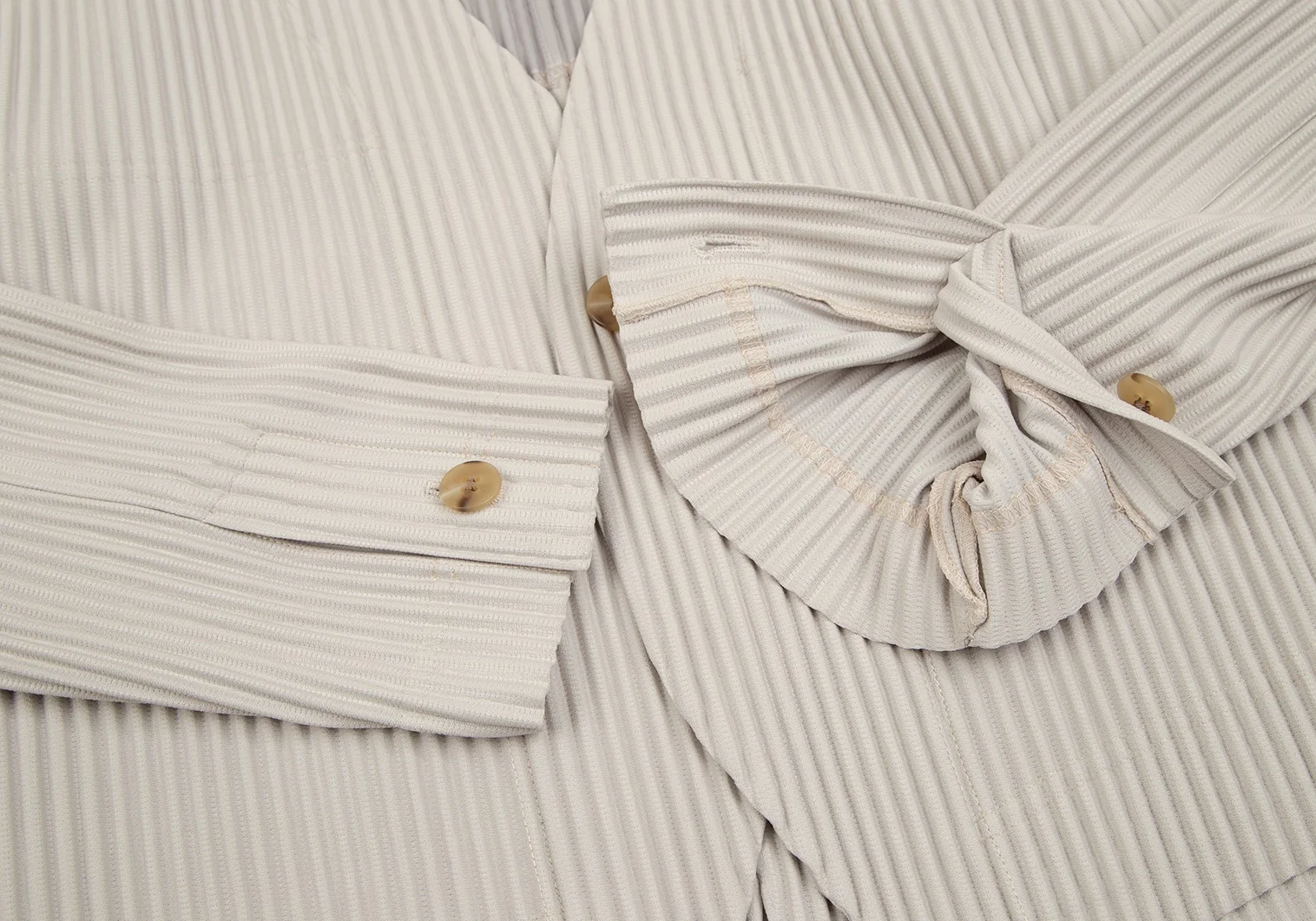 オムプリッセ イッセイ ミヤケHOMME PLISSE ISSEY MIYAKE プリーツノーカラージャケット ライトグレー1