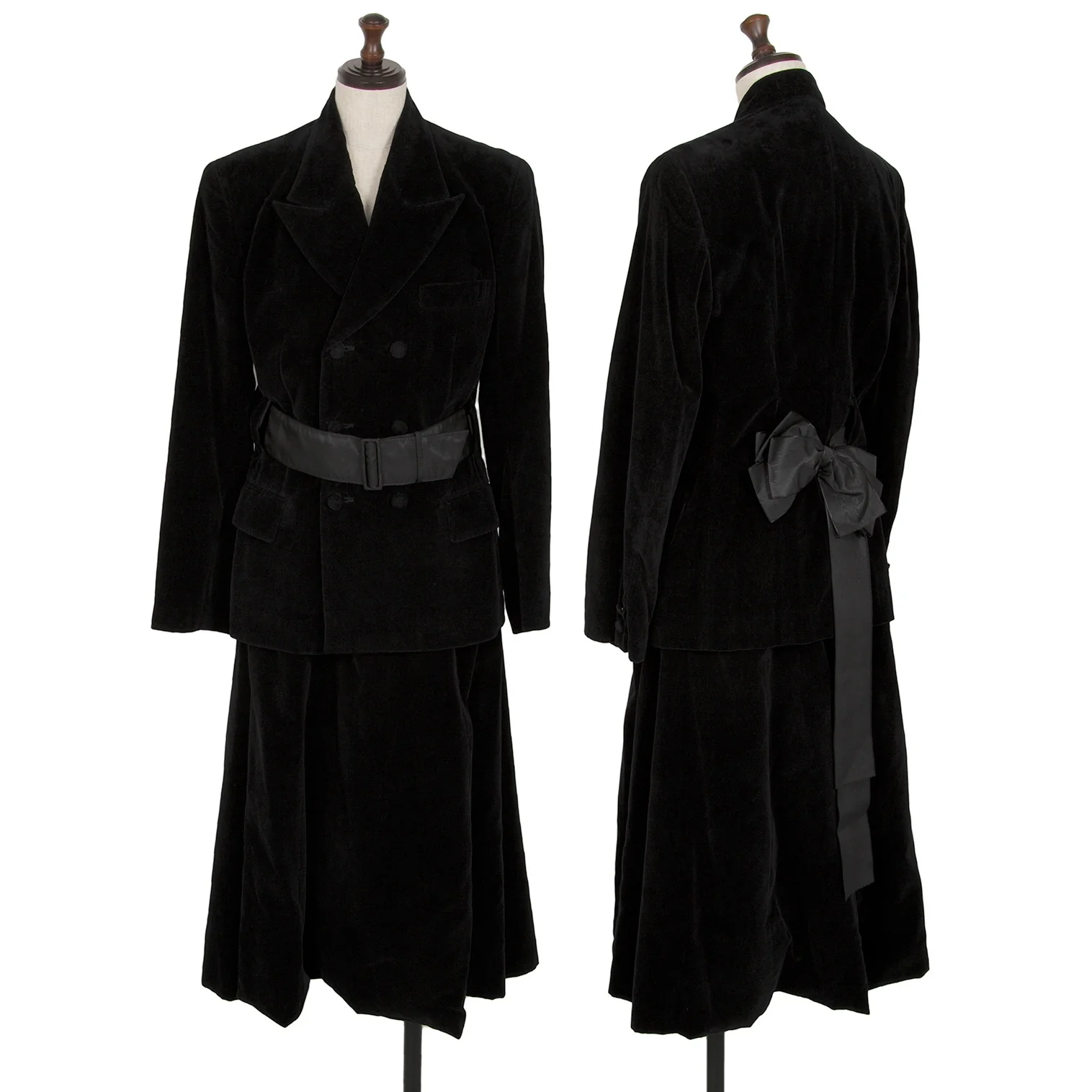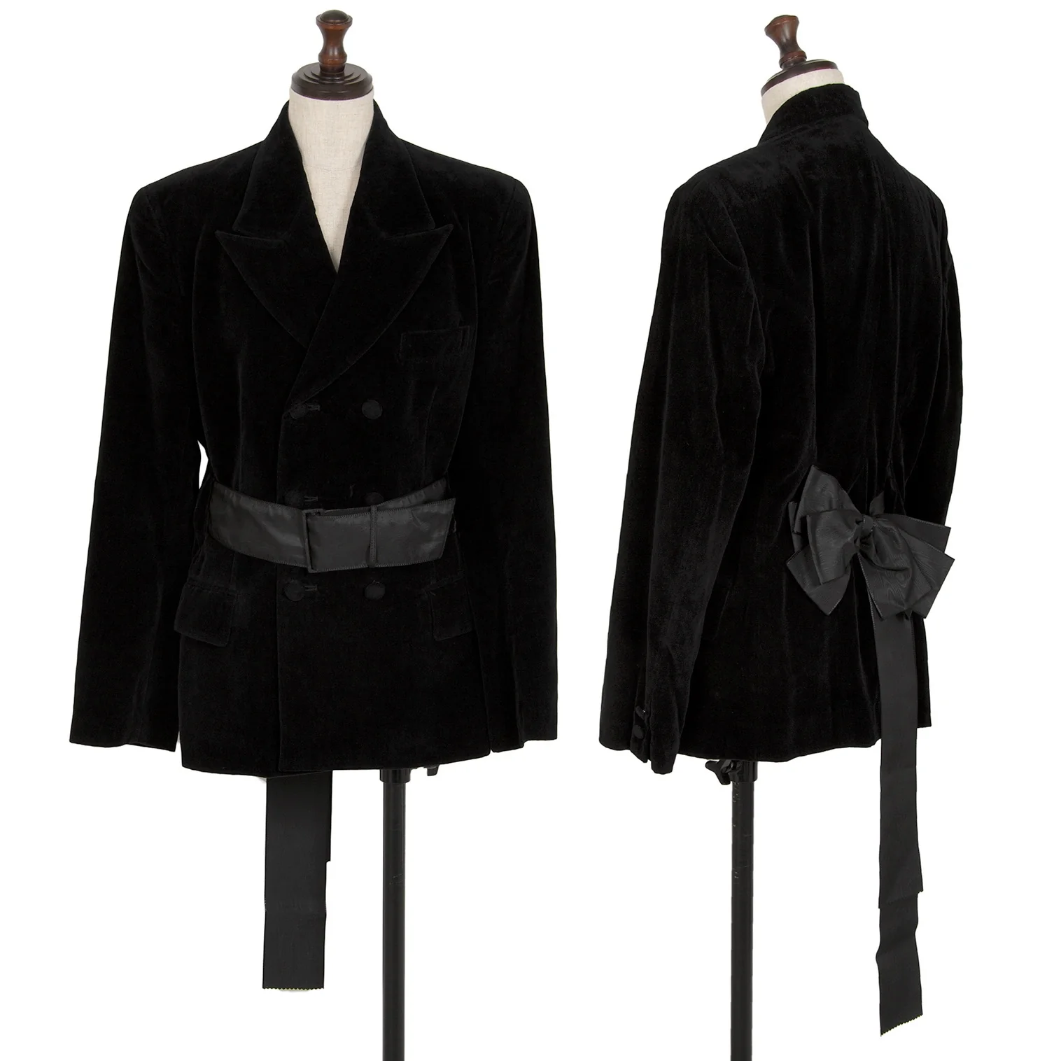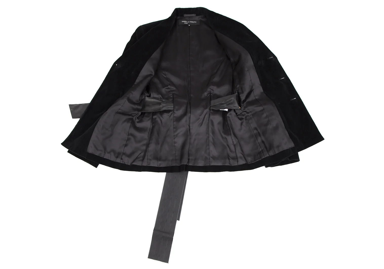 コムデギャルソン ノアールCOMME des GARCONSNOIR リボンベルトデザインベロアダブルジャケット 黒M