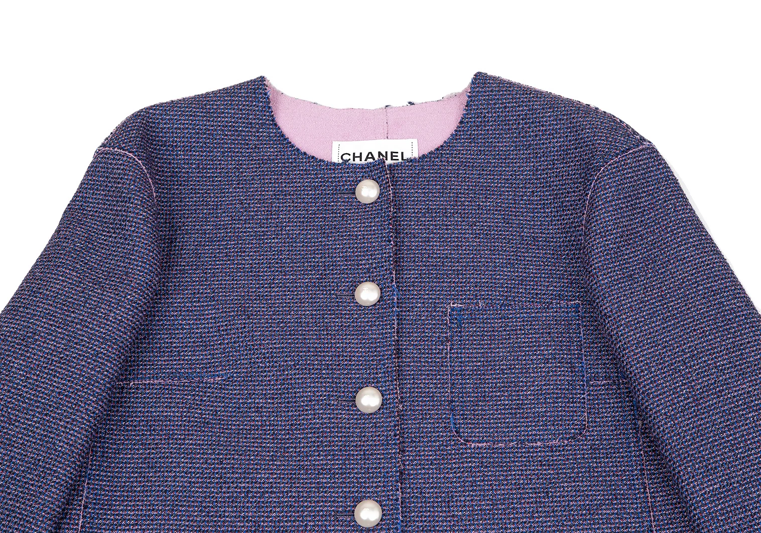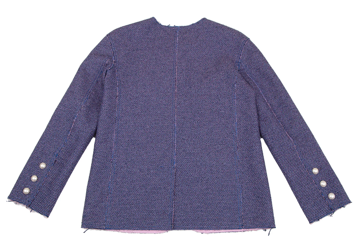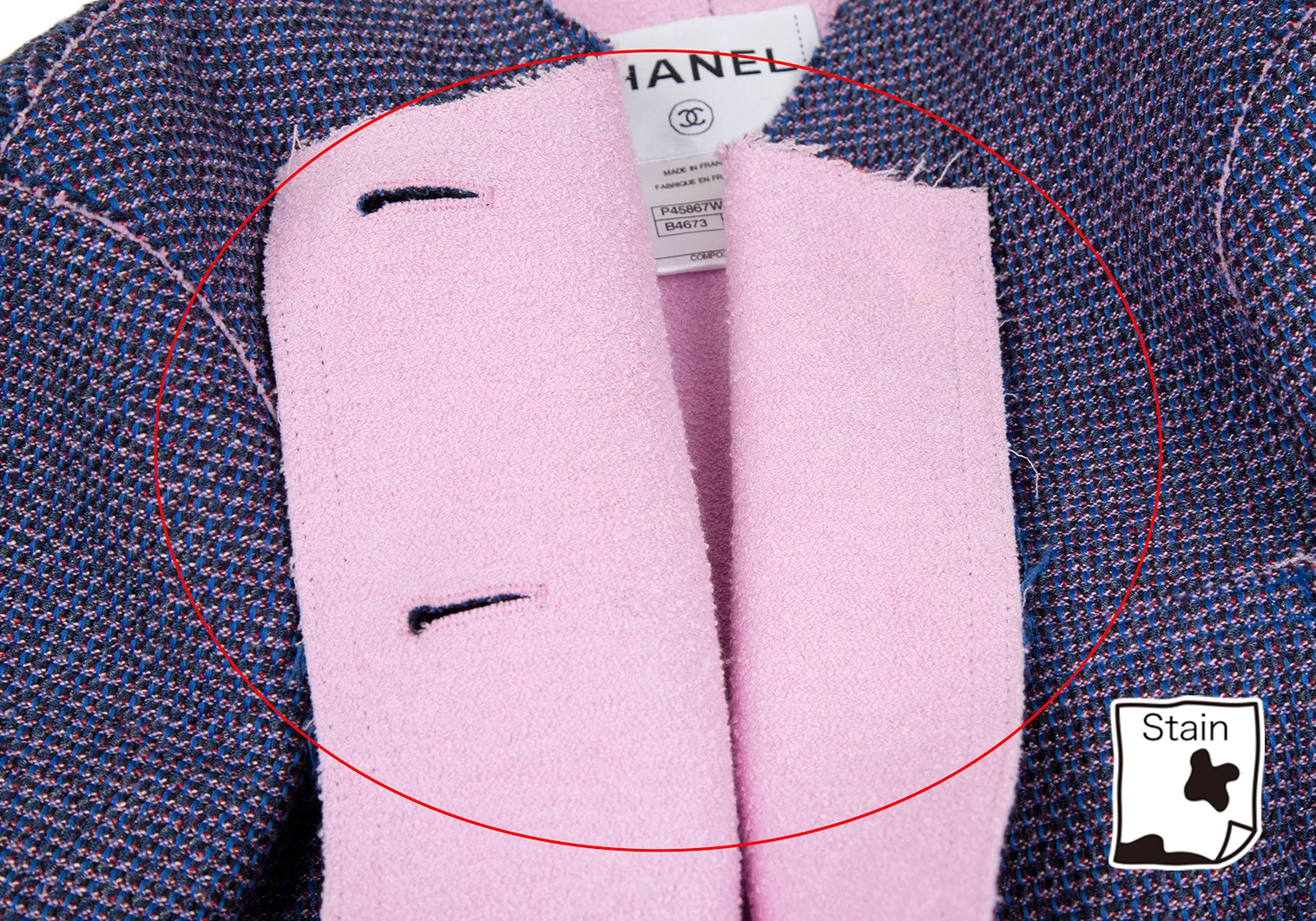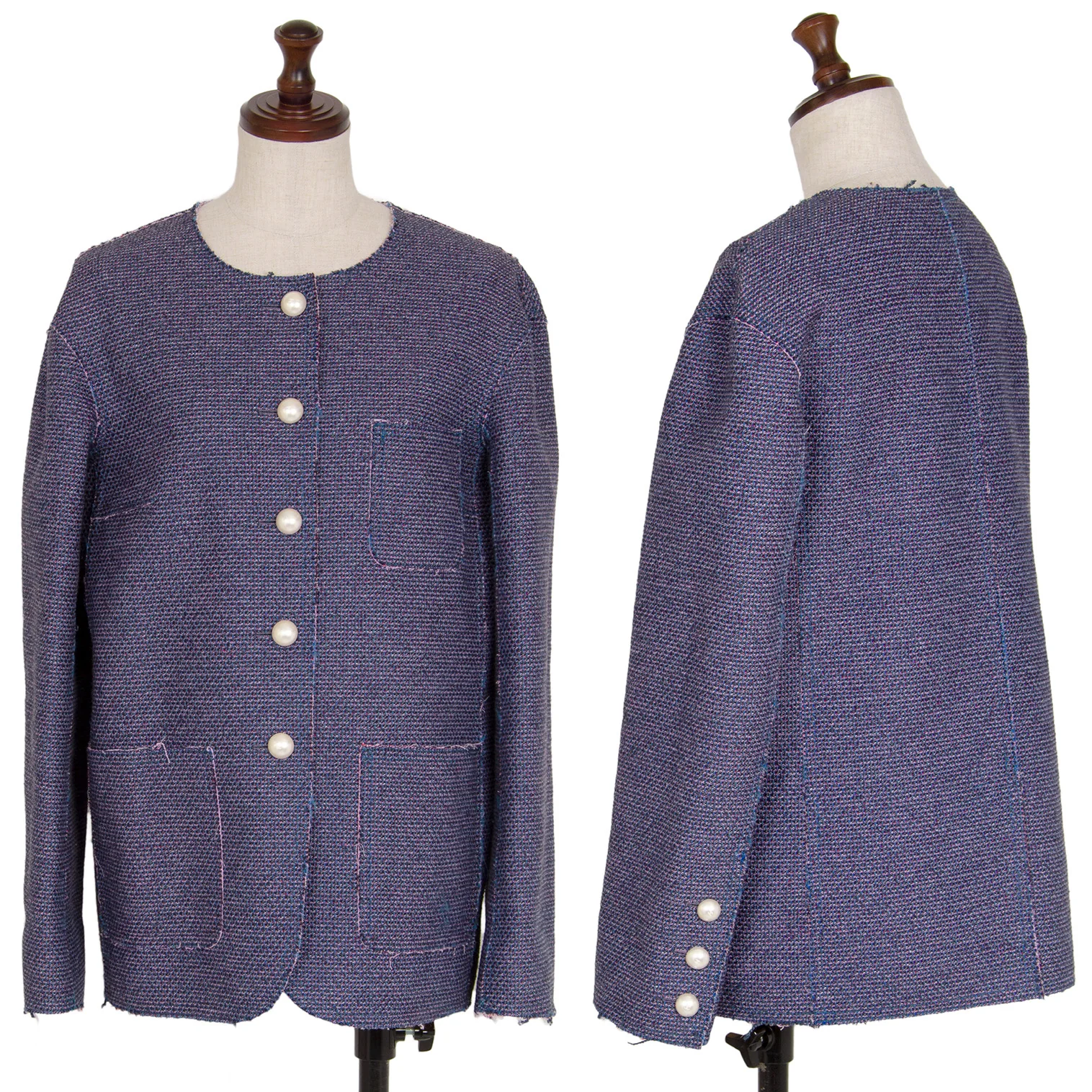 シャネルCHANEL ノーカラーツイードジャケット 青ピンク黒36