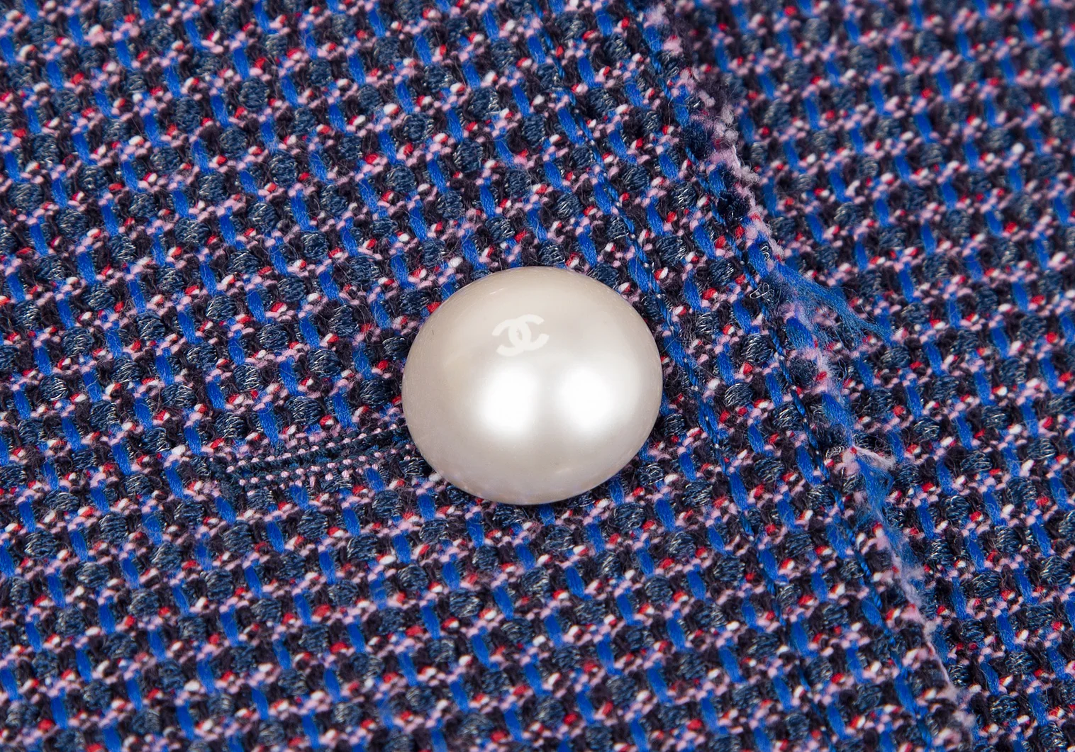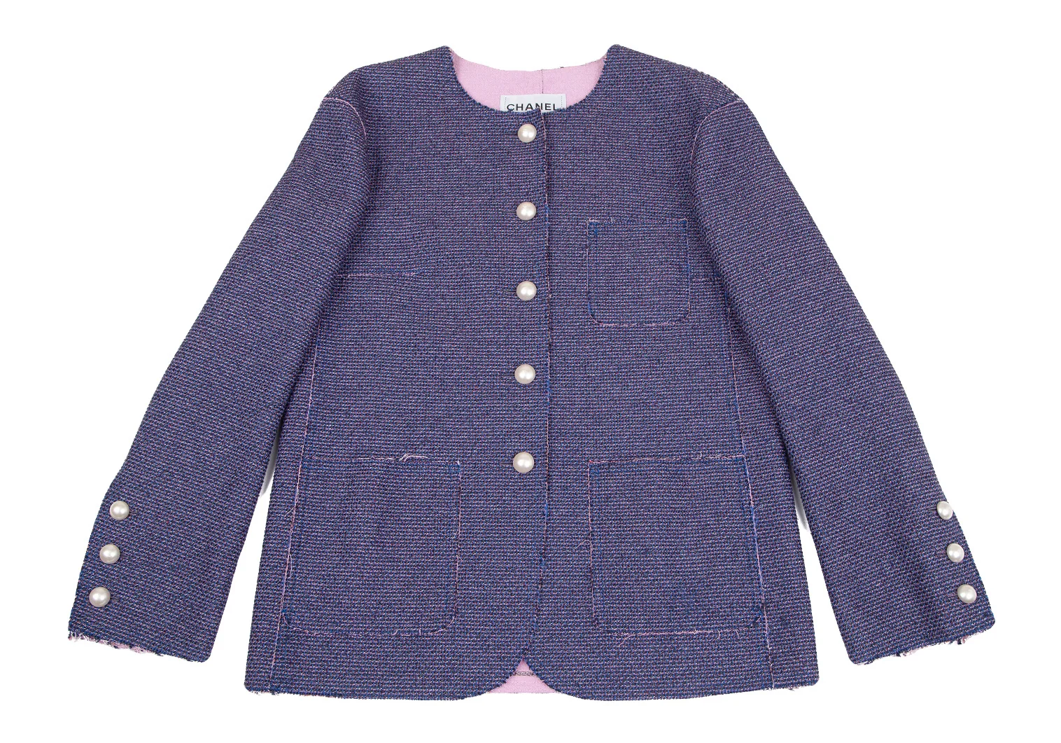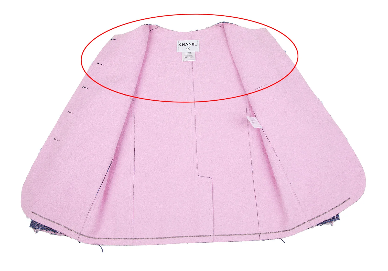 シャネルCHANEL ノーカラーツイードジャケット 青ピンク黒36
