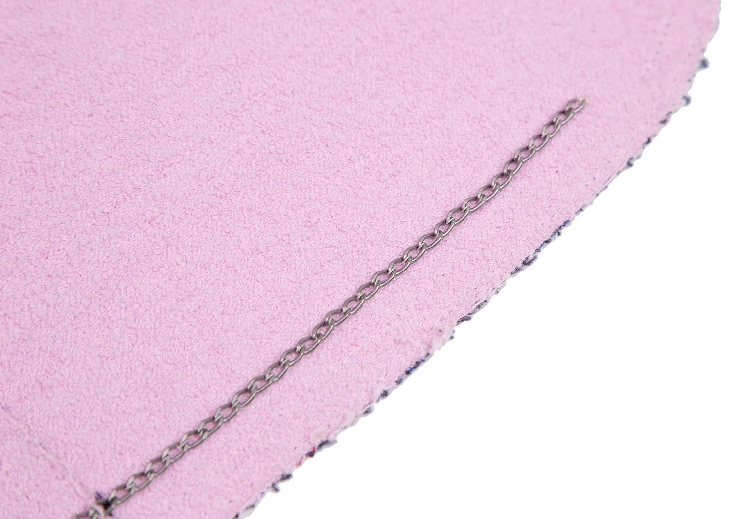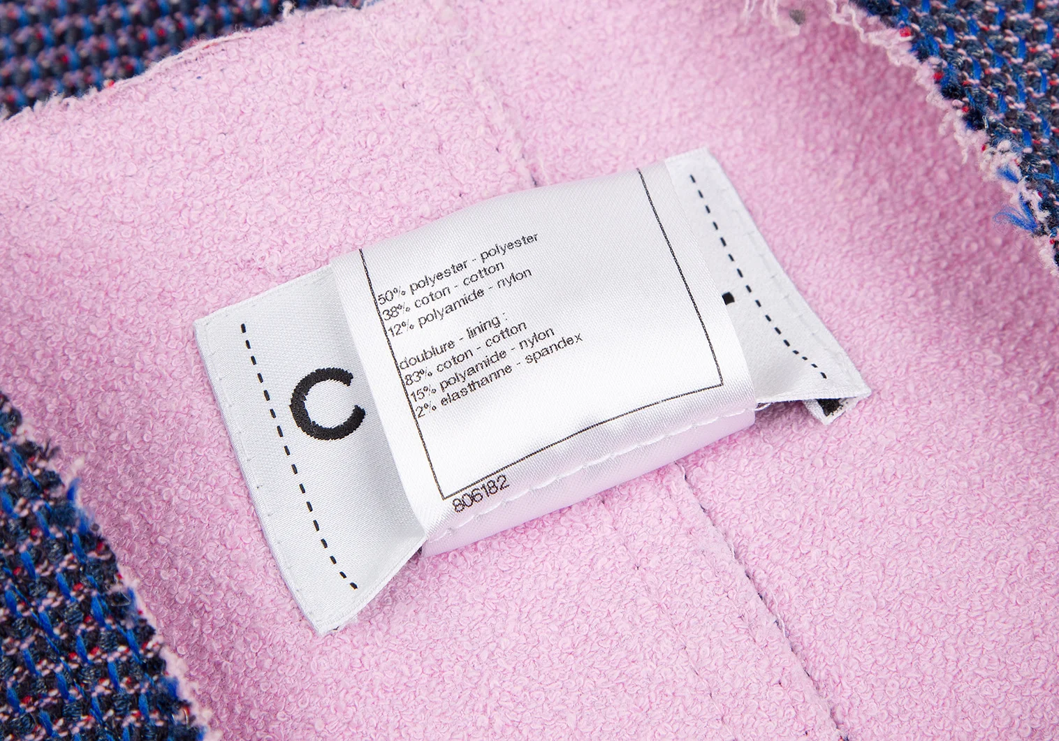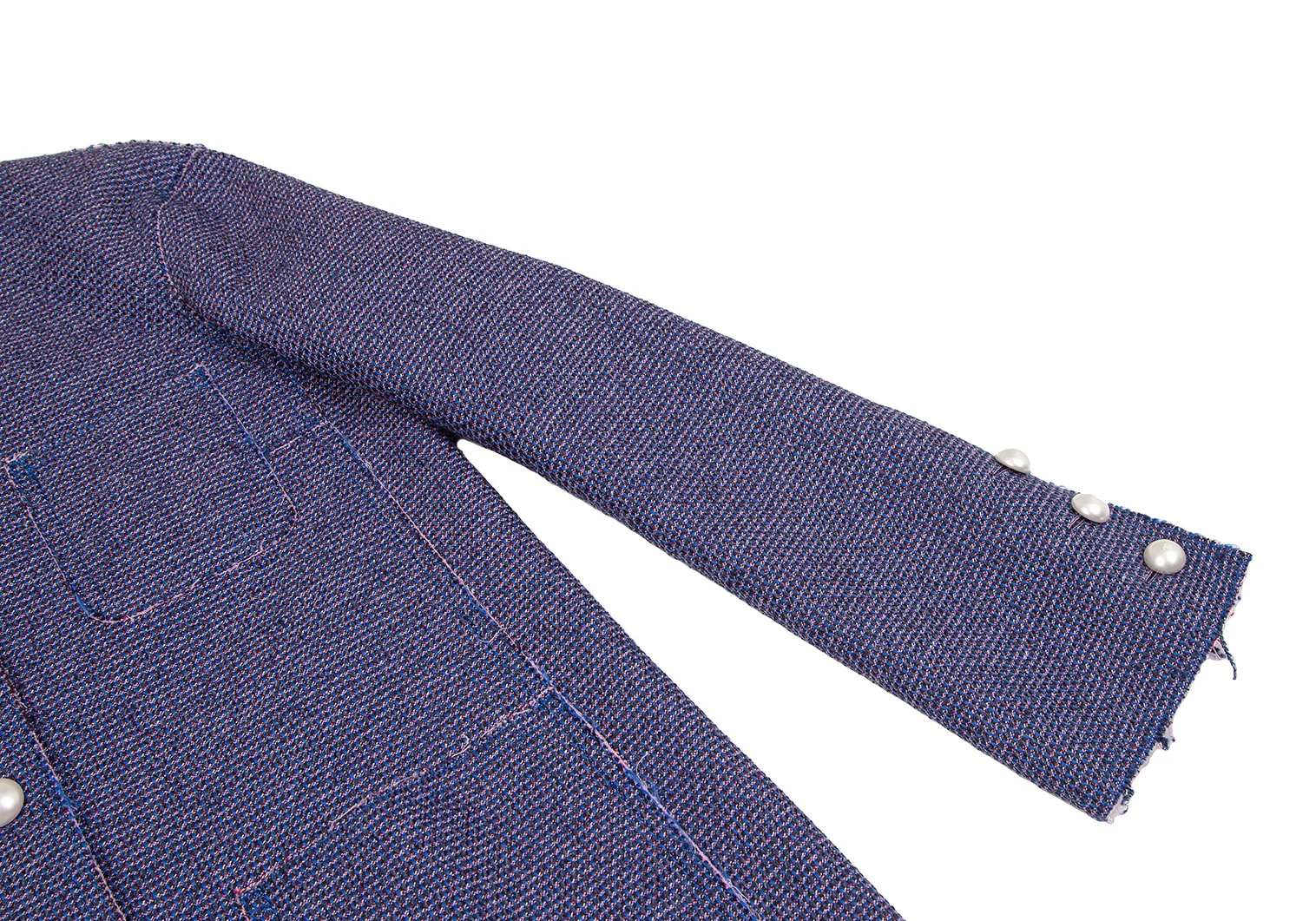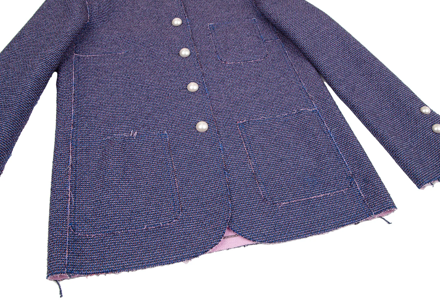シャネルCHANEL ノーカラーツイードジャケット 青ピンク黒36