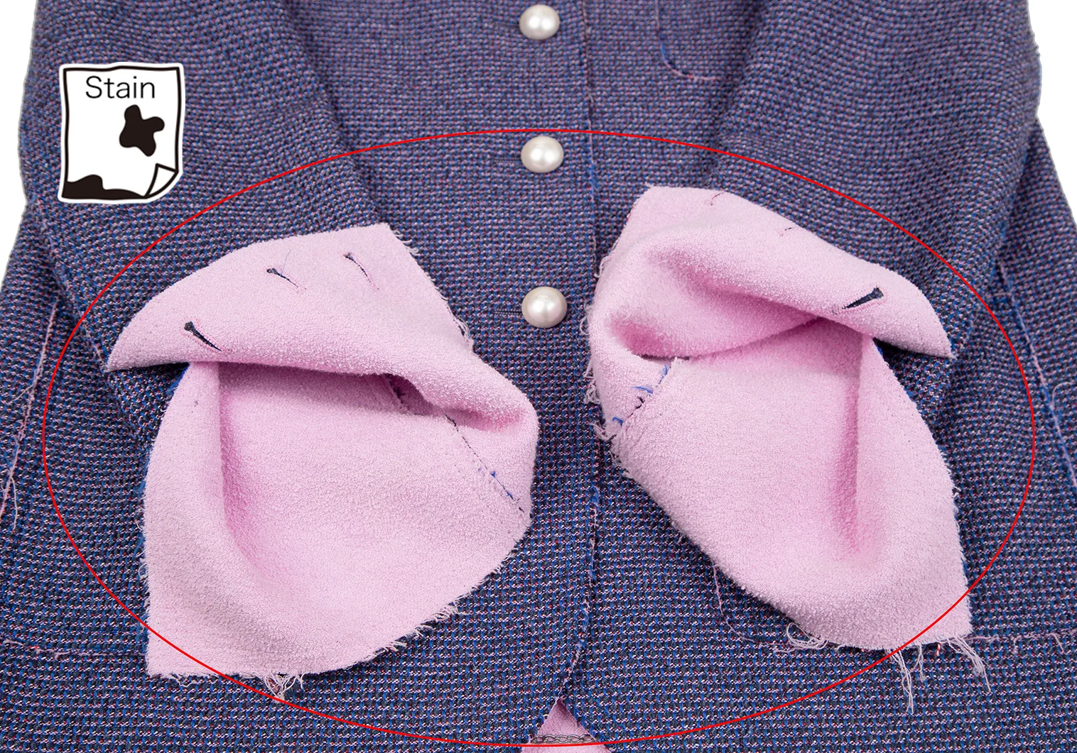 襟裏・袖裏・前立て裏側・脇裏側に薄汚れがあります(写真参照)。その他目立ったシミ、汚れ、ほつれ等なくいい状態です。クリーニング済み