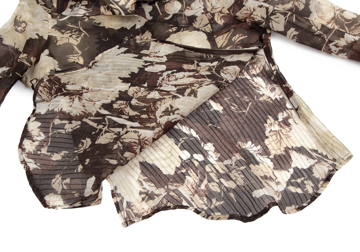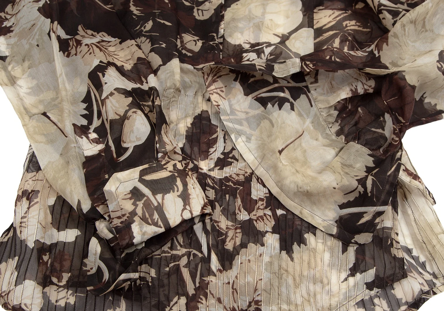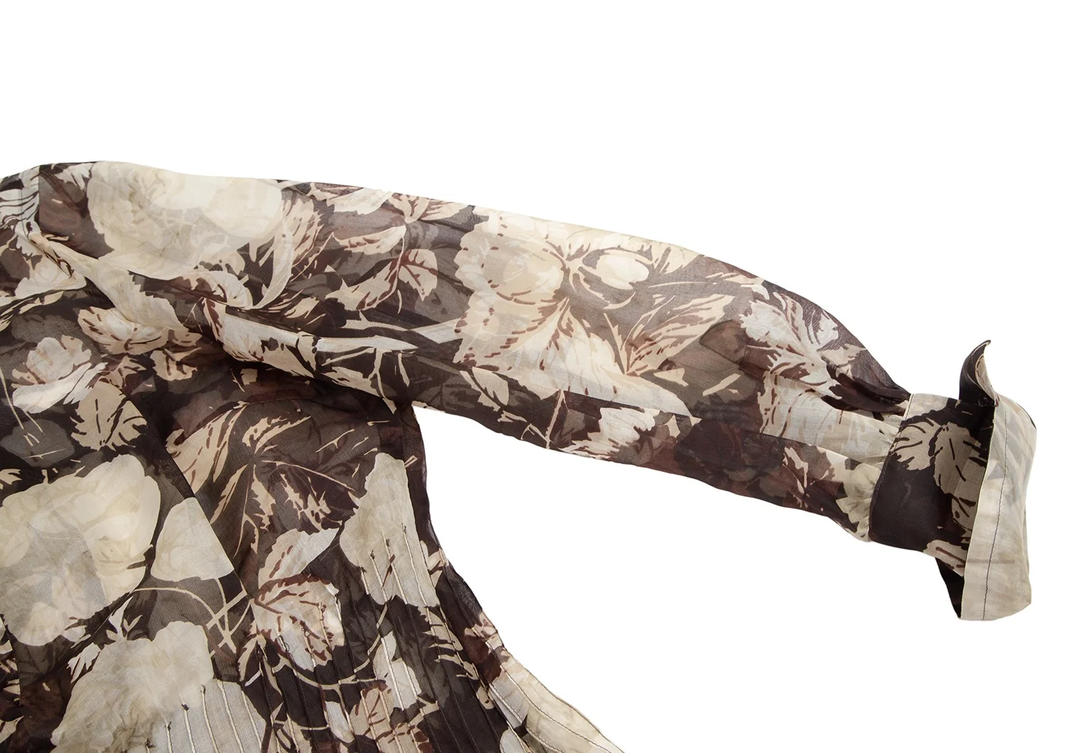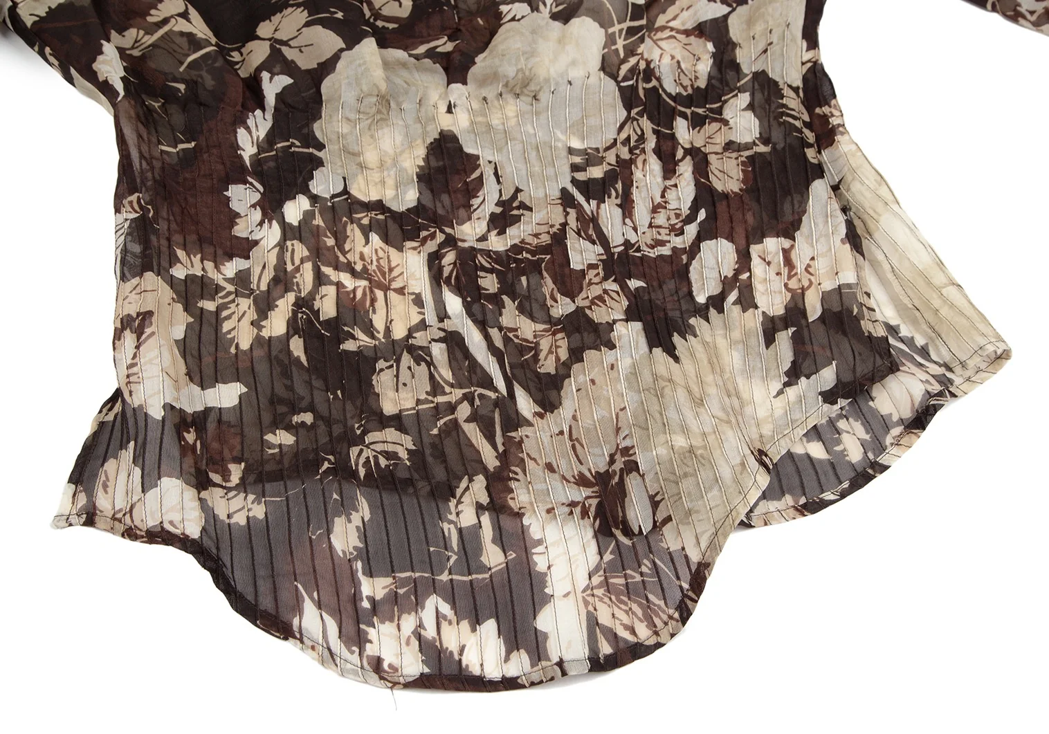 ジャンフランコフェレGIANFRANCO FERRE フローラルプリントストール装飾シースルータックプルオーバーブラウス 茶M位