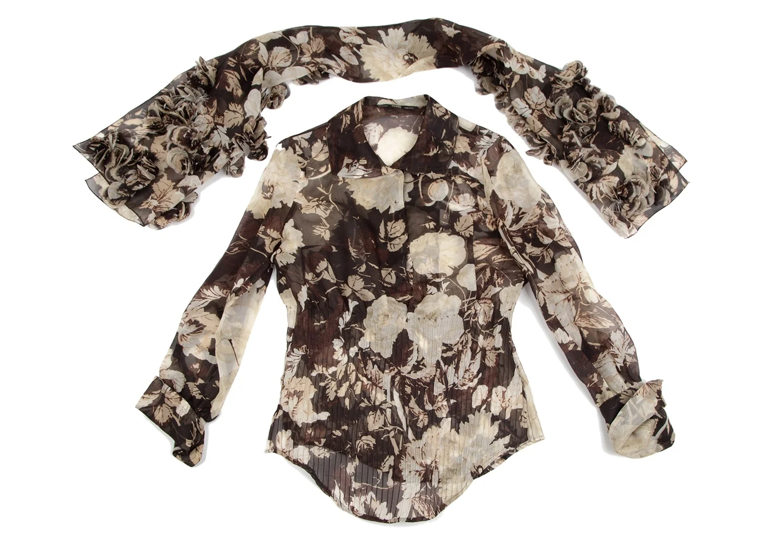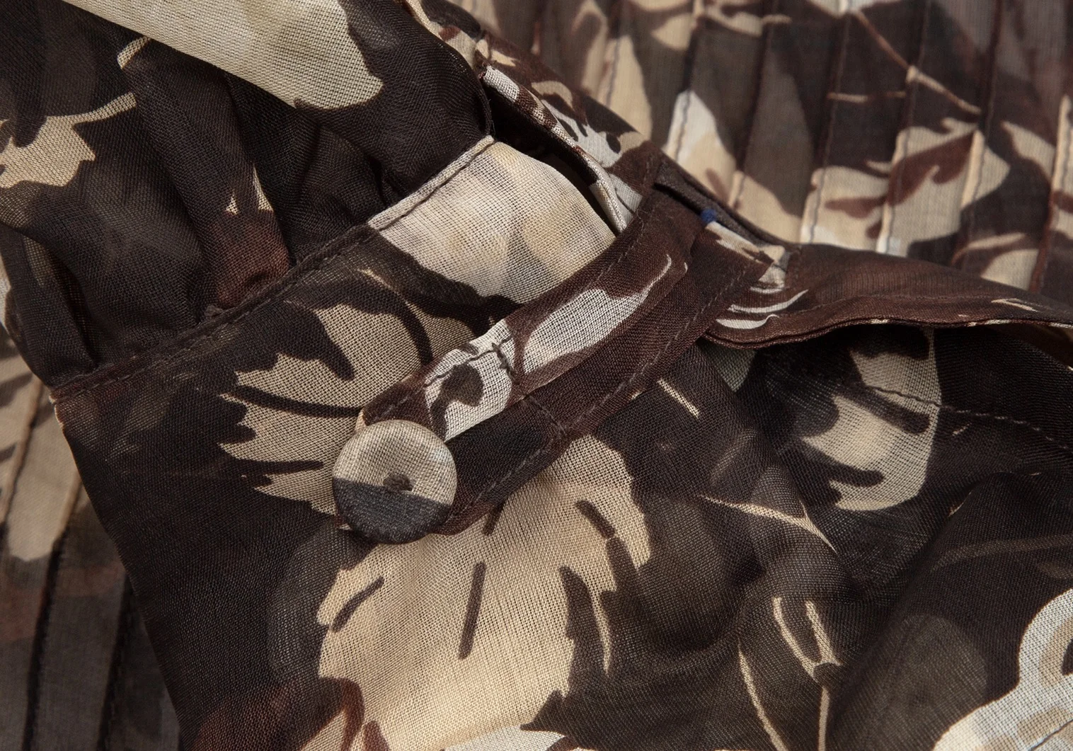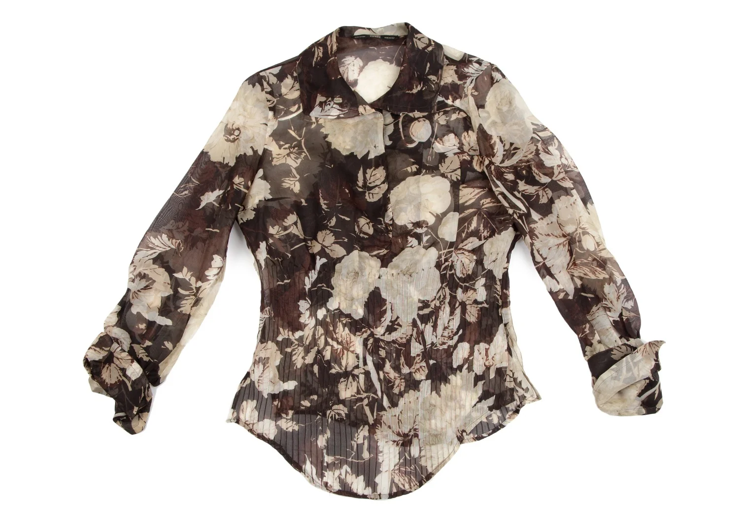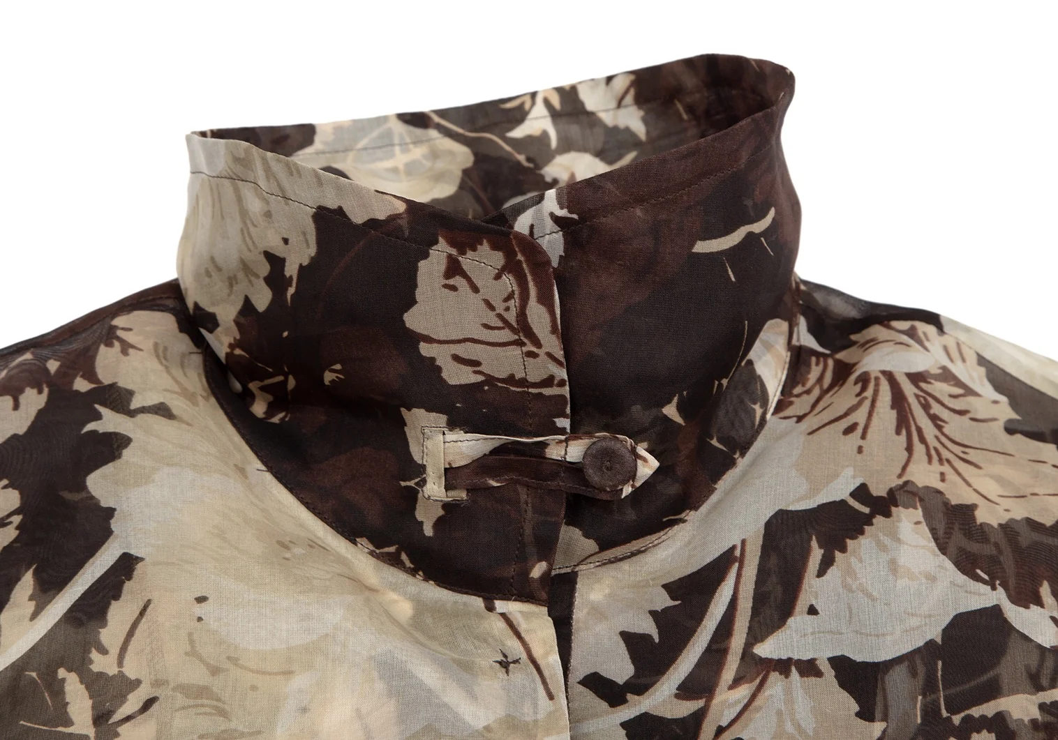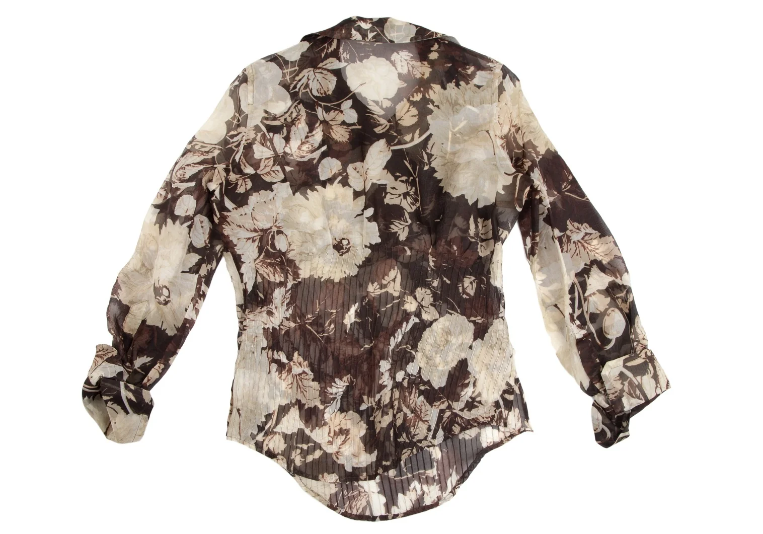 ジャンフランコフェレGIANFRANCO FERRE フローラルプリントストール装飾シースルータックプルオーバーブラウス 茶M位