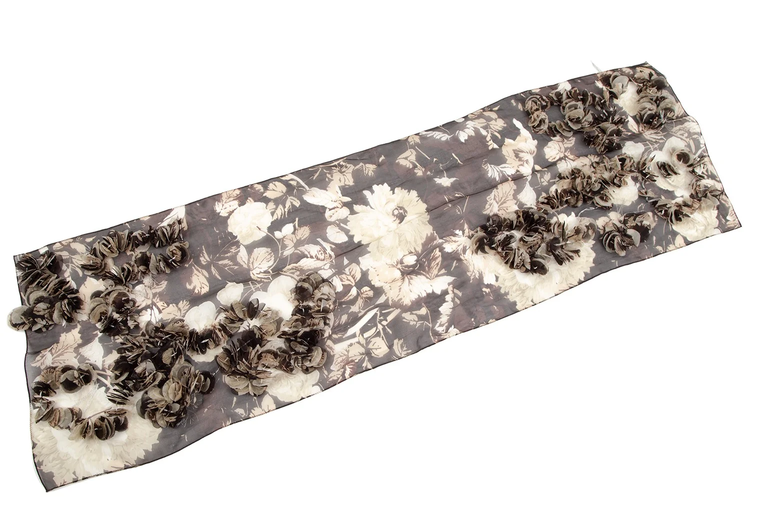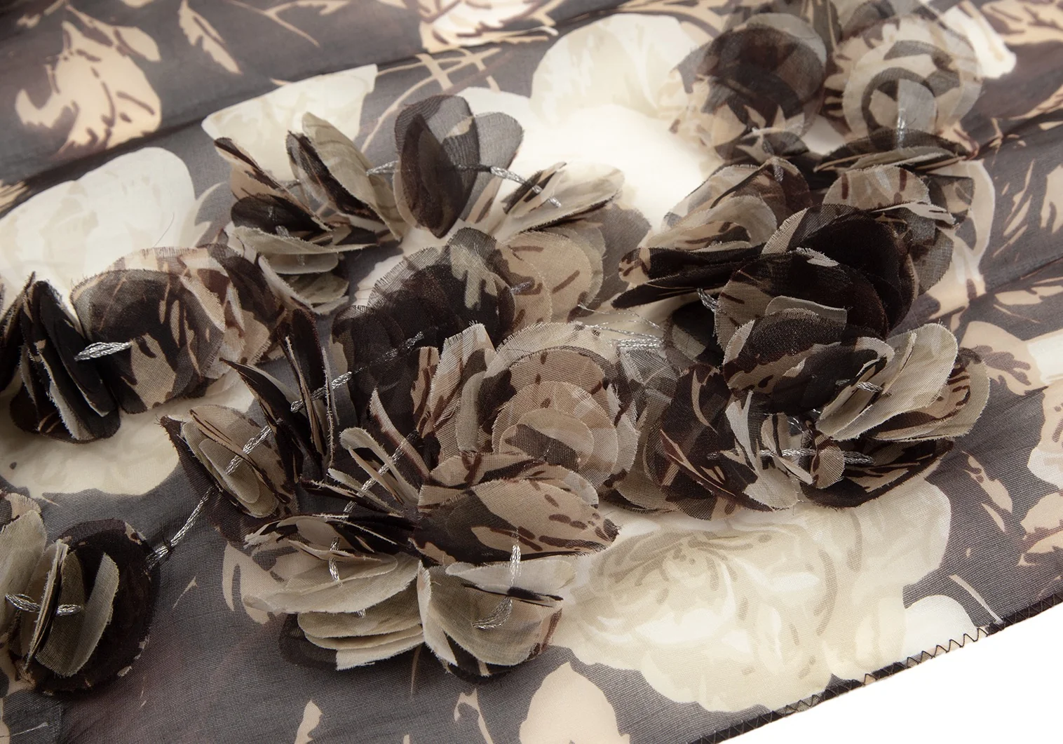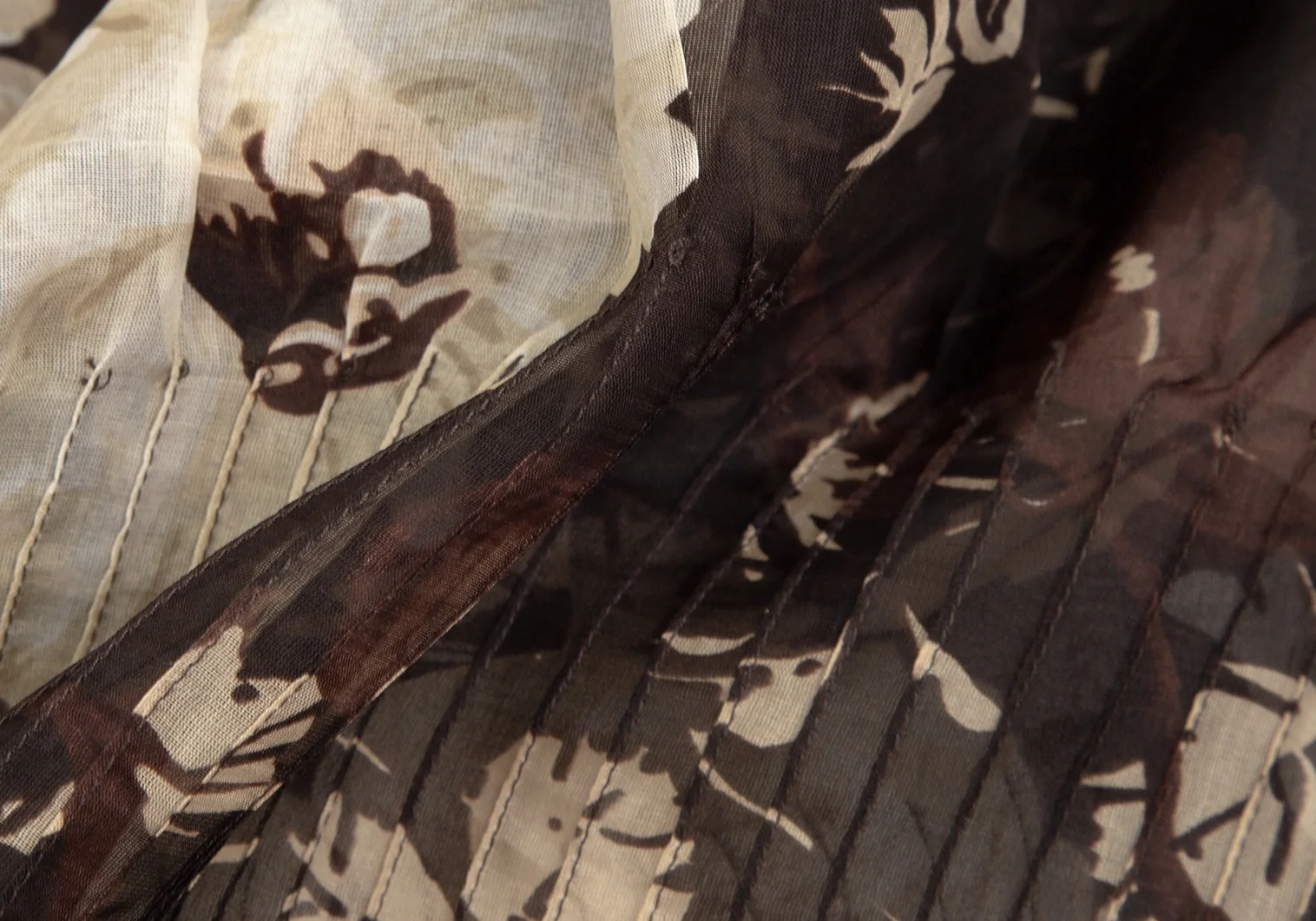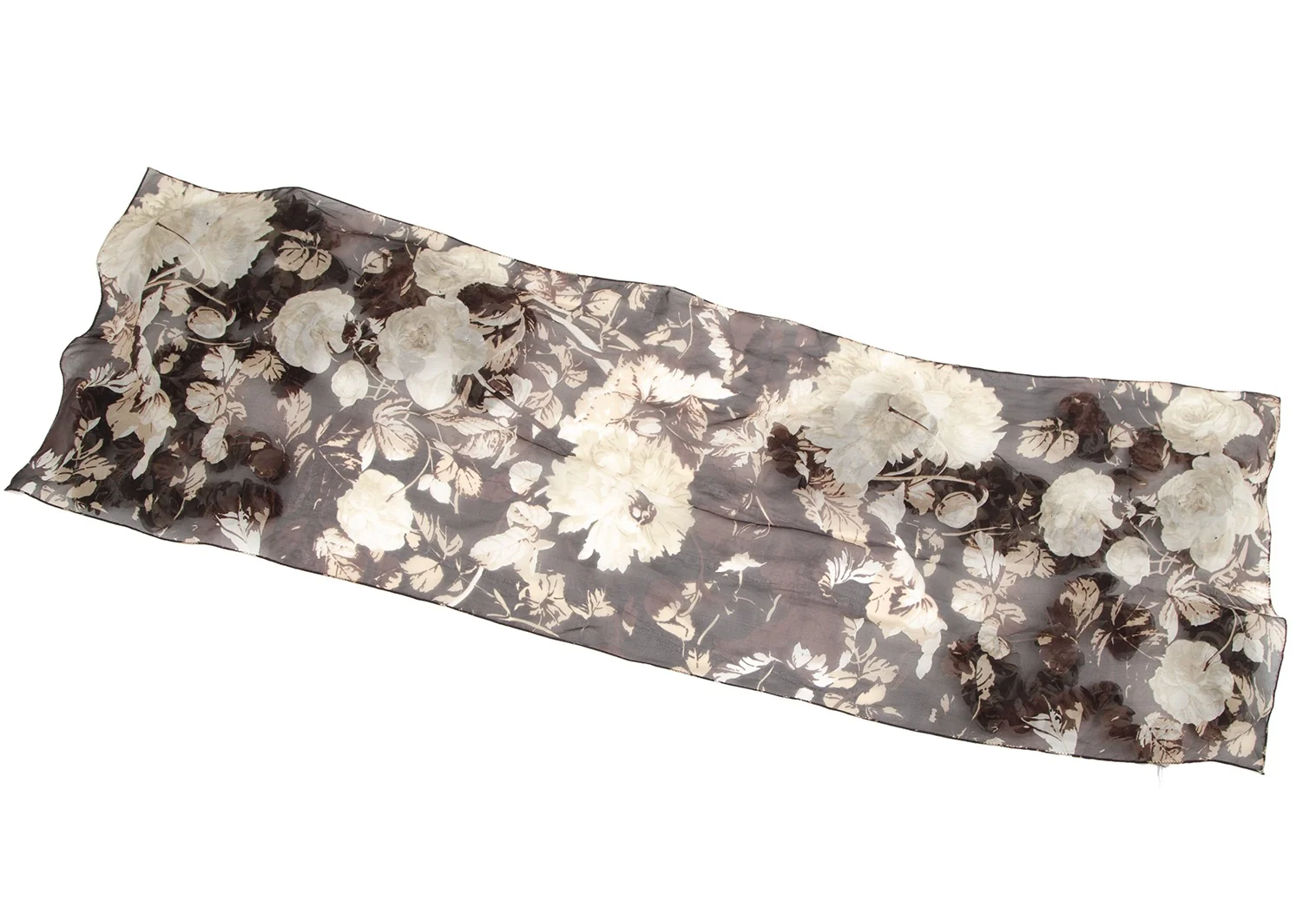 ジャンフランコフェレGIANFRANCO FERRE フローラルプリントストール装飾シースルータックプルオーバーブラウス 茶M位