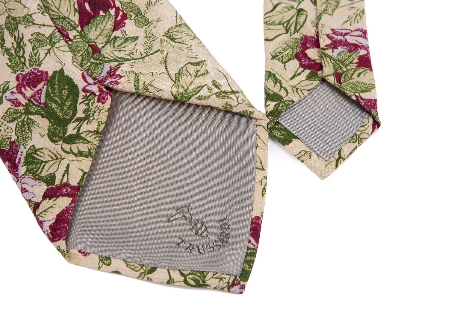 トラサルディーTRUSSARDI 花柄シルクネクタイ ベージュ